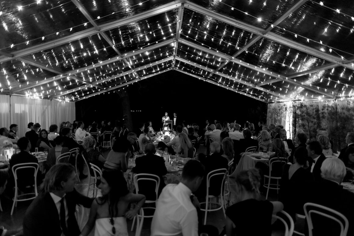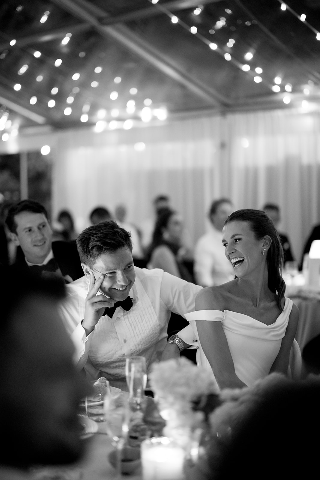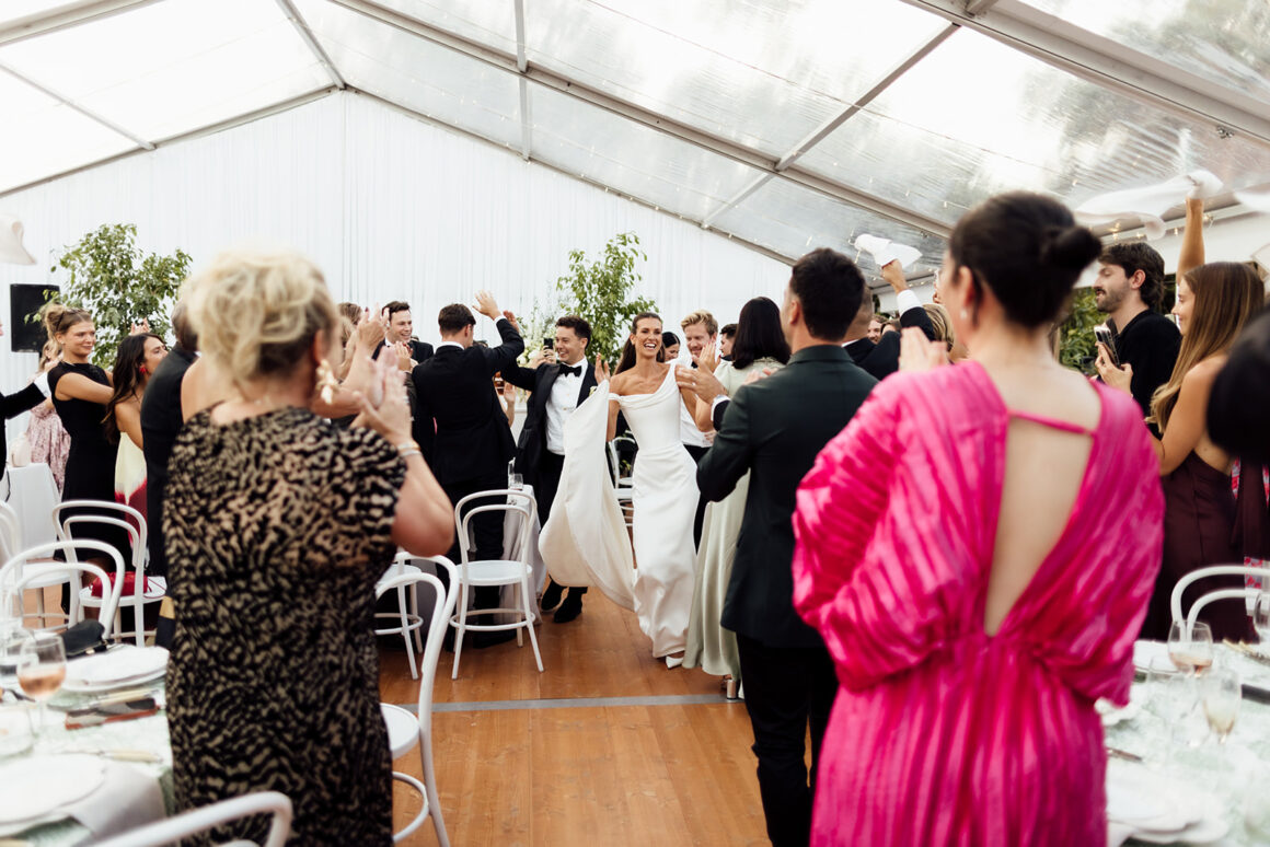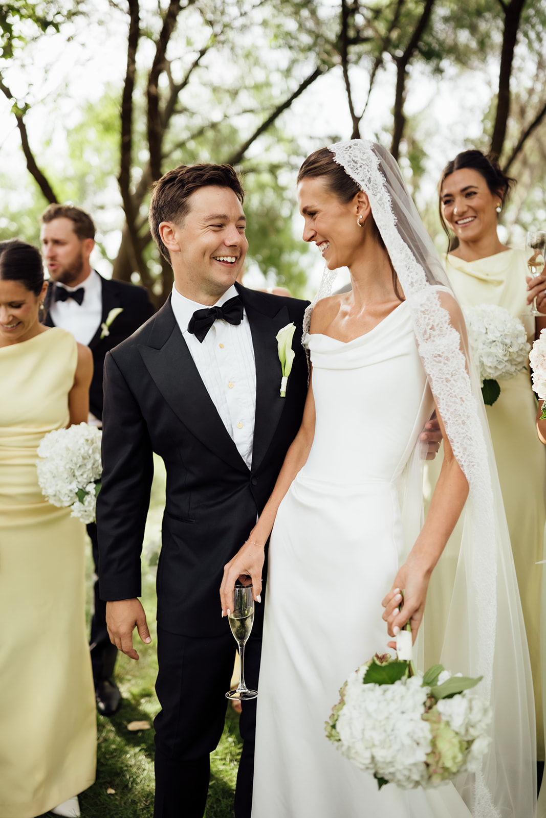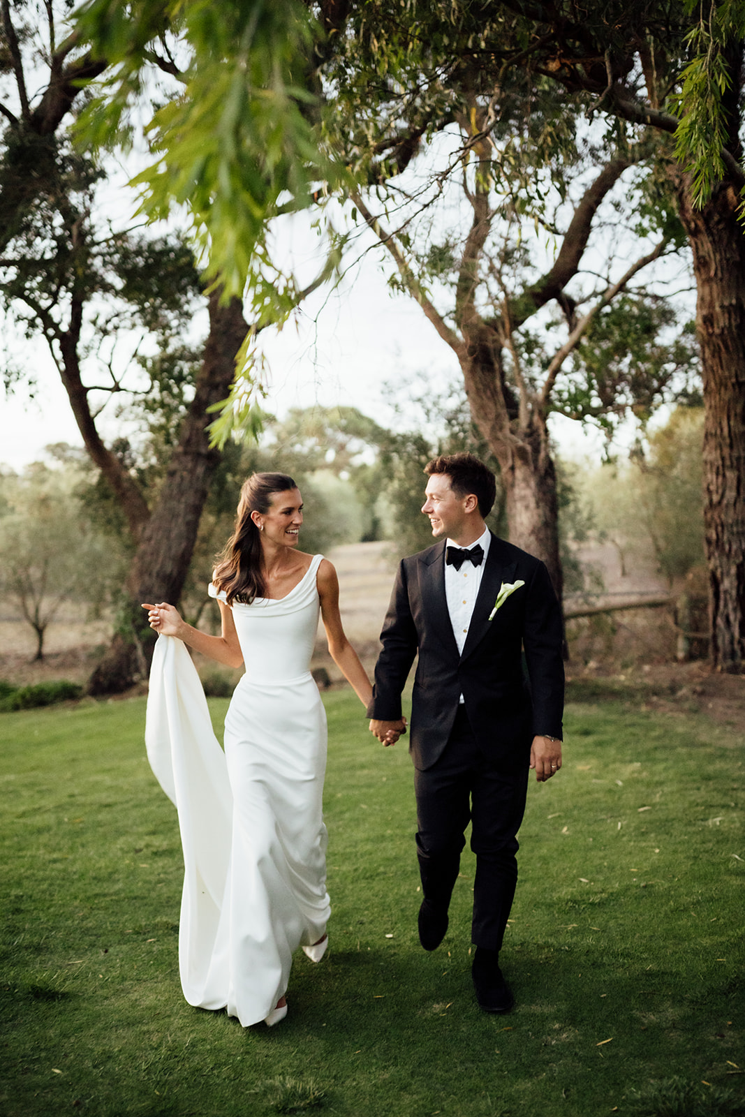 There’s no place like home, and while Bridget and Tommy considered getting married in Melbourne, nothing felt quite as magical as the bride’s family abode in Boneo on the Mornington Peninsula. Backdropped by lush green scenery, this marquee celebration was elegant as can be, yet steeped in warm, welcoming dinner-party-at-home energy.