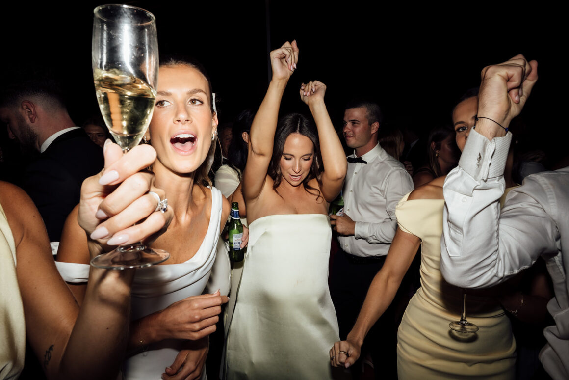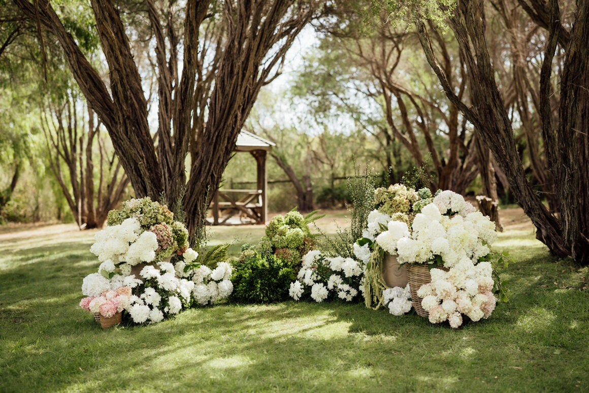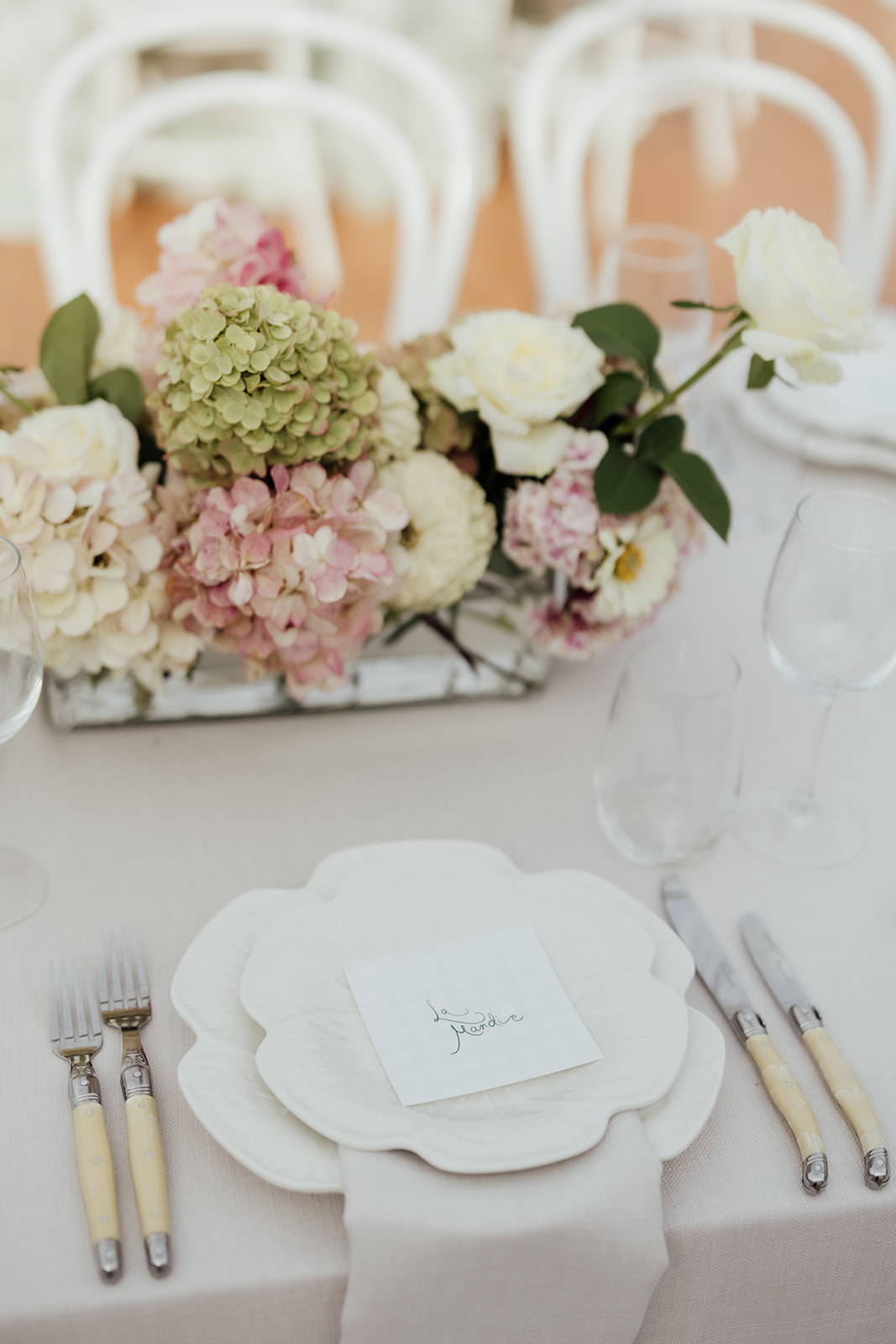 “Hydrangeas were a must for me. We had Estudyo create all our florals, except for the table arrangements. For something a little different, I wanted our seating chart to feel unique, so my sister-in-law Bella and I designed beautiful seating charts that were placed inside hydrangea plants and herbs. Liz captured some stunning photos of this detail, which I’ll always treasure. Bella is the most creative person I know, and she was behind so many of the special touches. She designed our invitations and all of the stationery for the wedding night, as well as some fun details for my hens and our recovery day – like custom pizza box labels that were such a hit. And of course, one of my favourite details came from my mum. She’s famous for her blondies (white chocolate and raspberry slice), so she made some for the wedding and we served them alongside the cake. It was a personal touch and a highlight of the day!”