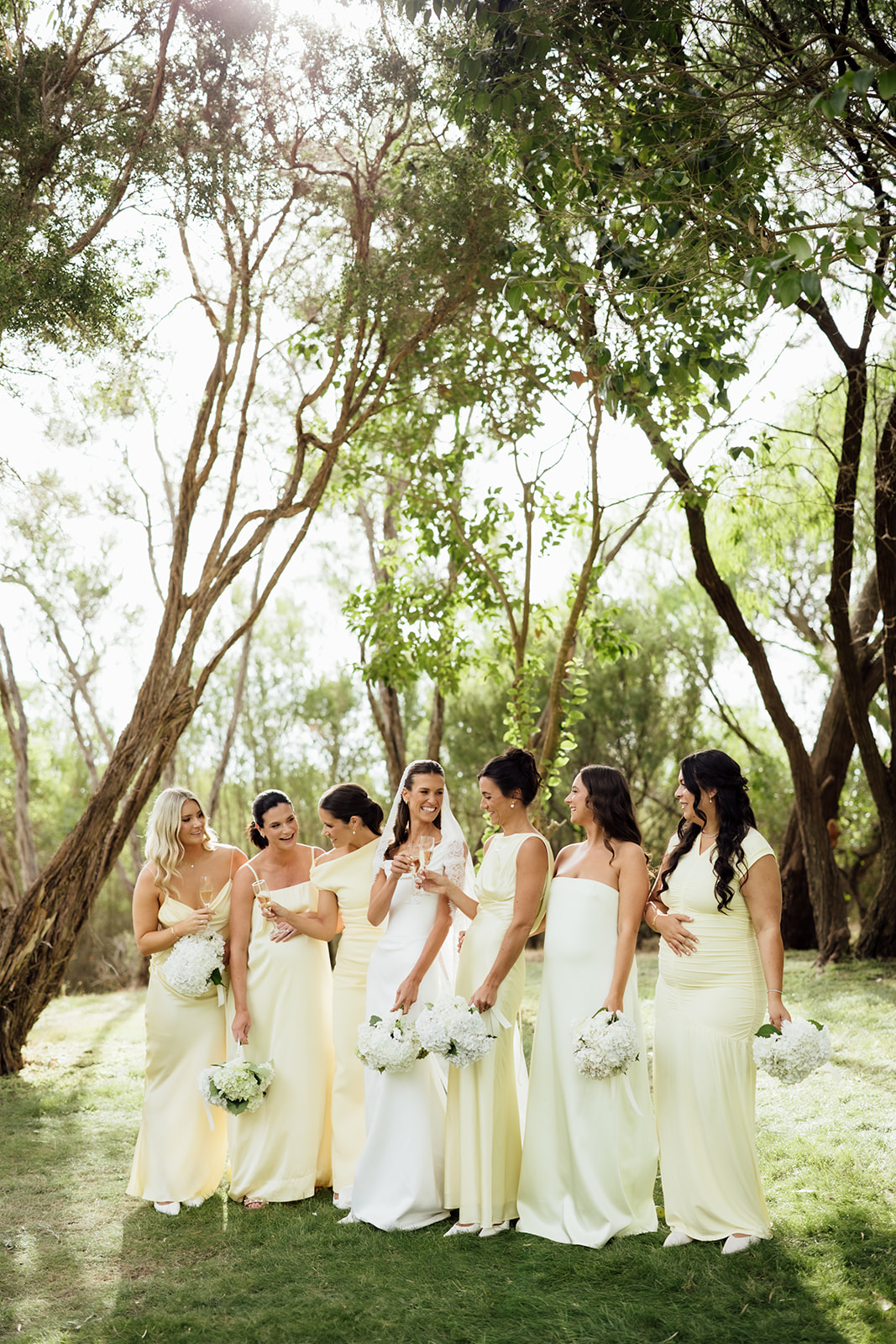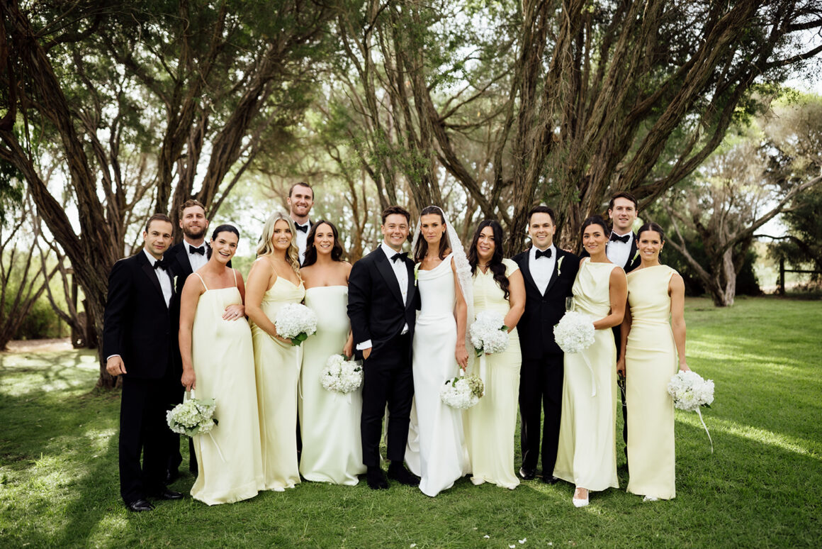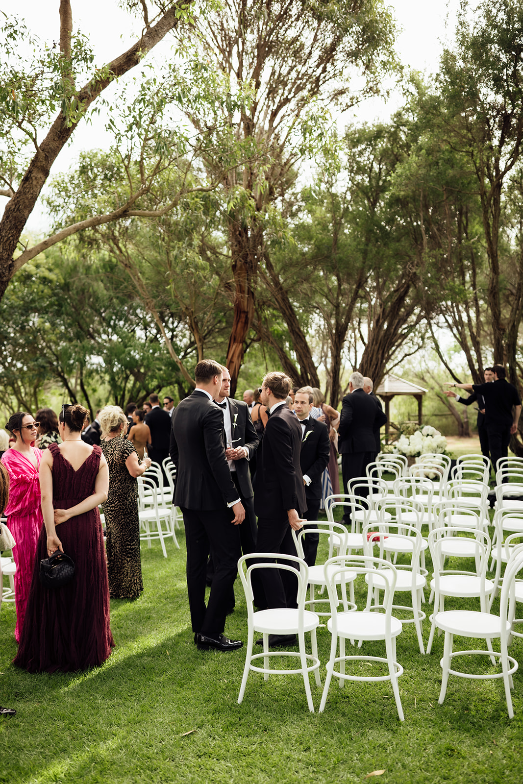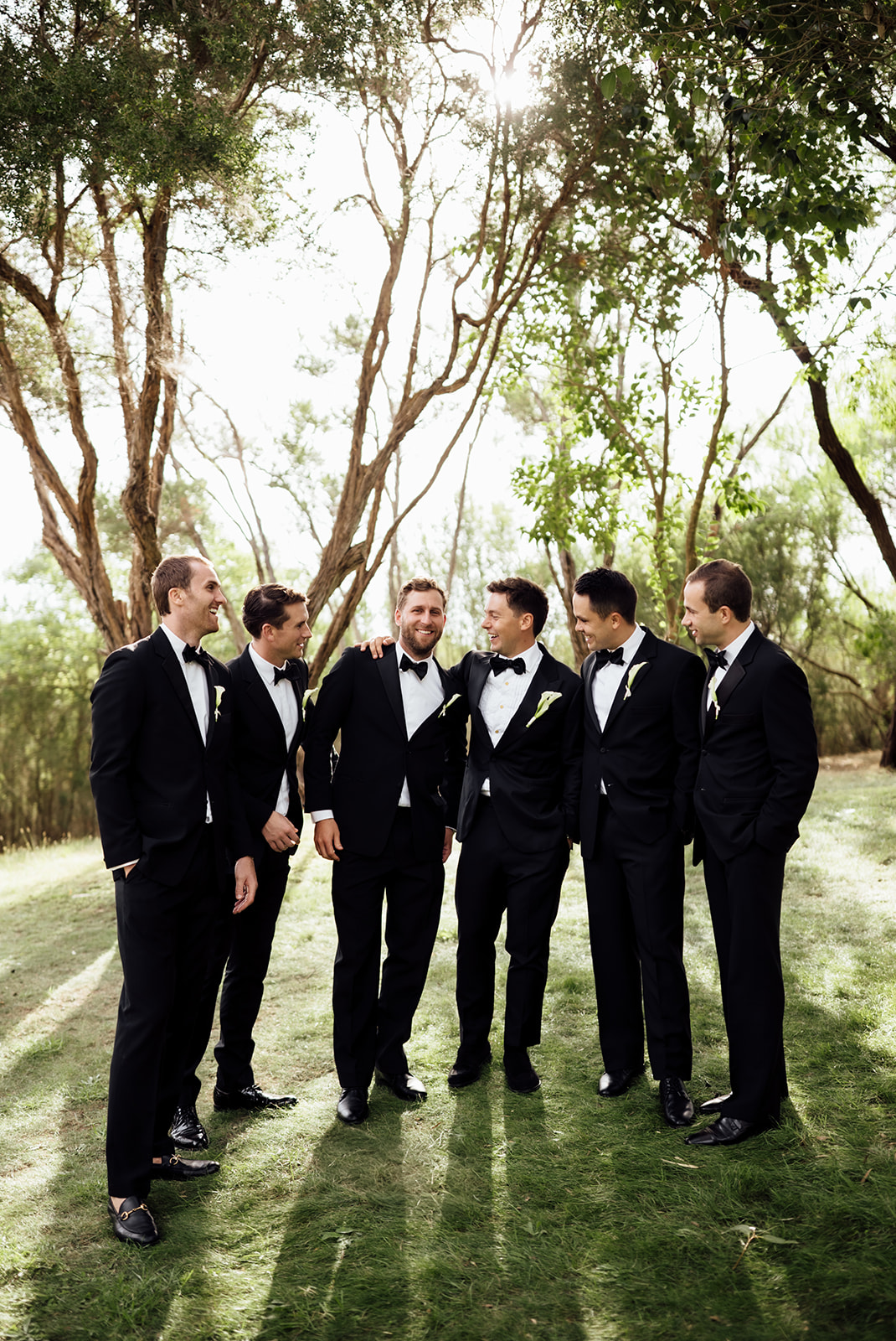 CONTRIBUTING VENDORS Photographer Liz Barnes Cinematographer For the Future Films Event Planner, Stylist & Marquee White Top Florist Estudyo Stationery Bella Quinn Venue Private Property Catering Finesse Catering Cake Maker The Naked Orange Lighting & Sound Hire Stuey Faymous Entertainment Jarrod Brez Celebrant Jordan Tunbridge THE BRIDE Bridal Gown & Veil Designer Bridal Haze Getting Ready Kat the Label Hair Blanca Beauty Makeup Olivia Florence Bridesmaid Dresses Natalie Rolt, Shona Joy, Camilla and Marc, Hansen & Gretel, By Nicola Bridesmaid Shoes Novo Bridesmaid Gifts Mecca, By Charlotte THE GROOM Suit, Jacket, Shirt, Pants, Suspenders, Tie & Cufflinks P. Johnson
