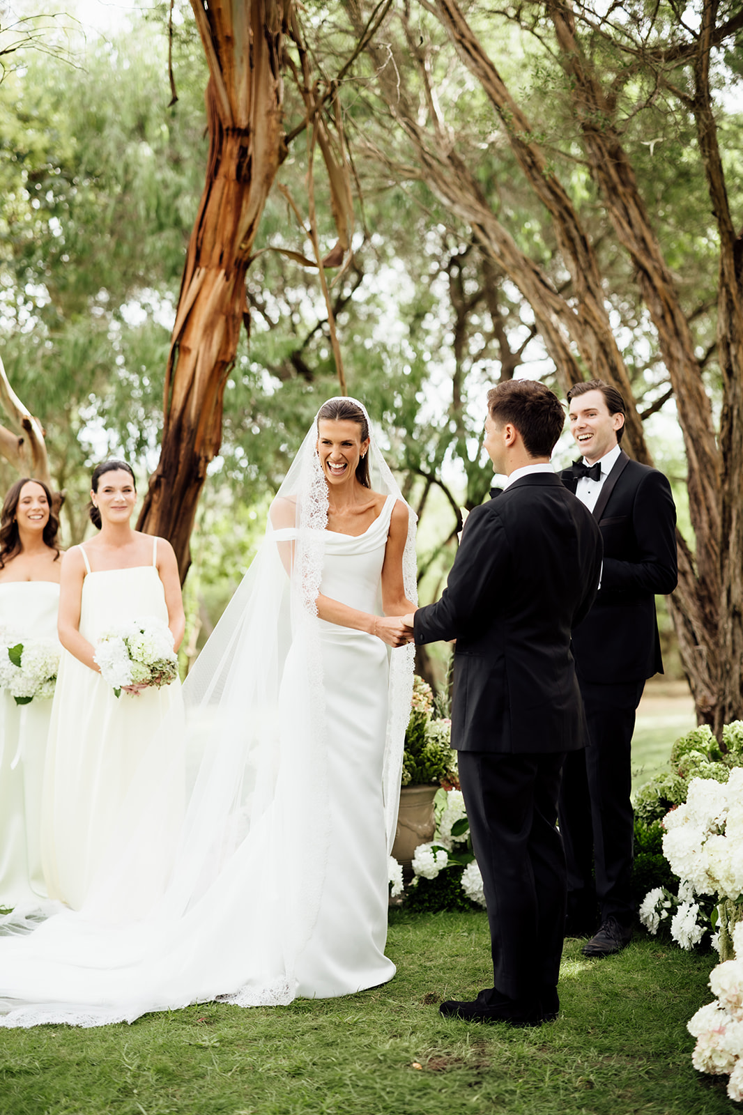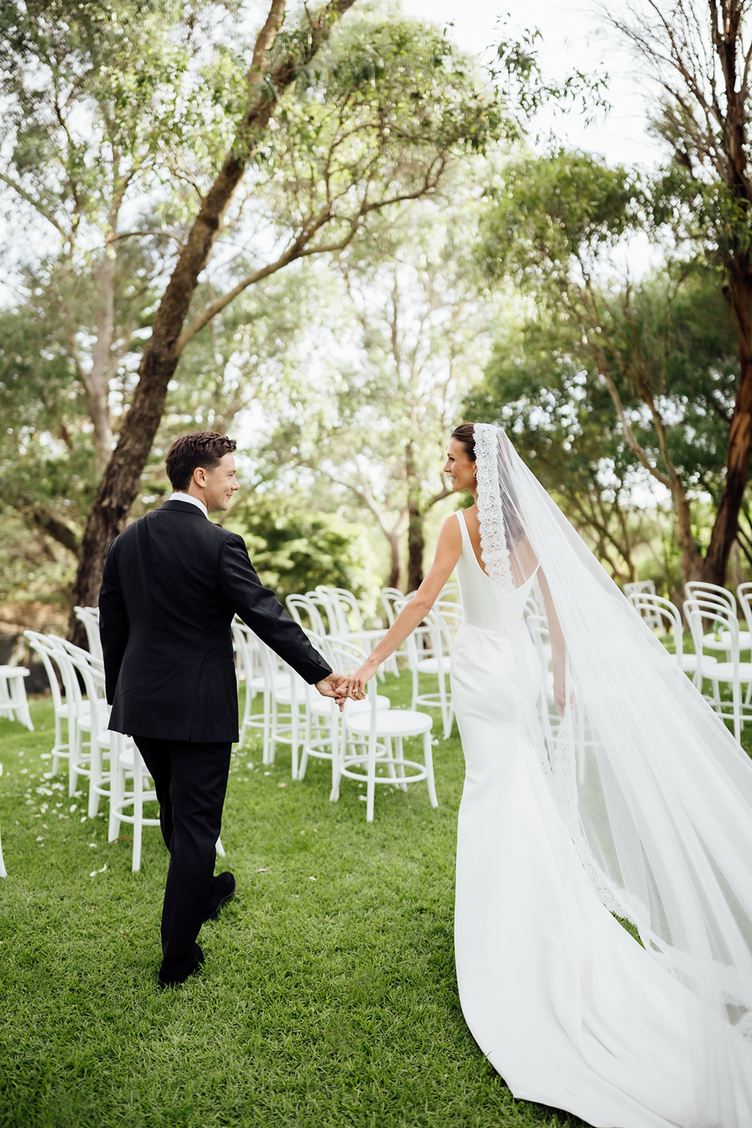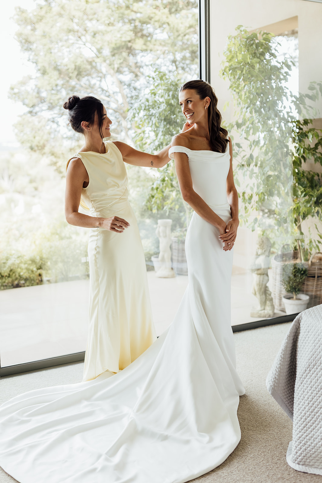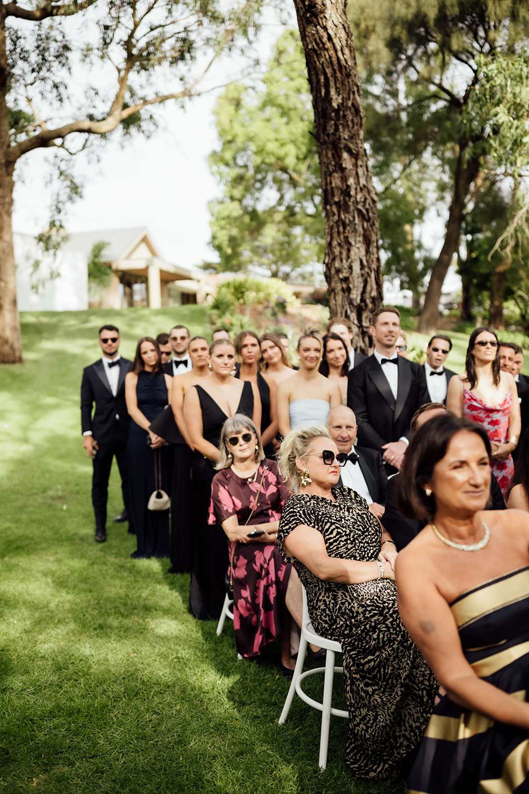 CONTRIBUTING VENDORS Photographer Liz Barnes Cinematographer For the Future Films Event Planner, Stylist & Marquee White Top Florist Estudyo Stationery Bella Quinn Venue Private Property Catering Finesse Catering Cake Maker The Naked Orange Lighting & Sound Hire Stuey Faymous Entertainment Jarrod Brez Celebrant Jordan Tunbridge THE BRIDE Bridal Gown & Veil Designer Bridal Haze Getting Ready Kat the Label Hair Blanca Beauty Makeup Olivia Florence Bridesmaid Dresses Natalie Rolt, Shona Joy, Camilla and Marc, Hansen & Gretel, By Nicola Bridesmaid Shoes Novo Bridesmaid Gifts Mecca, By Charlotte THE GROOM Suit, Jacket, Shirt, Pants, Suspenders, Tie & Cufflinks P. Johnson