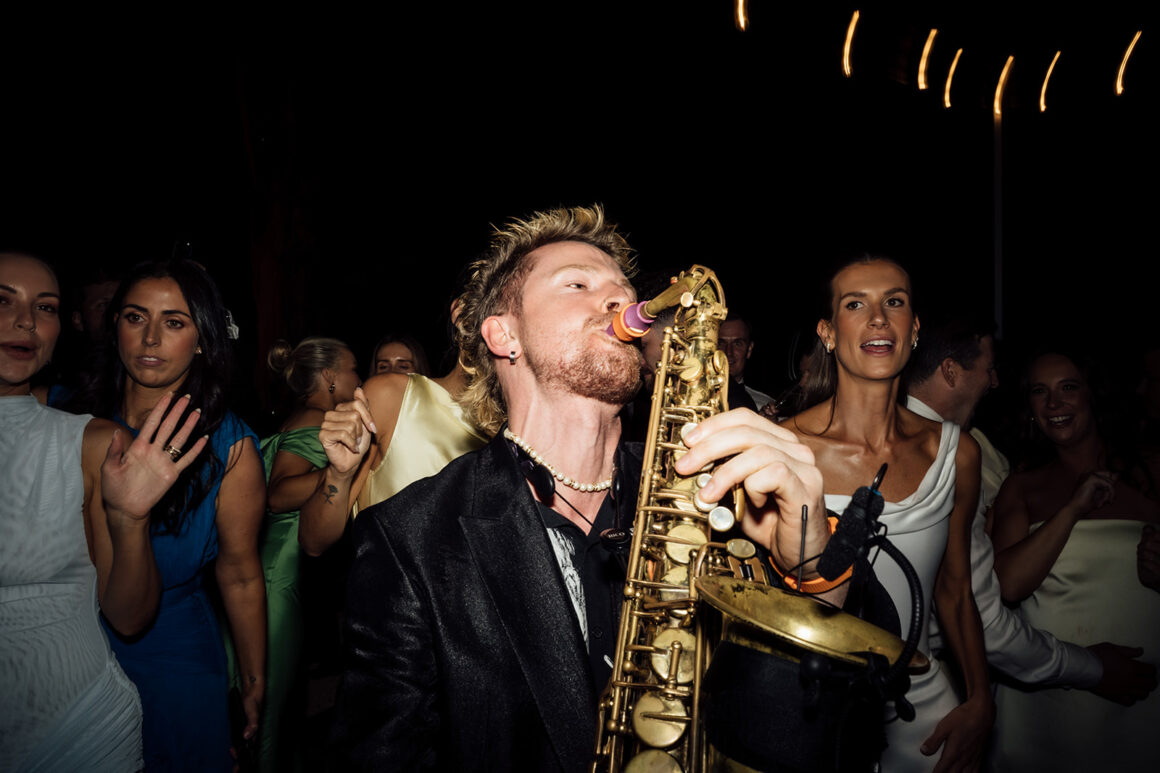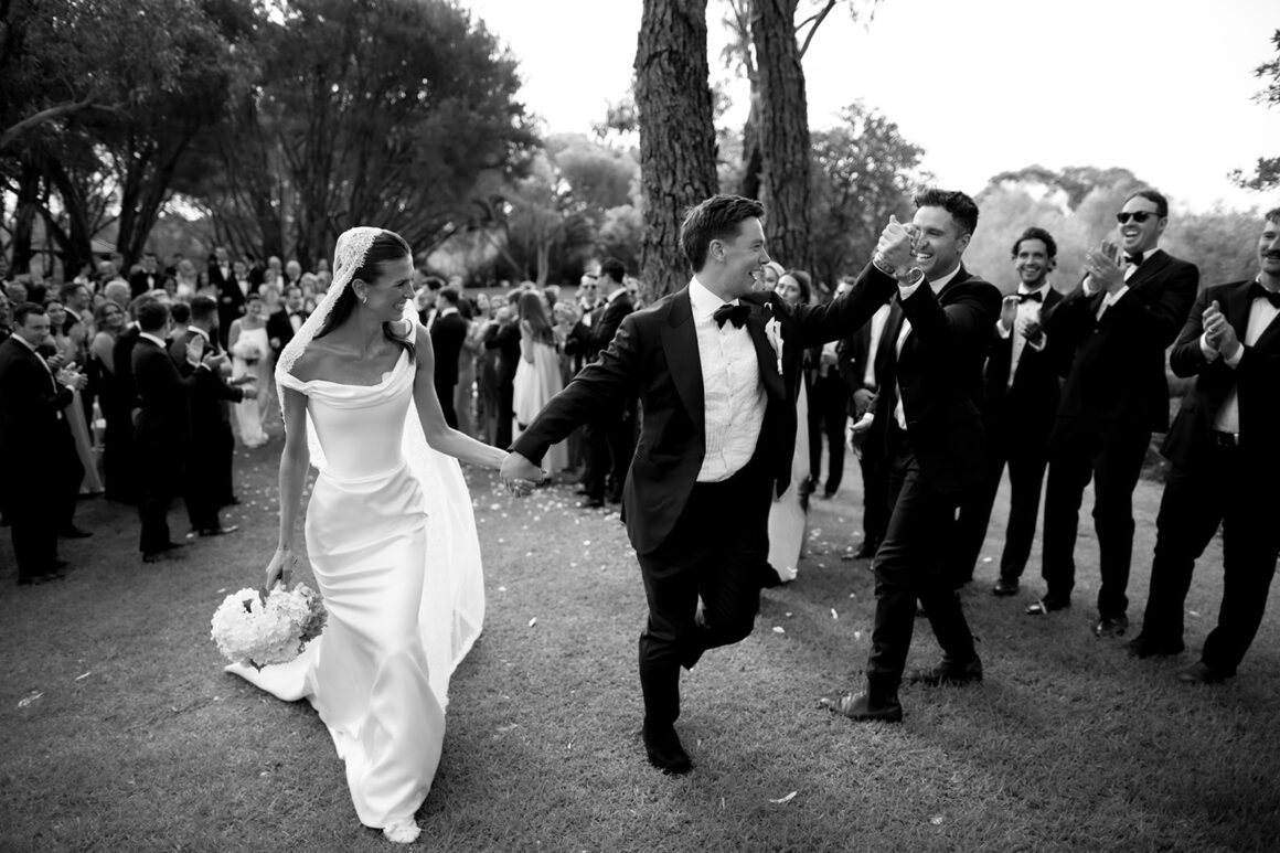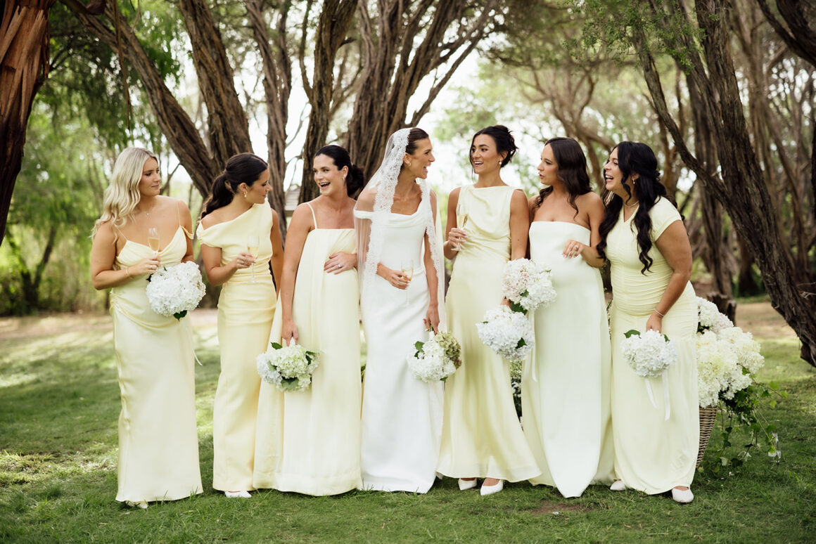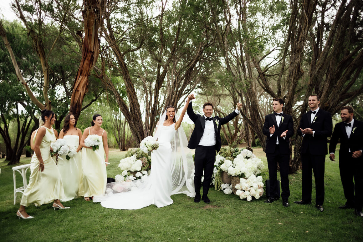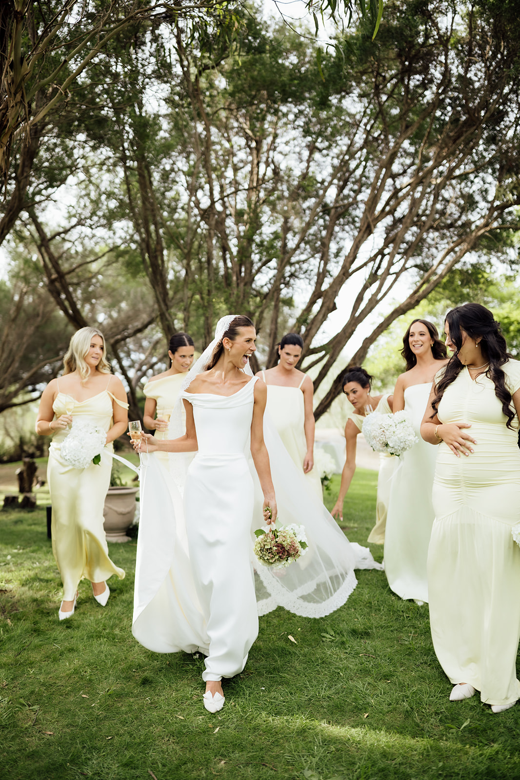 CONTRIBUTING VENDORS Photographer Liz Barnes Cinematographer For the Future Films Event Planner, Stylist & Marquee White Top Florist Estudyo Stationery Bella Quinn Venue Private Property Catering Finesse Catering Cake Maker The Naked Orange Lighting & Sound Hire Stuey Faymous Entertainment Jarrod Brez Celebrant Jordan Tunbridge THE BRIDE Bridal Gown & Veil Designer Bridal Haze Getting Ready Kat the Label Hair Blanca Beauty Makeup Olivia Florence Bridesmaid Dresses Natalie Rolt, Shona Joy, Camilla and Marc, Hansen & Gretel, By Nicola Bridesmaid Shoes Novo Bridesmaid Gifts Mecca, By Charlotte THE GROOM Suit, Jacket, Shirt, Pants, Suspenders, Tie & Cufflinks P. Johnson