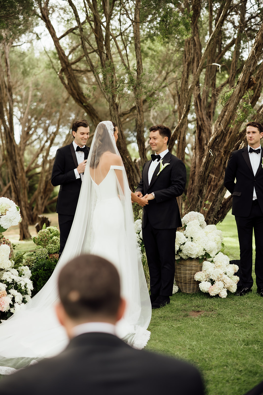 “Boneo has been a treasured place for our family for many years, and my dad now lives there permanently. My brother, sister and I often bring our partners to spend long weekends and holidays, gathering around the fire and sharing the incredible meals made by my amazing mum. At first, we didn’t think hosting the wedding in Boneo would be possible, so we explored a few options in Melbourne. But after meeting Josh from White Top and beginning the planning process with Ayesha, we realised it could be everything we dreamed of. It would feel just like sitting around the family dinner table, only this time with our closest friends and family gathered to celebrate with us.”