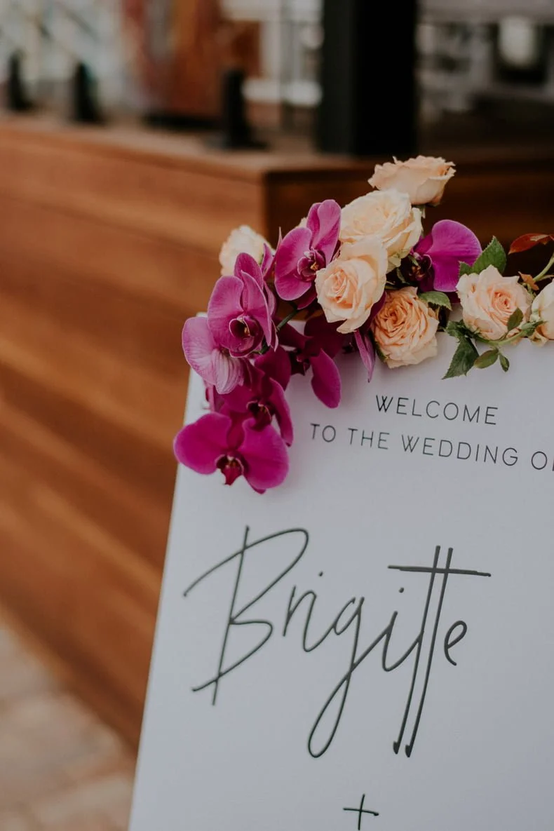 FAVOURITE DETAILS “We absolutely adored the flowers! The colour palette and style of florals was exactly what we wanted. The team at Luca Luna did an incredible job creating WOW factor. We wanted statement flowers, and we got them! They also created a really beautiful bouquet, buttonholes, and corsages for our Mothers, all which tied in with the theme and flowers we used in the arbour.”