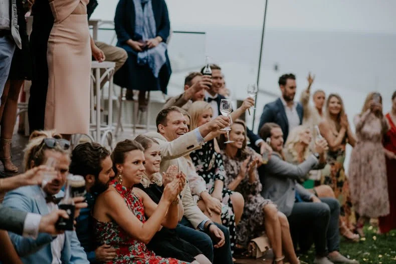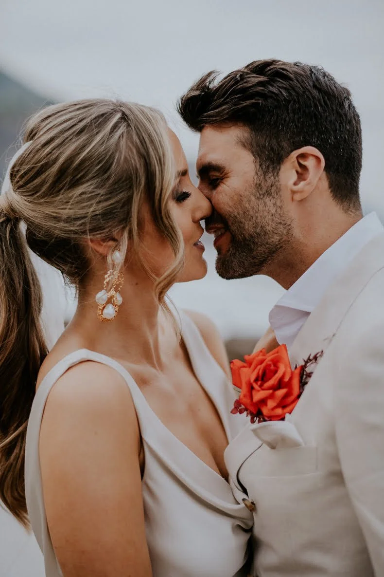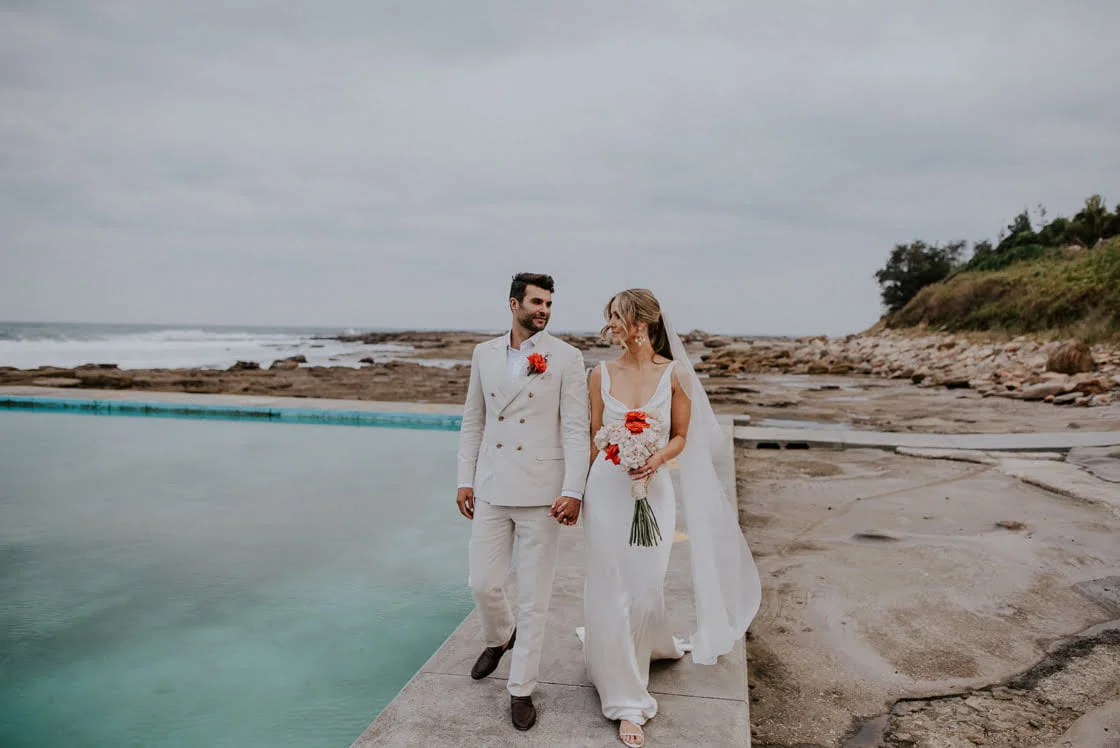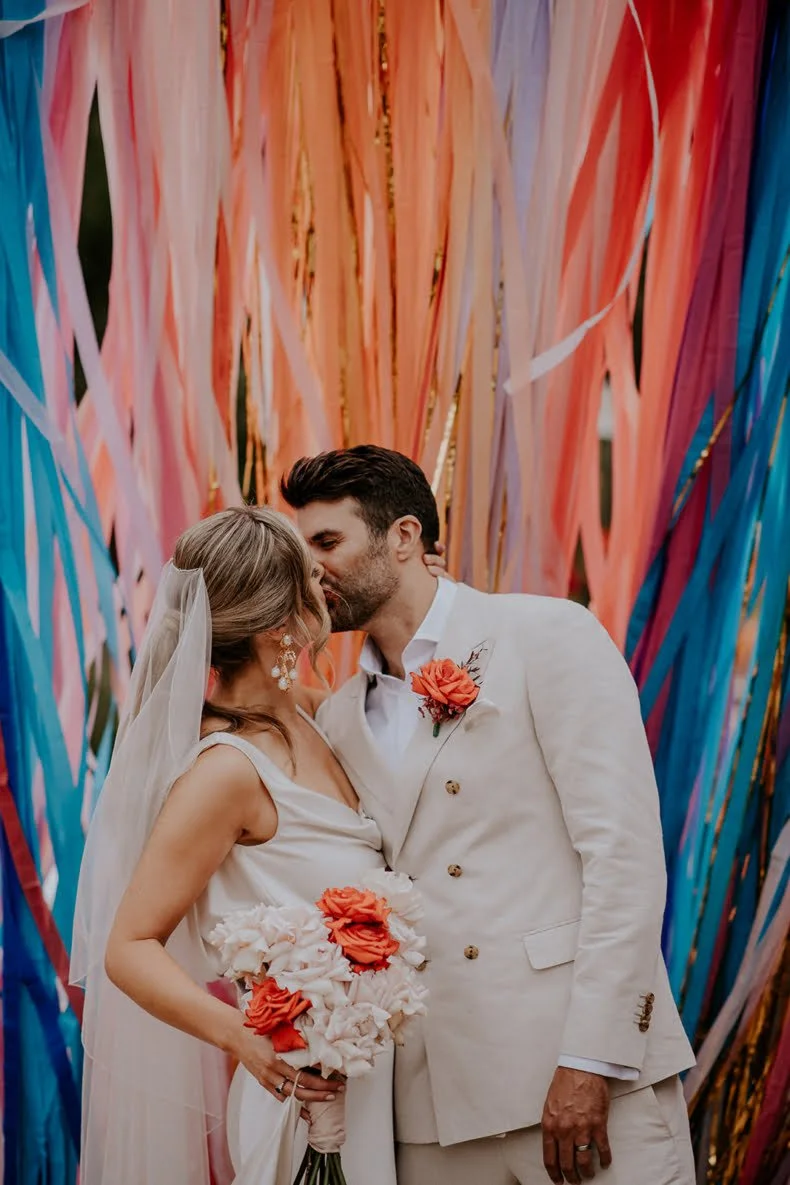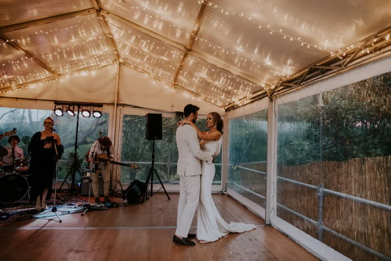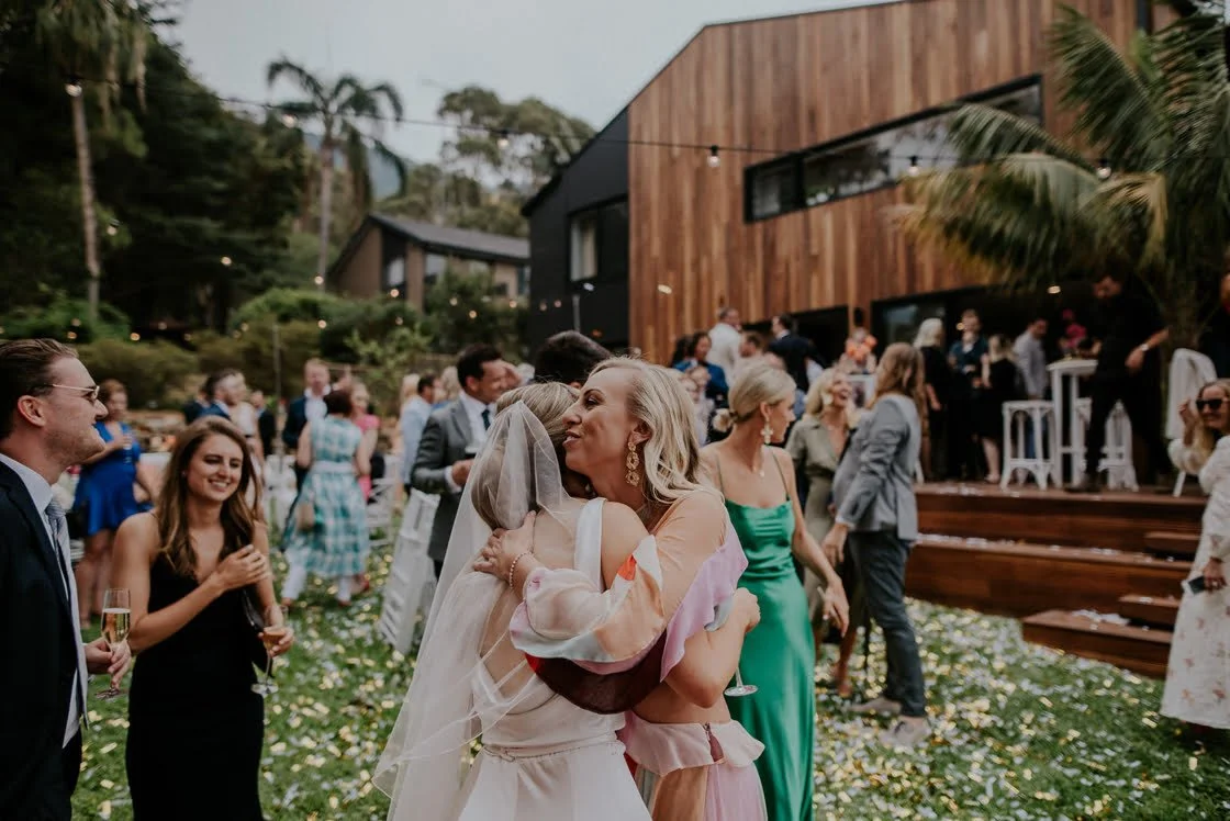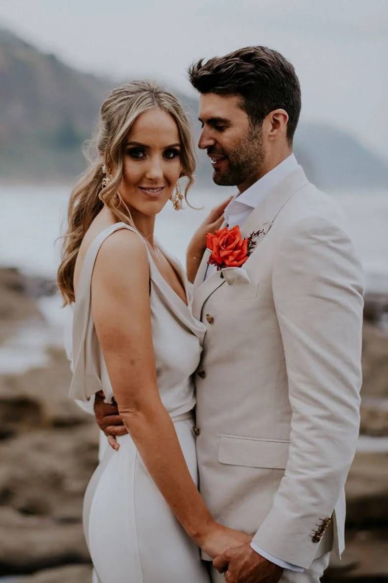 Well, have we got a treat for you this morning, dear readers. One backyard wedding coming in hot! Brigitte and Sam are all about good food and sweet tunes, and where better to get down and boogie but in mum and dad’s backyard? With a dream team of vendors in attendance, this backyard wedding needs to be seen to be believed. Luca Luna went wild with the roses, South Coast Party Hire served up props and lights, and Larsen Jewellery were on rings. The groom was kitted out by our friends over at M.J. Bale whilst Scott Surplice Photography and John Kurt were snapping and recording every moment, all with their signature brand of chill. Enough from us, scroll down to see for yourself…