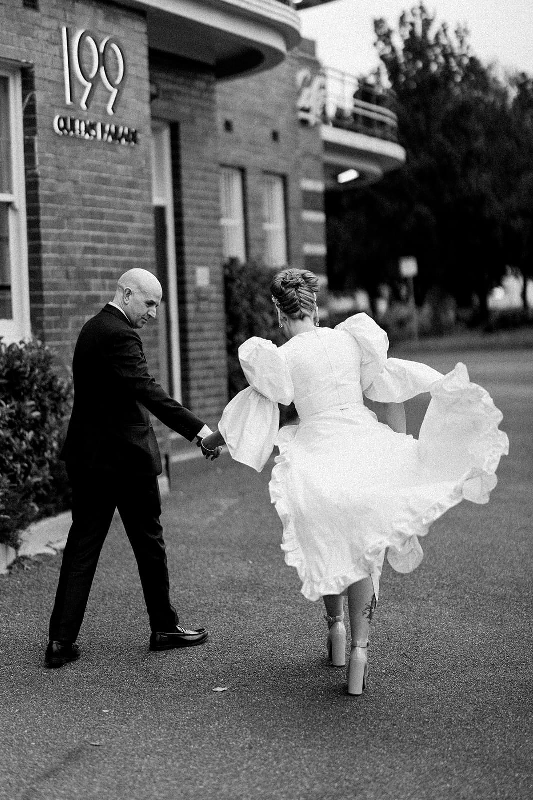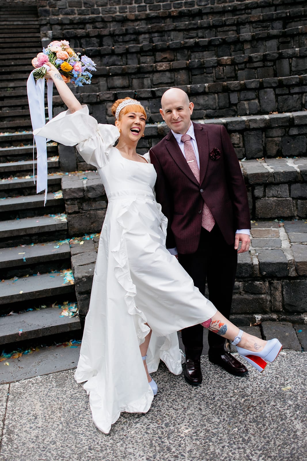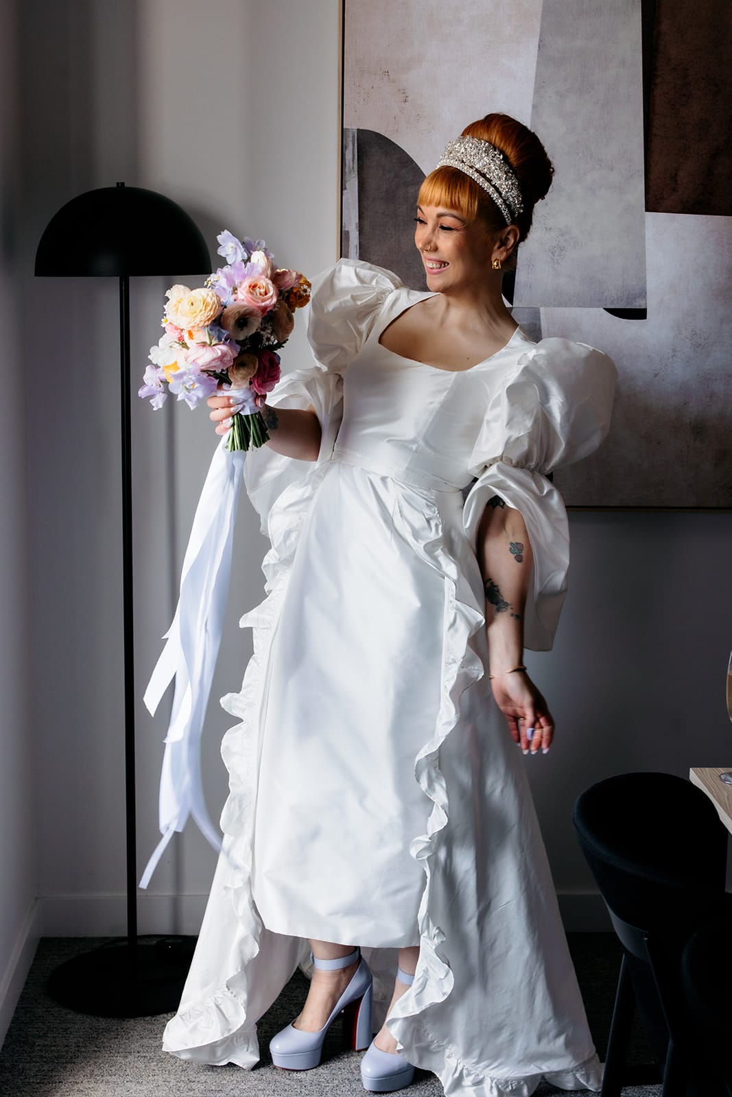 Despite over a decade together, Joel’s proposal still took Brittany by surprise, which this bride reckons “made it all that much more special”. The groom popped the question while the couple (their beautiful baby boy in tow) visited Sydney for the National Northern Soul Weekender (an annual gathering of soul music/record super-fans which, as you’ll read below, these cool cats vow to NEVER miss).