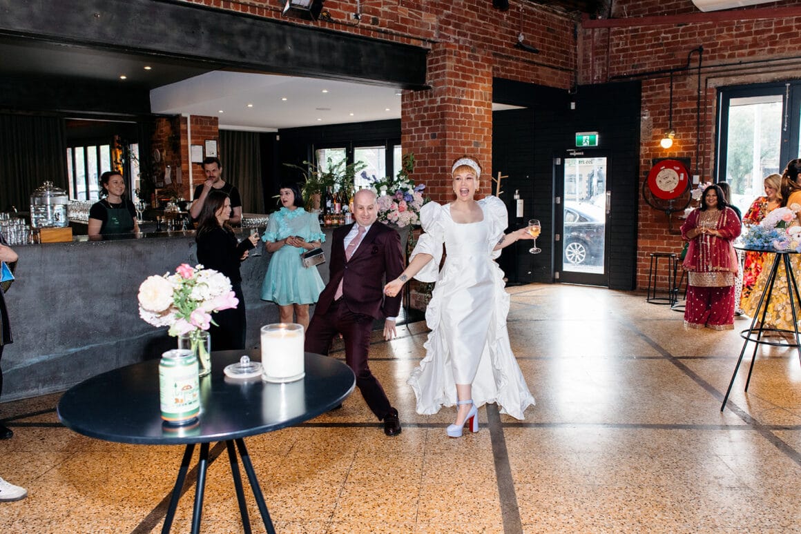THE VENUE “Free to Feed had such a wide selection of wines available to us on the night (all from Jamsheed at the time) and beers (from Bodriggy). We knew their food would be exceptional with a focus on home cooking from their team’s home countries. The space was stunning and needed minimal decorating. And the nicest piece of the puzzle is supporting a non-profit business that supports people seeking asylum and refugees. A wedding is a huge expense, and it was nice to be able to have some of that money go back into something meaningful.”