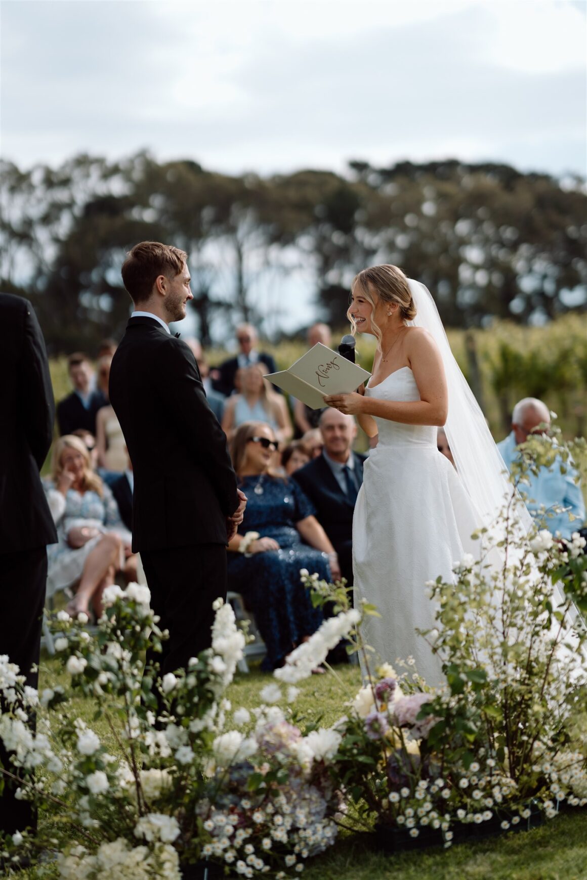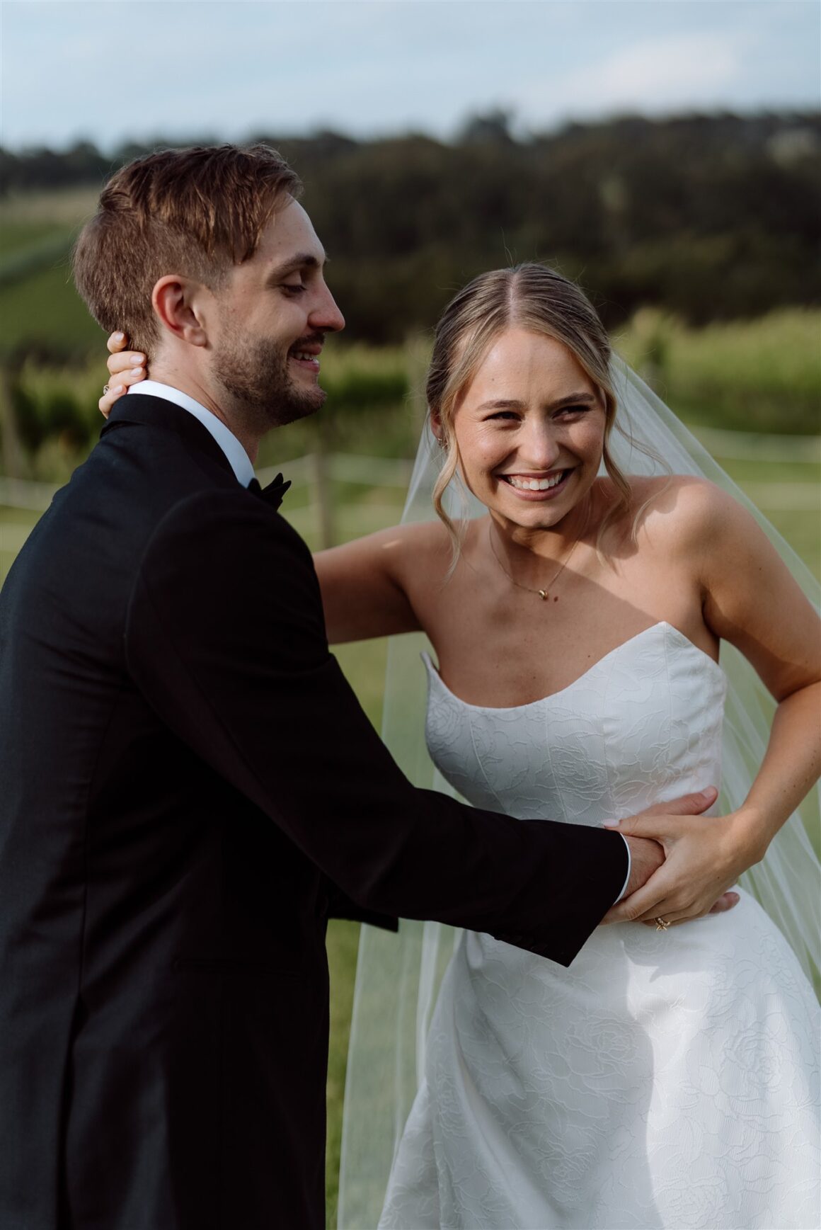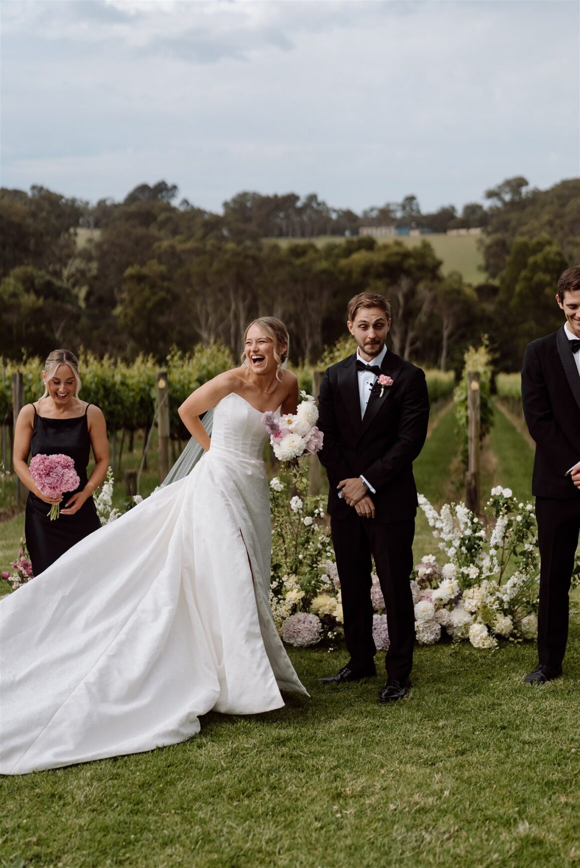 Thinking about changing your wedding venue? It might bring you comfort to hear about Brooke and Dom’s switcheroo. These legends initially booked a spot in Sydney, where Dom hails from, and where the couple currently call home. But, as planning progressed, this bride and groom found their attention turning south to the picturesque Mornington Peninsula region, specifically, Montalto Winery. “We ended up forfeiting that deposit and locking in Montalto after visiting a couple of times,” the groom explains. “It is a very popular winery in the region Brooke grew up in and she always said it was dream venue. We saw so many venues beforehand, but none of them made me feel the way Montalto did,” Brooke adds, explaining that it was “definitely the right decision in the end even though it was a journey to get there!”
