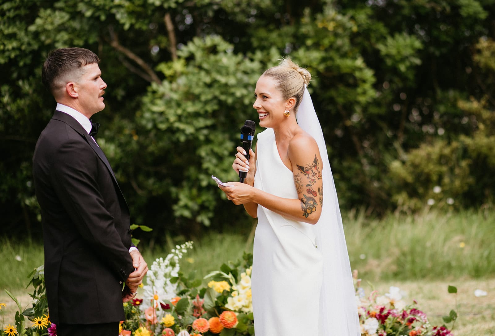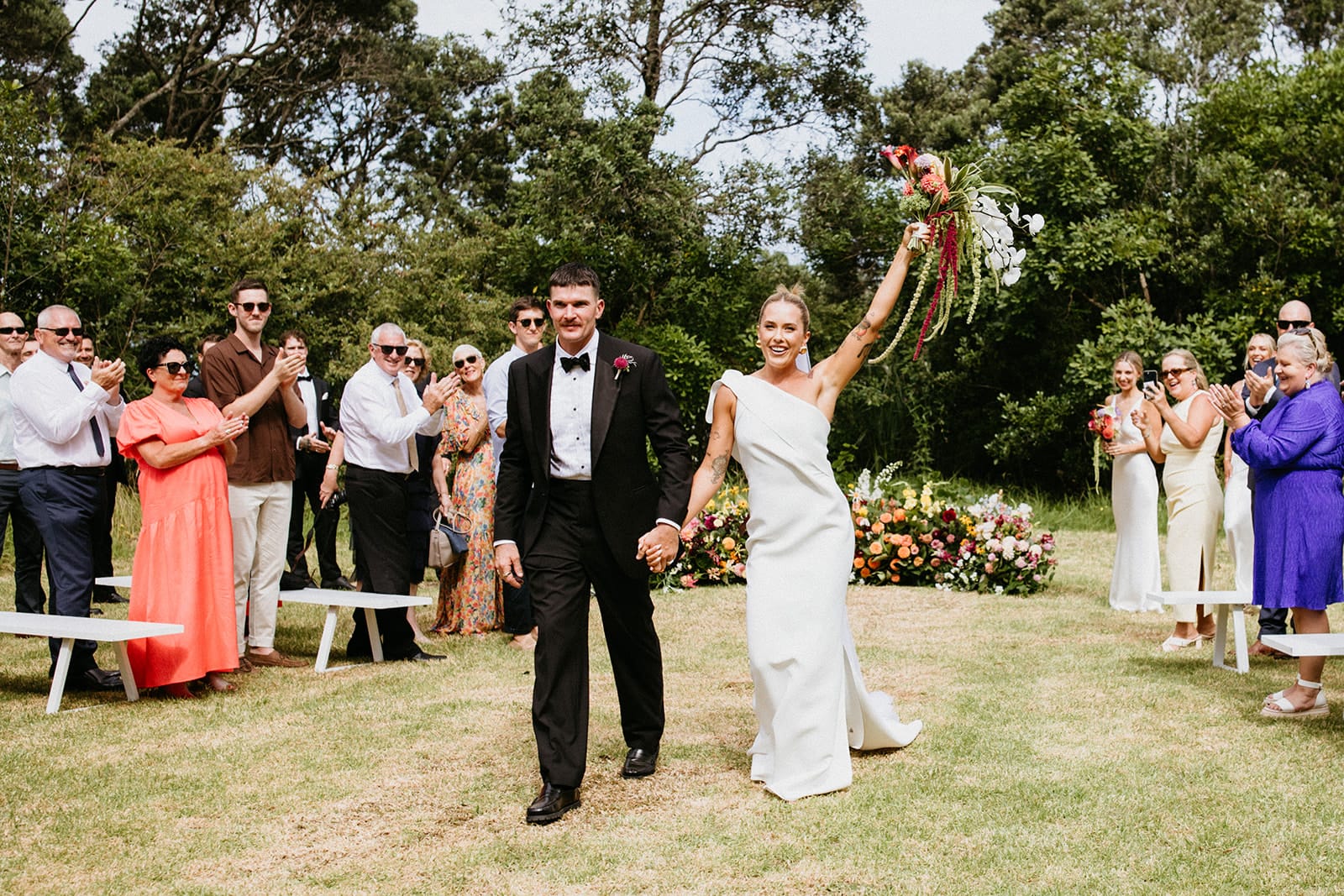 WE’RE GLAD WE…”We did a first look, which meant we could go straight from the ceremony to cocktail hour to soak up the good vibes with our friends! Matt and I also snuck off at sunset to go down to the foreshore for some photos. It gave us some breathing space to chat and just take a moment. We got some amazing photos, and no one even noticed we were gone.”