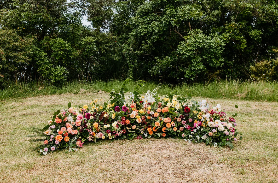 FAVE DETAILS “I am absolutely still obsessed with my cake! I originally planned to get my wedding cake from The Caker, but the bakery shut down the week I went to order! So I enlisted two good friends to make the cake of my dreams using The Caker Cake Kits. It was three 3 layers with matcha, raspberry and poppyseed iced and covered with fresh flowers and fruit. My flowers were also absolutely dreamy. Renee from Roam Studio was able to source from one of our Kiwi friends, who grows a bunch of zinnias and dahlias. During our ceremony, the flowers were covered in bumble bees, which was kind of terrifying but also very cute.”