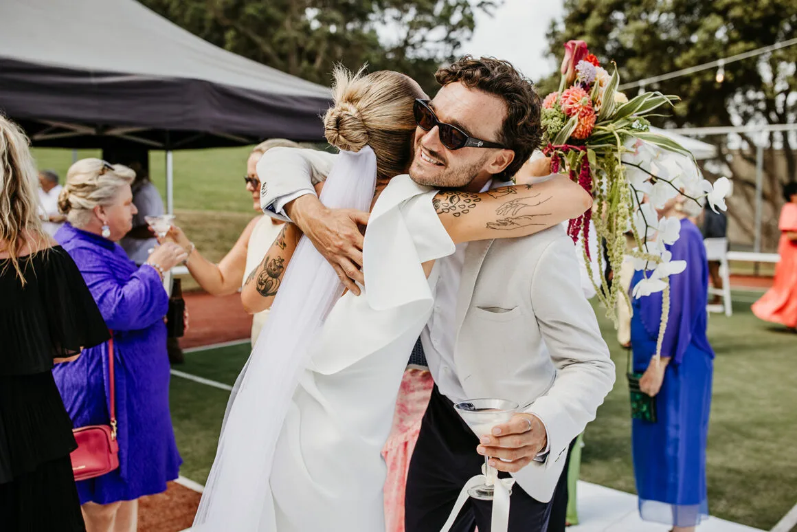 WE’RE GLAD WE…”We did a first look, which meant we could go straight from the ceremony to cocktail hour to soak up the good vibes with our friends! Matt and I also snuck off at sunset to go down to the foreshore for some photos. It gave us some breathing space to chat and just take a moment. We got some amazing photos, and no one even noticed we were gone.”