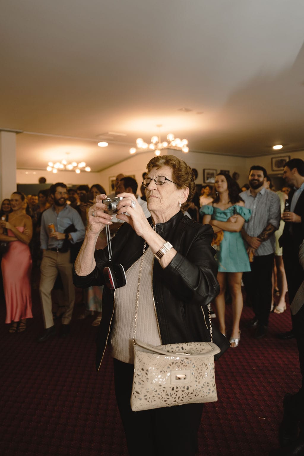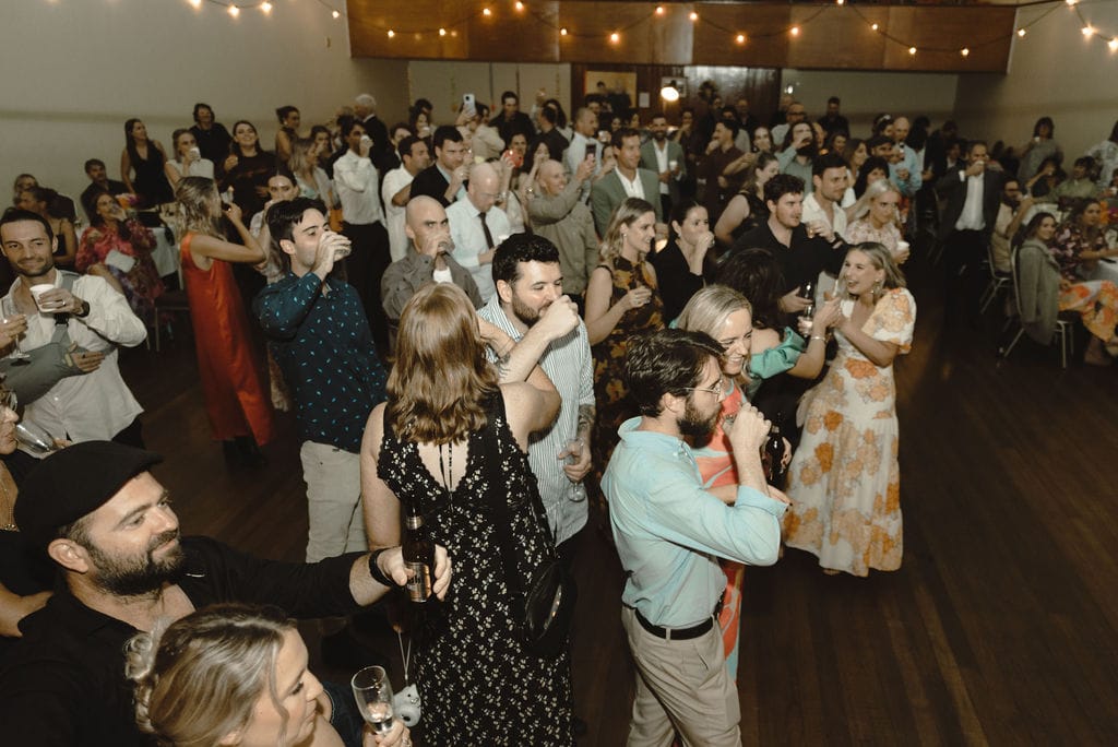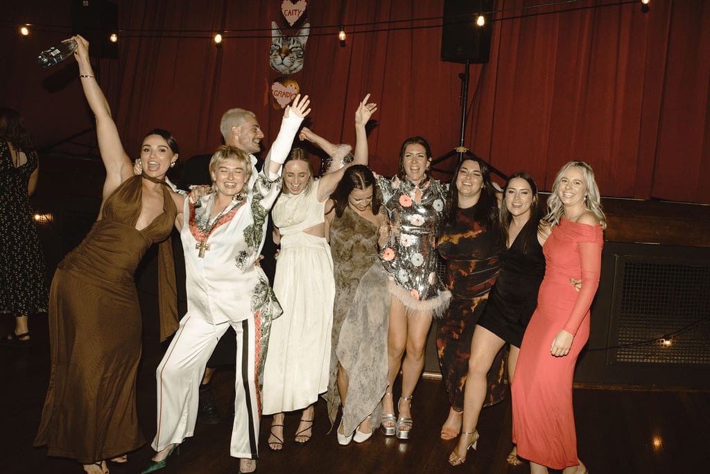 If you can believe it, they spent only seven months pulling this party together, which was hosted at country Victoria’s Koroit Theatre. But that was “plenty of time”, thanks to the help of friends and family (legends!) As for the theme? Well, Grady and Caity just wanted to be surrounded by things that bring them joy! Think cup’o’noodles, Japanese snacks, sake, retro decor, a disco ball and a life-like cutout of the couple’s cat. We love it. We love it. WE LOVE IT!