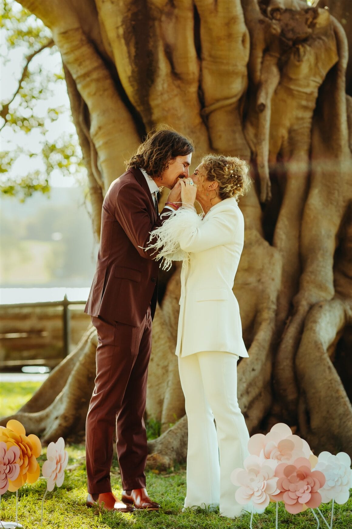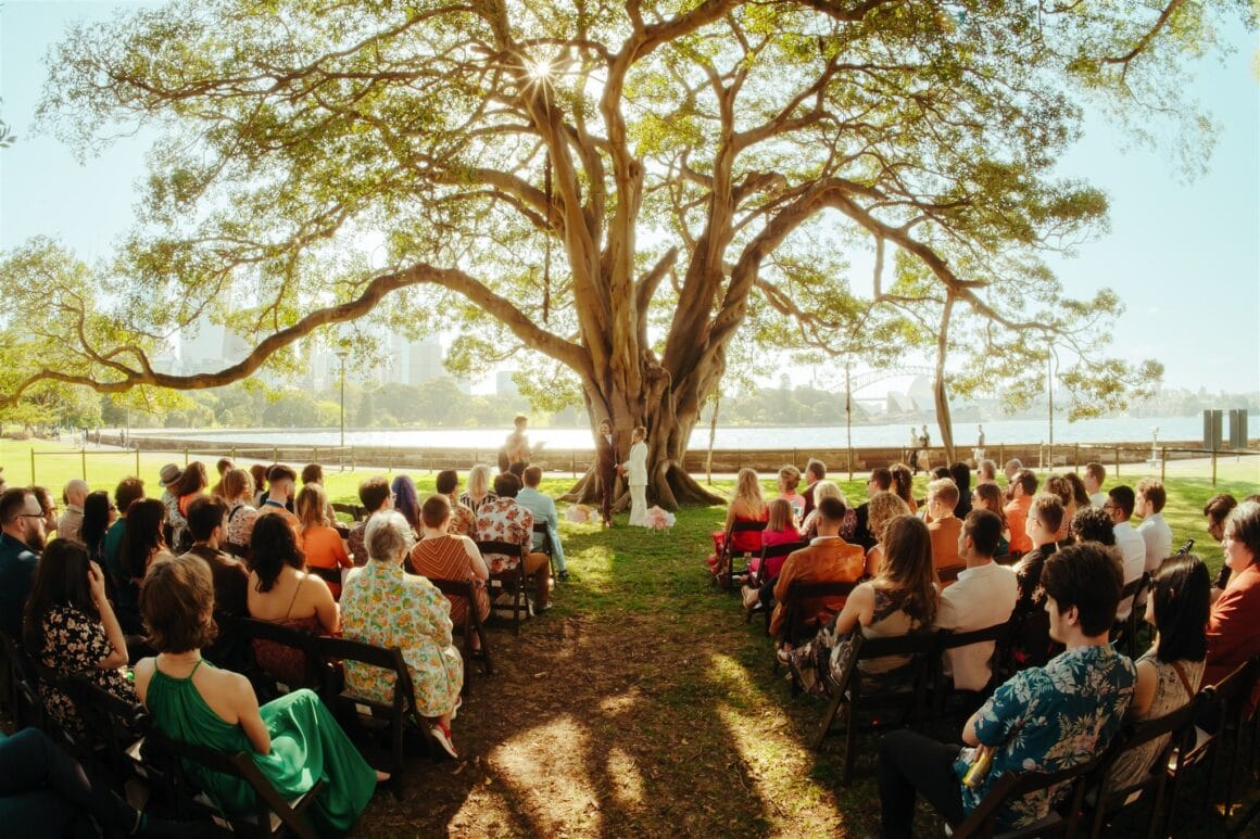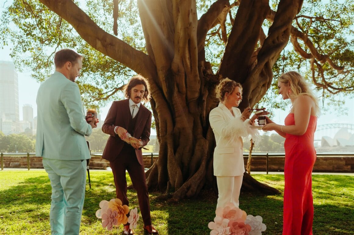THE VENUE “Location and price drove us to look at the Royal Botanic Gardens. We didn’t want to have some big process to get from the ceremony to the party. Also, I really love trees and birds, so the gardens were an easy choice. For the reception, the Bob Hawke Brewery matched our vibe perfectly, and we loved their dedication to supporting Australian wildlife and lands.”