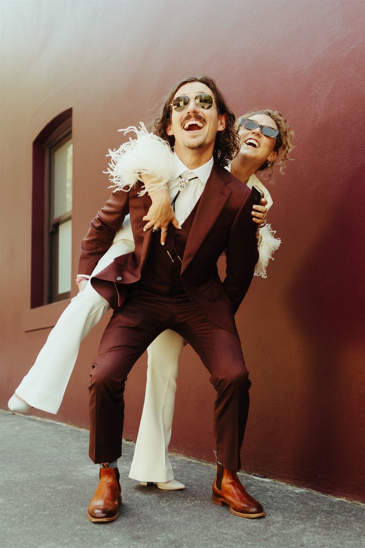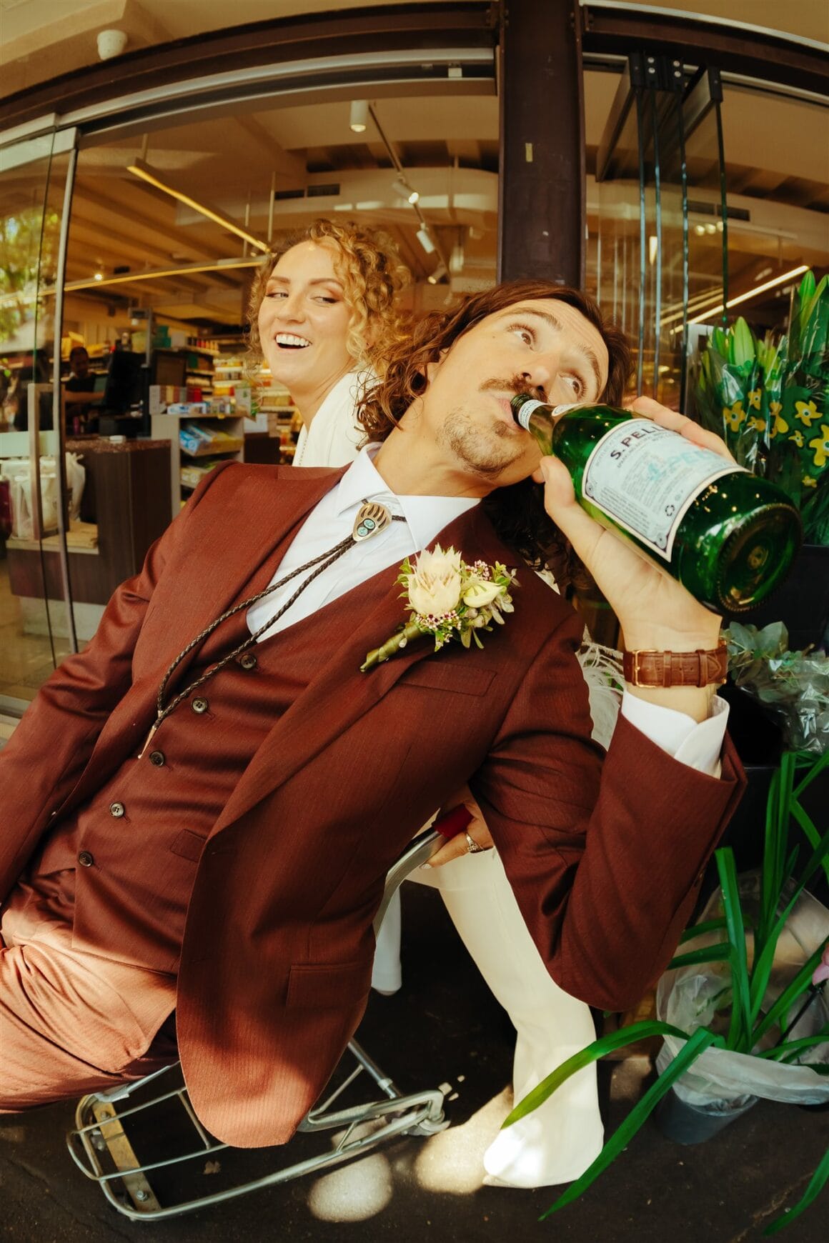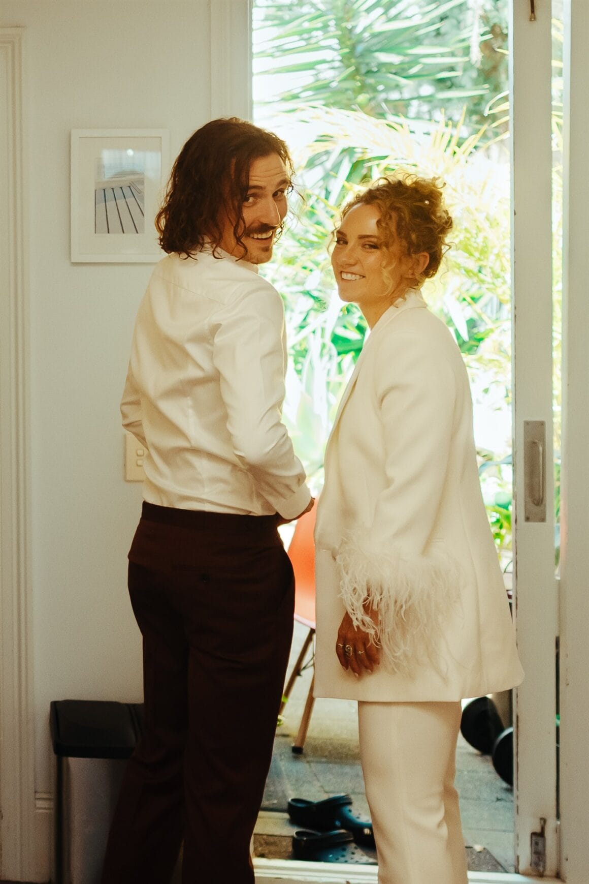 THE DRESS (Matt) “We had lots of panic and stress about the dress. Carrie had maybe 3-4 different ones along the way. I’m very proud that I was able to find the final dress. I spent my lunch break walking around the CBD, going into tons of shops and boutiques. I got a lot of odd looks and questions from all the women working in these stores, but once I explained what I was doing, they were thrilled to help us out. I would take photos of things I thought were interesting, then send them to Carrie for her review. When she found something she really liked, we would book a time to go and try it on. I found the pant suit at Rebecca Vallance in The Strand, but they only had it in black, so we had to do a special order and get it tailored in the final weeks before the wedding.”