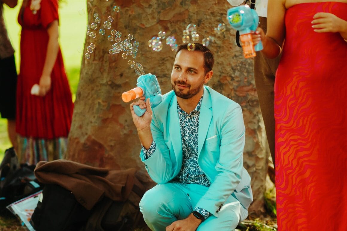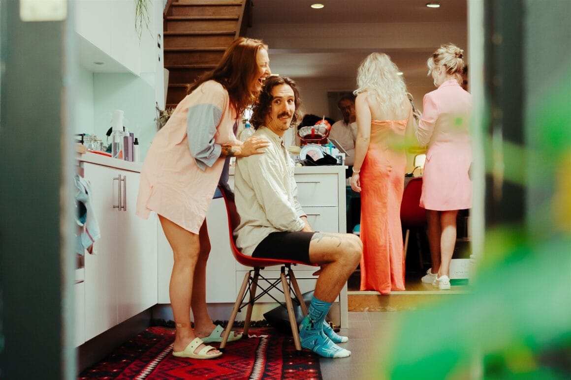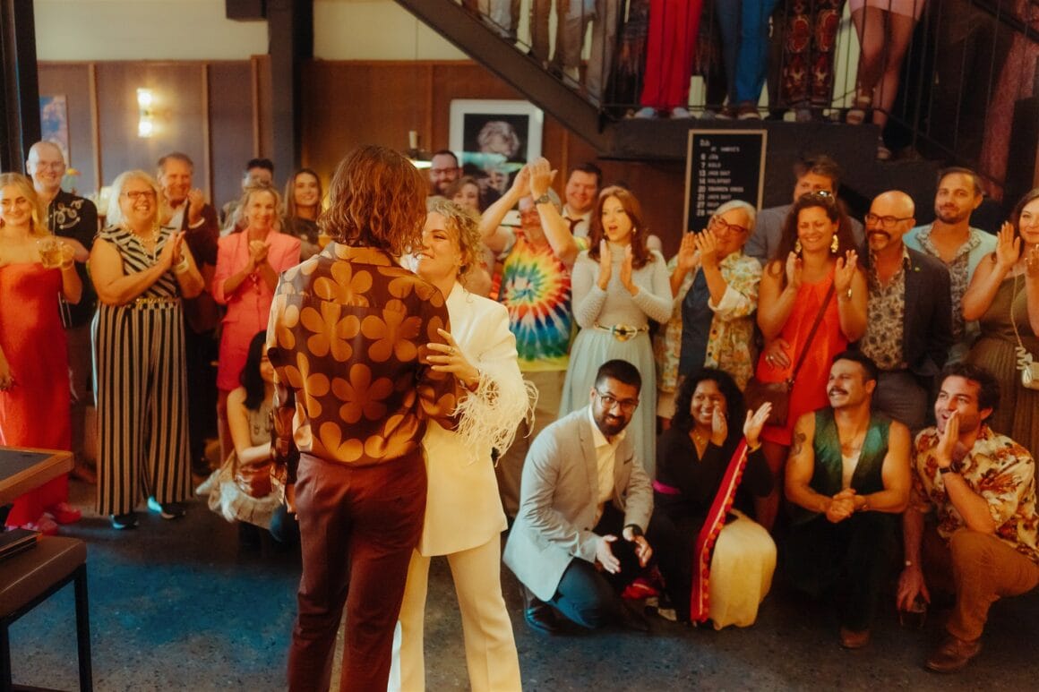 THE DRESS (Matt) “We had lots of panic and stress about the dress. Carrie had maybe 3-4 different ones along the way. I’m very proud that I was able to find the final dress. I spent my lunch break walking around the CBD, going into tons of shops and boutiques. I got a lot of odd looks and questions from all the women working in these stores, but once I explained what I was doing, they were thrilled to help us out. I would take photos of things I thought were interesting, then send them to Carrie for her review. When she found something she really liked, we would book a time to go and try it on. I found the pant suit at Rebecca Vallance in The Strand, but they only had it in black, so we had to do a special order and get it tailored in the final weeks before the wedding.”