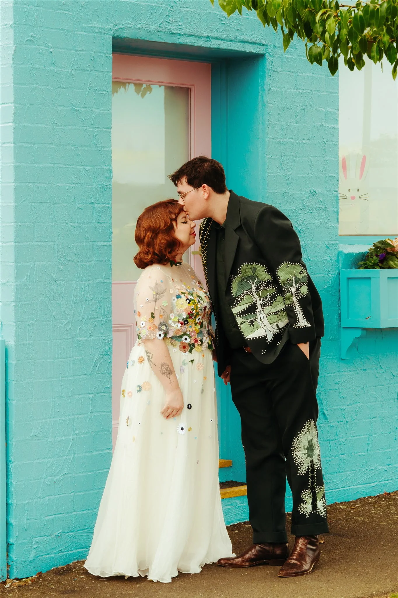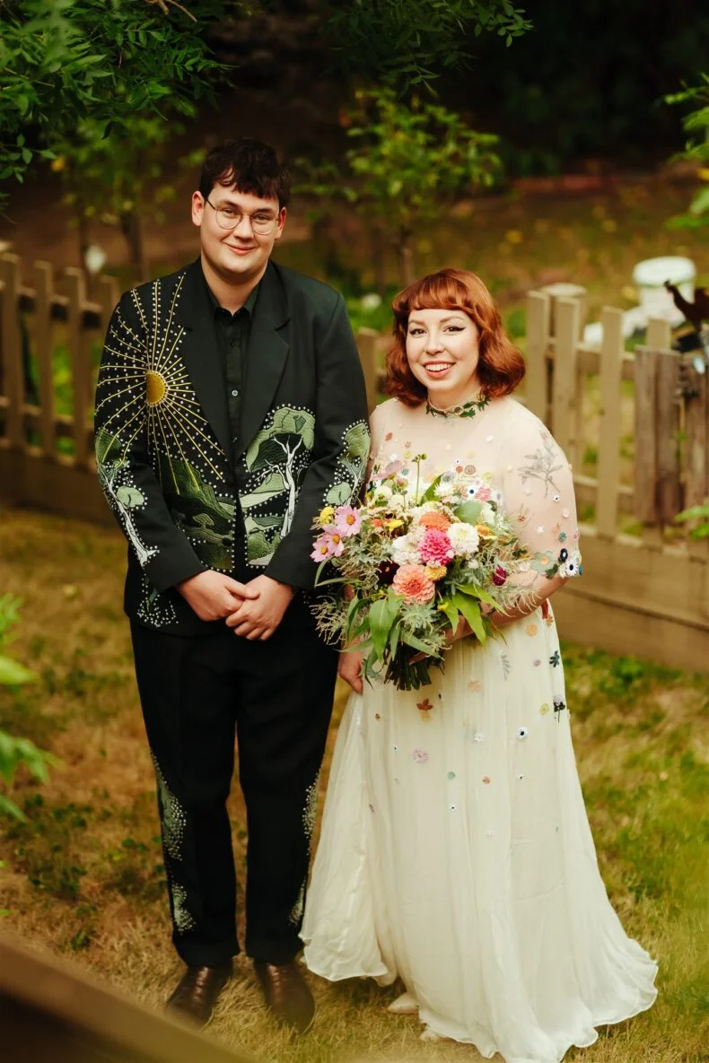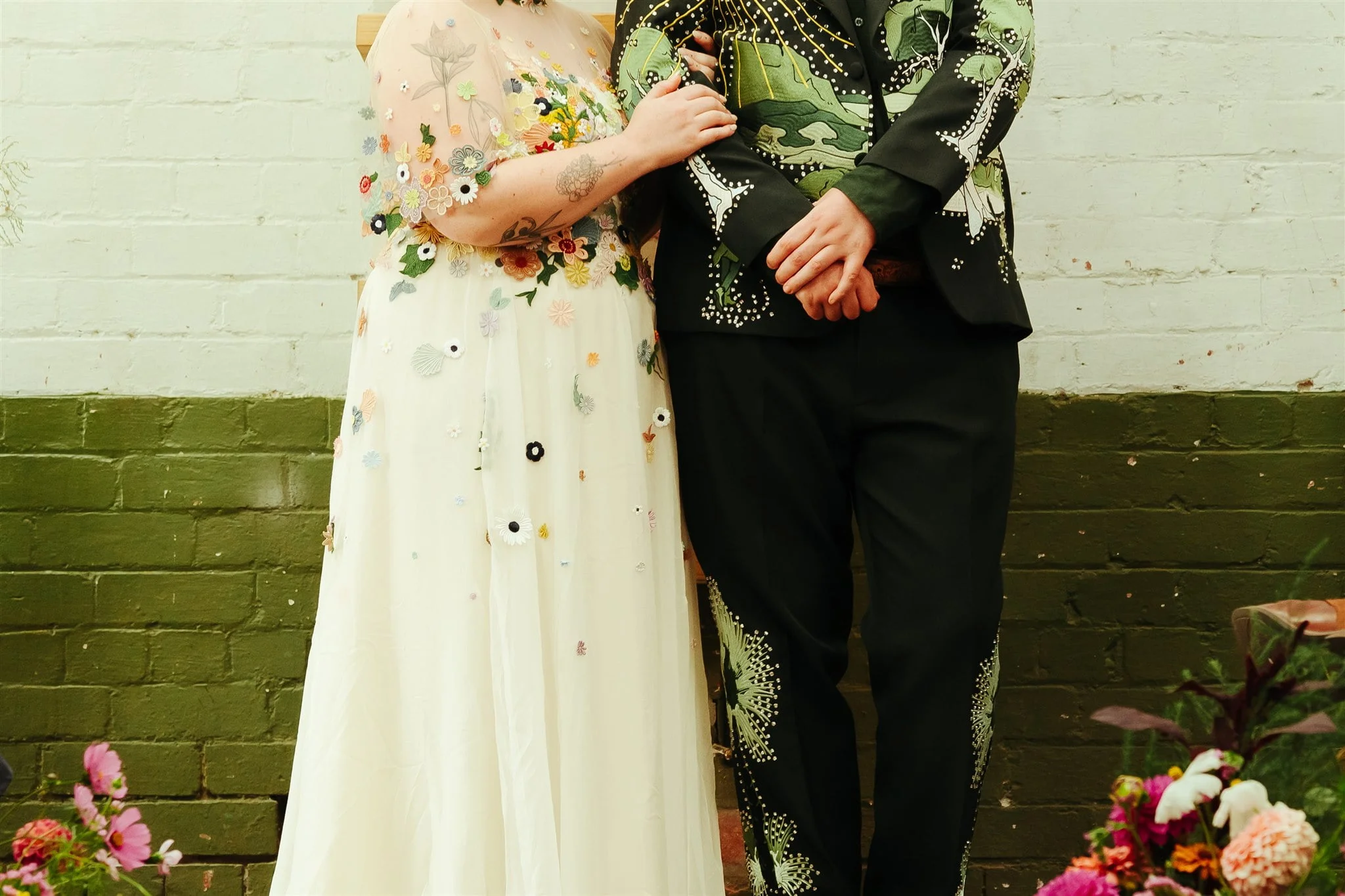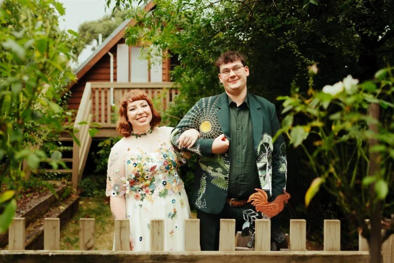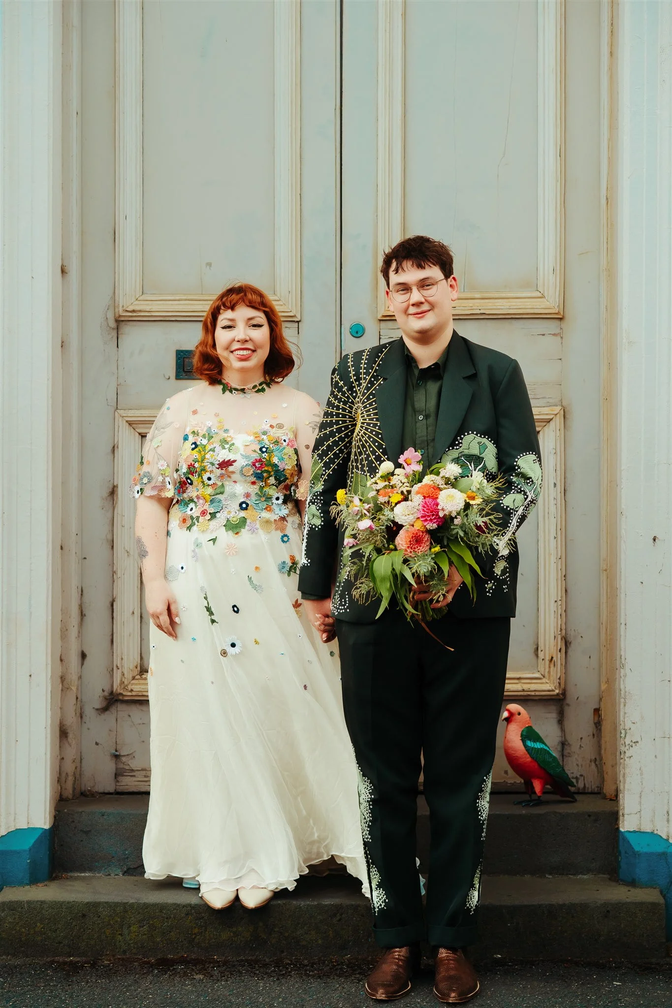 THE DRESS “I had spotted a Puyan Saheb Djavaher dress (it was, in fact, her own wedding dress) on Pinterest literally years prior to our engagement. The lush, colourful embroidered flowers had completely blown my mind, and I knew I didn’t want anything overly traditional. I’m a pretty pale gal so I wanted some colour! I had to do some hardcore internet sleuthing to find Puyan’s legit contact details. I reached out about 13 months prior to our wedding date and Puyan’s team were amazing. The whole design process was communicated via email, they sent a little draft dress (plain potato sack material essentially haha) to test my measurements and then I received my final dress, all the way from Berlin, in the mail. Such a smooth experience. ”