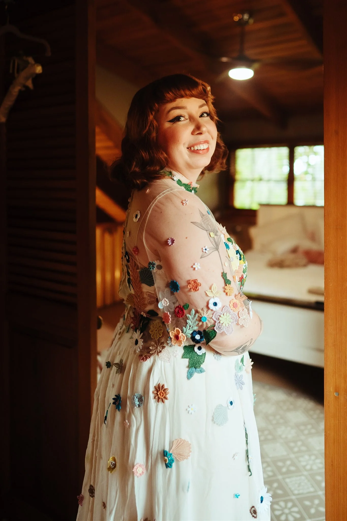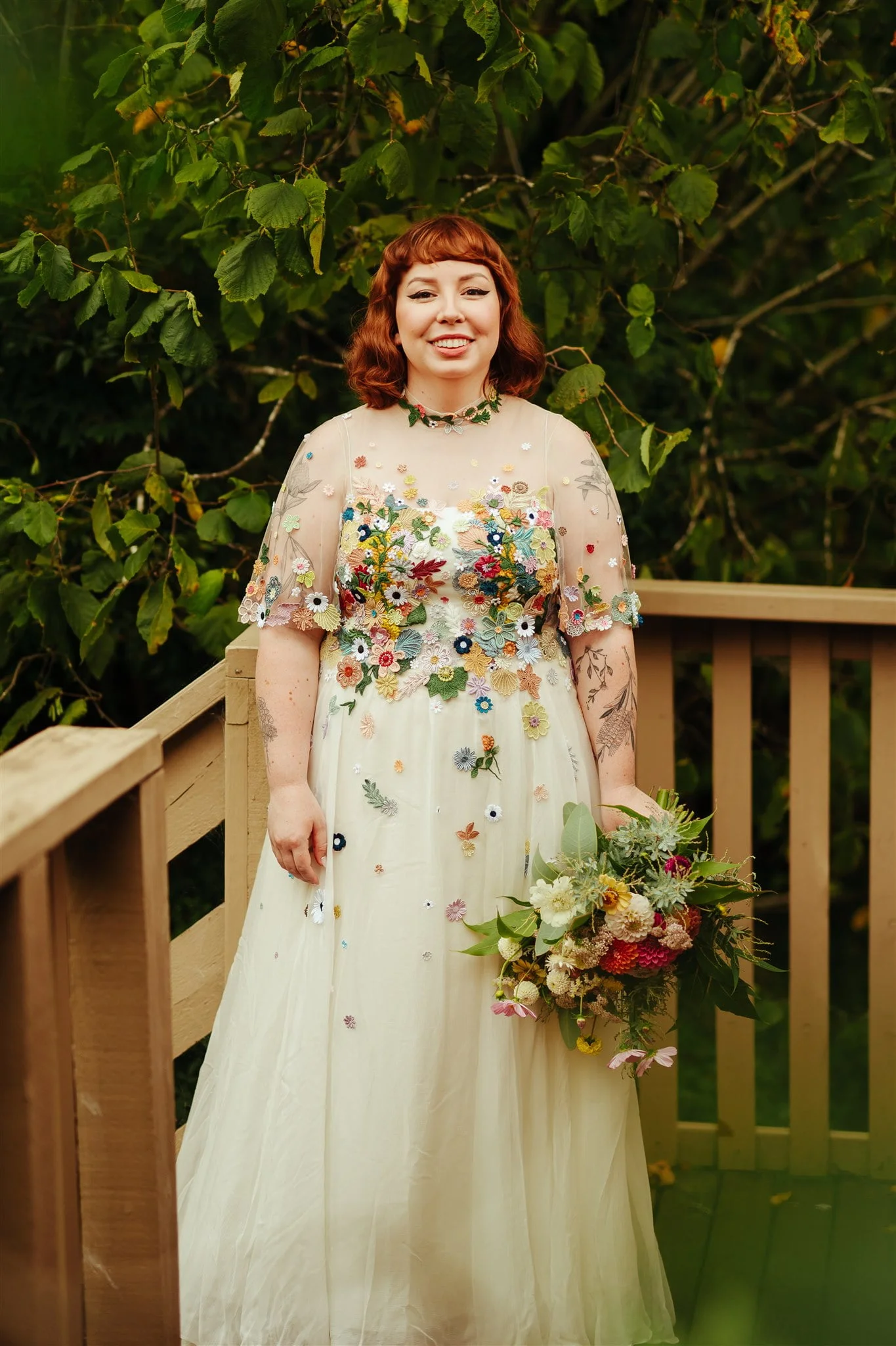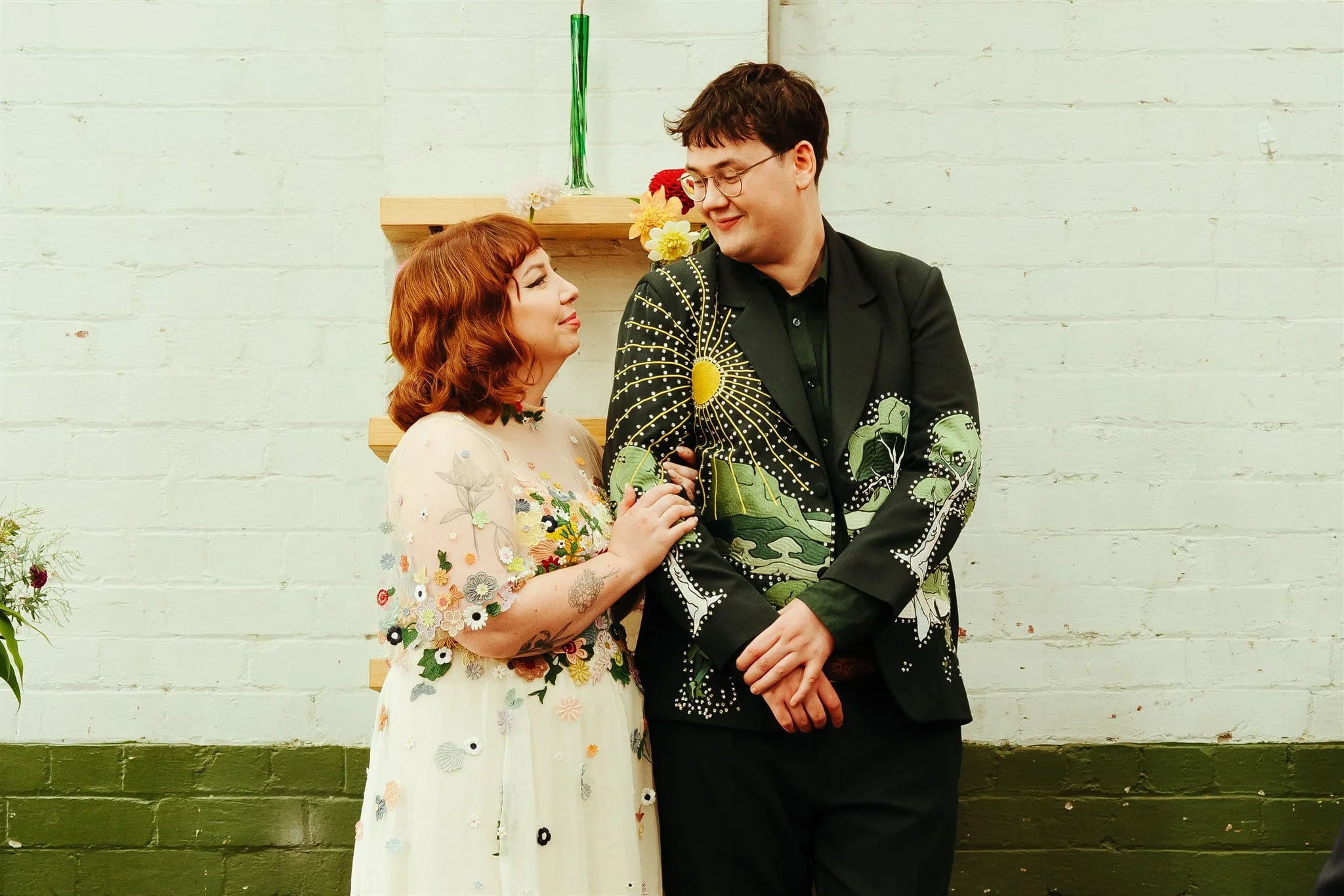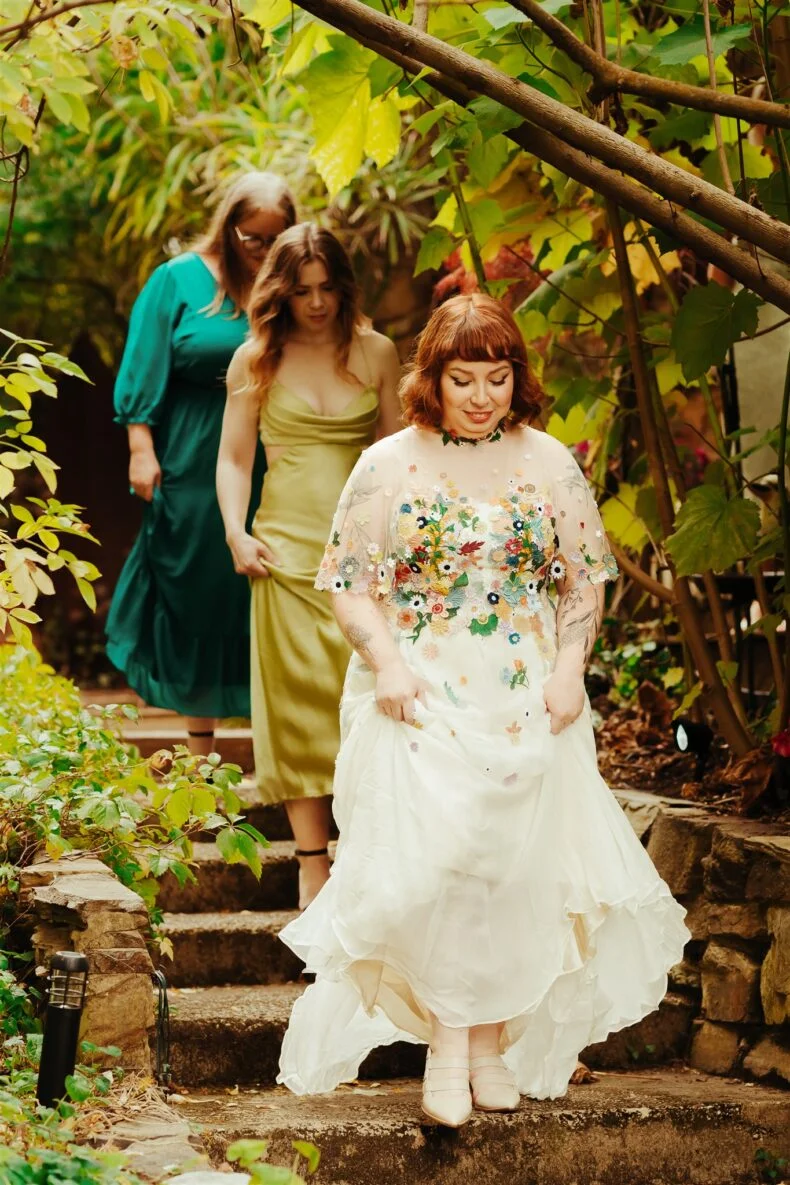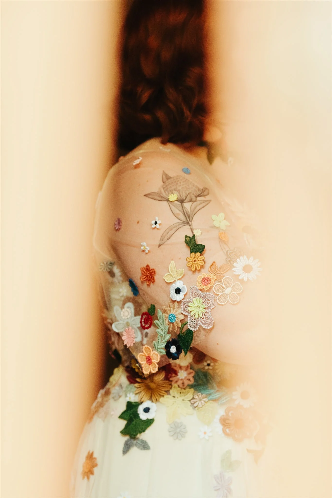 THE DRESS “I had spotted a Puyan Saheb Djavaher dress (it was, in fact, her own wedding dress) on Pinterest literally years prior to our engagement. The lush, colourful embroidered flowers had completely blown my mind, and I knew I didn’t want anything overly traditional. I’m a pretty pale gal so I wanted some colour! I had to do some hardcore internet sleuthing to find Puyan’s legit contact details. I reached out about 13 months prior to our wedding date and Puyan’s team were amazing. The whole design process was communicated via email, they sent a little draft dress (plain potato sack material essentially haha) to test my measurements and then I received my final dress, all the way from Berlin, in the mail. Such a smooth experience. ”