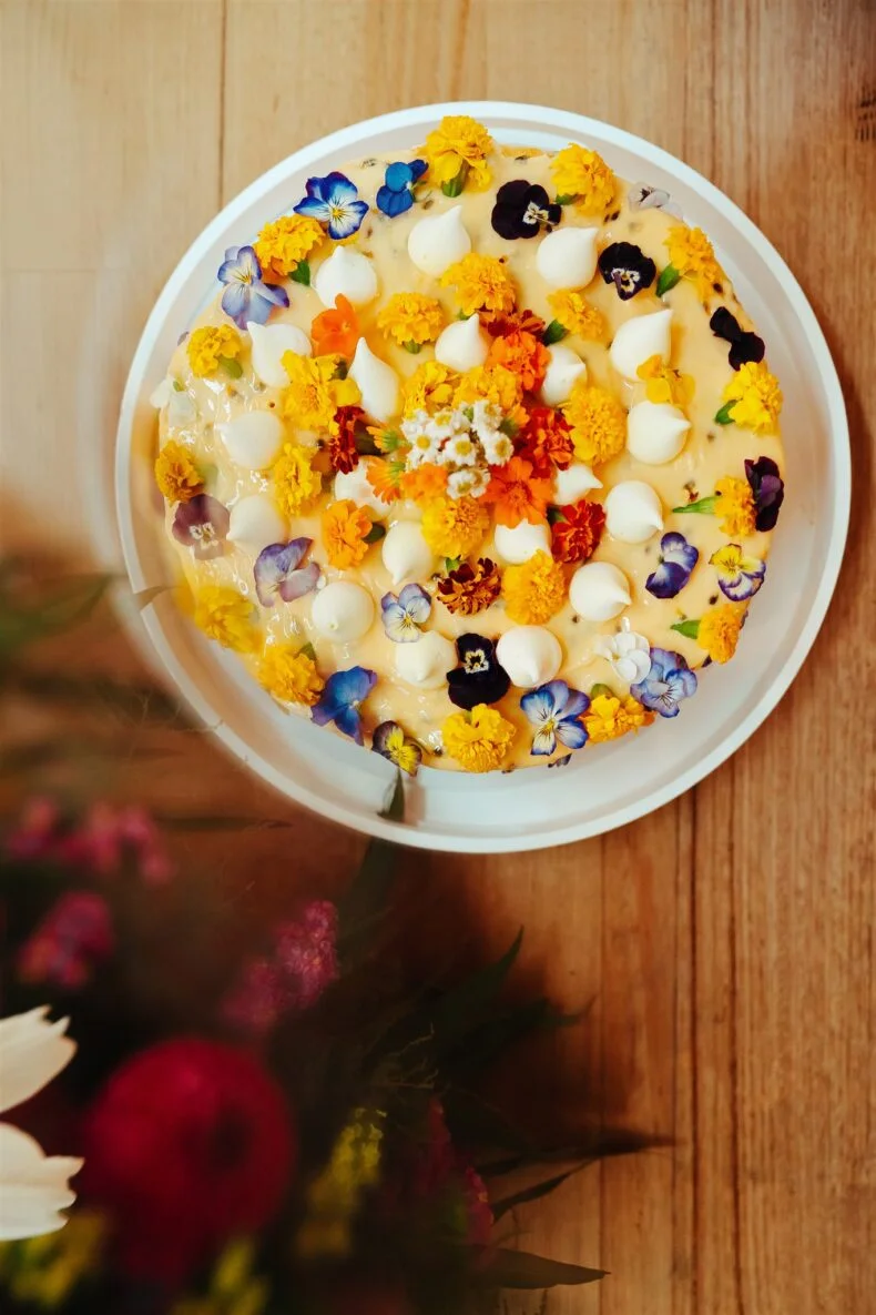 FAVE DEETS “The cake made by my mum – it was a homemade passionfruit sponge with fresh cream, passionfruit curd and edible flowers. She had trialed and tested multiple sponges leading up to the big day. We also just geniunely enjoyed the atmosphere that our venue Hydrant Food Hall and our florist Ingliston Flora created, it was colourful, relaxing and full of human sunshine.”