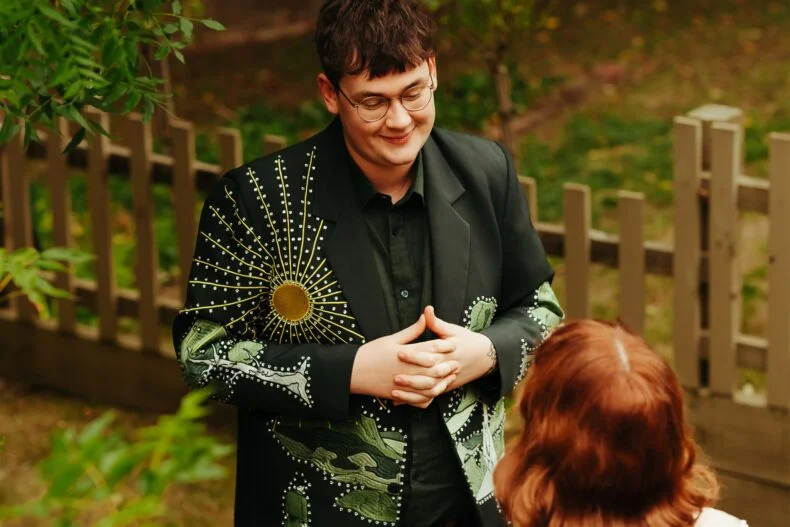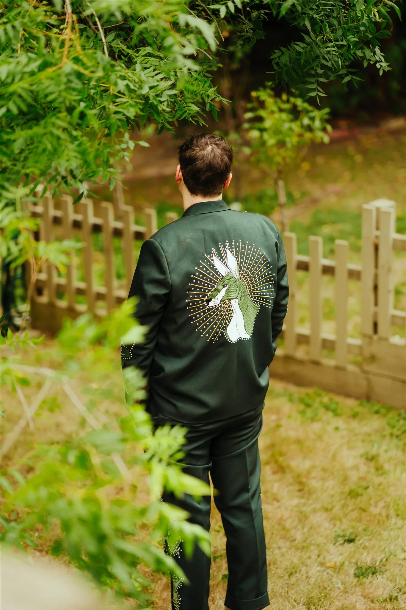 THE SUIT “I said from the start that I wanted something loud, and when I stumbled upon James from Reigner‘s Instagram I knew I wanted one of his suits. I initially filled out a bizarre online form that James had made up to gain insight on what suit his clients were after and after our first meeting, I decided that we were going to have a green Australian bush-themed suit.”