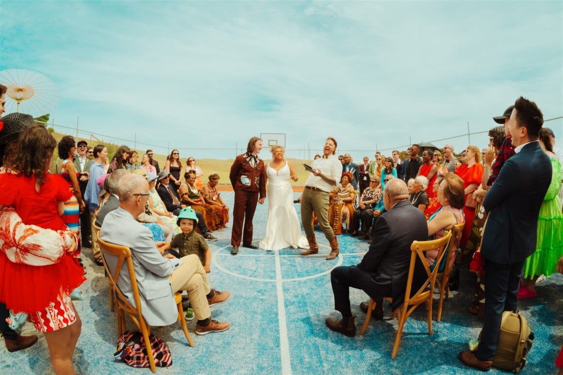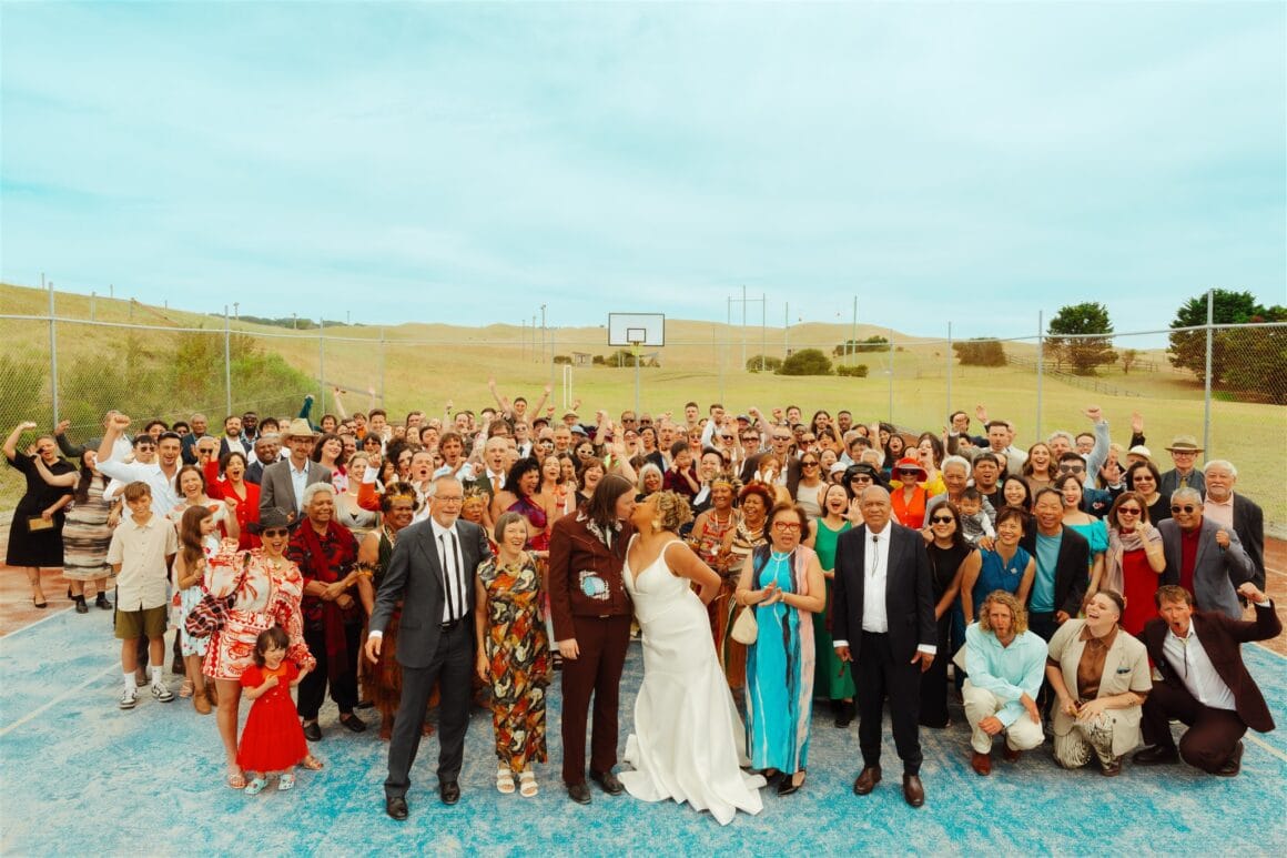 A short skip from Melbourne with “plenty of sunset views”, The Ranch ticked all the couple’s venue boxes, with ample areas to host their tea ceremony, wedding ceremony, post-ceremony drinks, afterparty and reception. “It even had a tennis court so I could live my lifelong dream of getting married on a tennis court lol,” the bride shares.