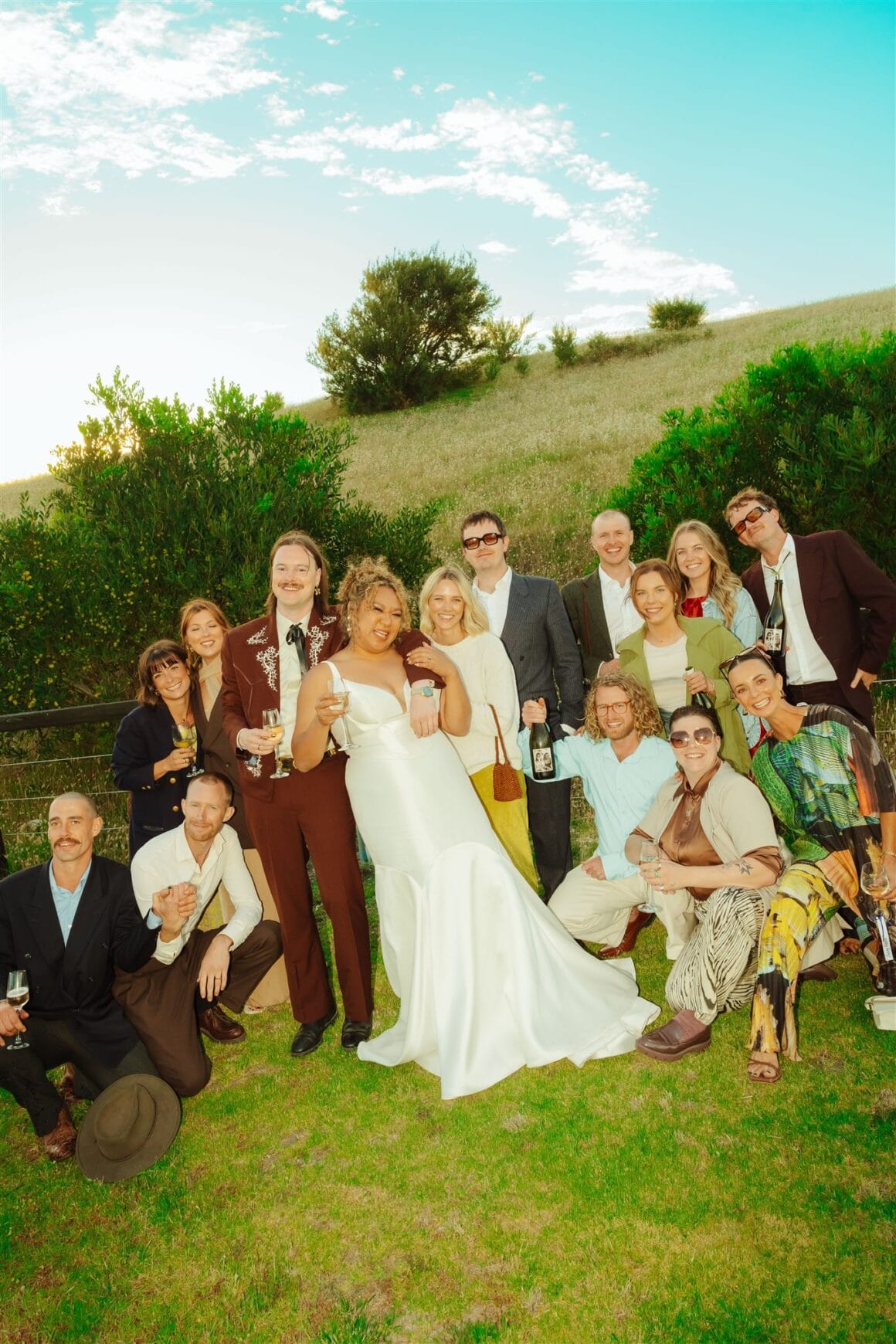 CONTRIBUTING VENDORS Photographer Jackson Grant On-the-day Coordinator Ivana Rnjak Florist Ella Stoeckli (Friend) Stationery & Signage DIY, Canva, Andrey Azizov Printer Officeworks Venue The Ranch Mornington Peninsula Catering Muse Events Catering Food Trucks or Carts Finn’s Oyster Bar, Elliot-Jones Sibners (Family), Last Drop Hire Items & Marquee Twilight Event Hire Film Cameras Jack Brookes (Friend) Lighting & Sound Hire DJ Warehouse Entertainment Milo Eastwood Celebrant HolyMatrimonty Rings Pip Stent, Matt Wynne Designer Jeweller Wines & Beverages Jordan Hein – Moorak Wines, Dom Smith – Slow Lane Wines, Bae Juice THE BRIDE Bridal Gown Designer Kelly Lin Couture Bridal Boutique Emily May Bridal Shoes Loeffler Randall, Nike Accessories 8 Other Reasons Hair & Makeup Ella Benore Rowe – Elvie’s Studios Collingwood Fragrance Issey Miyake THE GROOM Suit, Jacket & Pants Reigner Shirt Oscar Hunt Earrings Cami Citrine Shoes R.M. Williams Watch Tommy Hilfiger