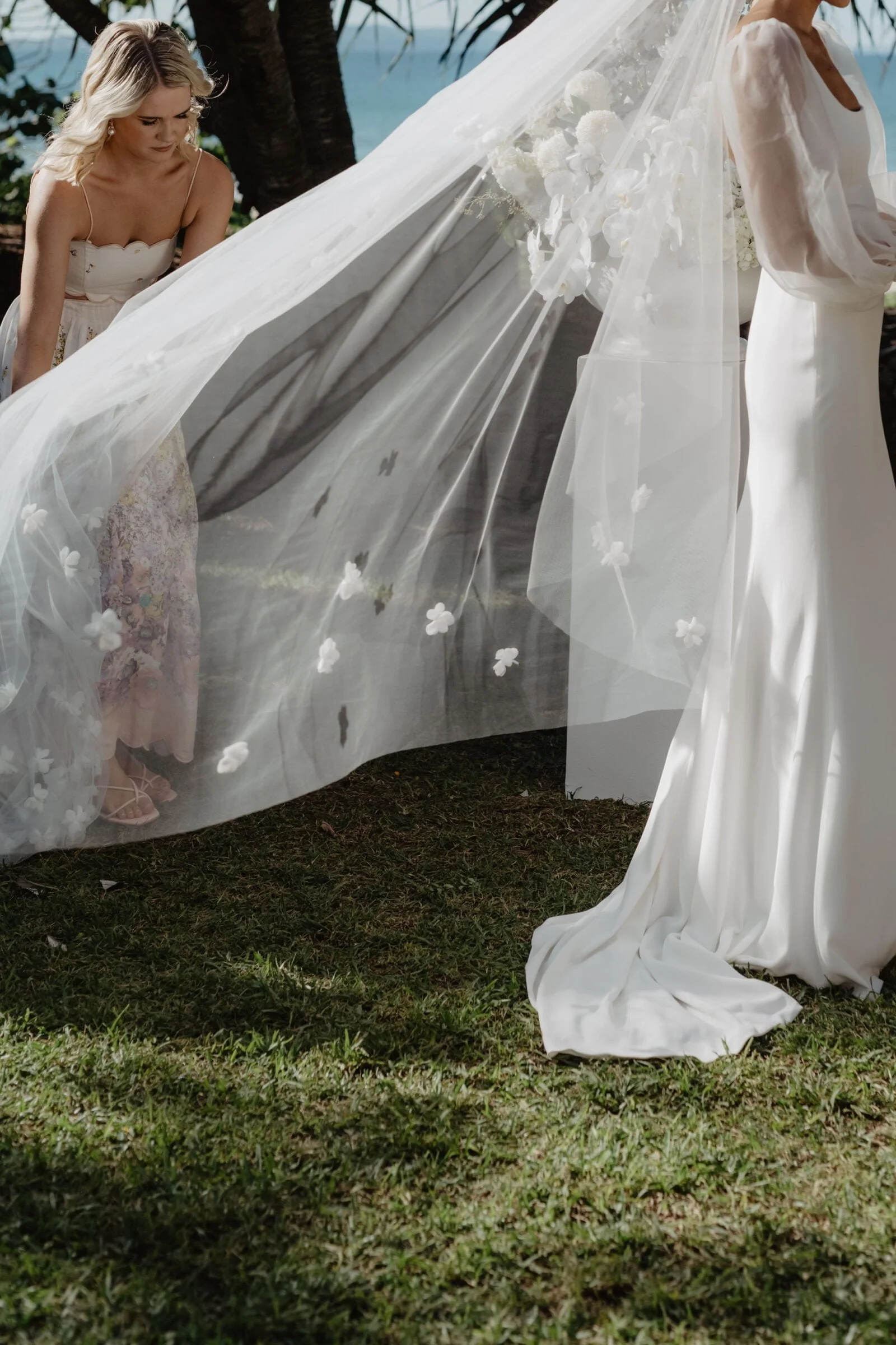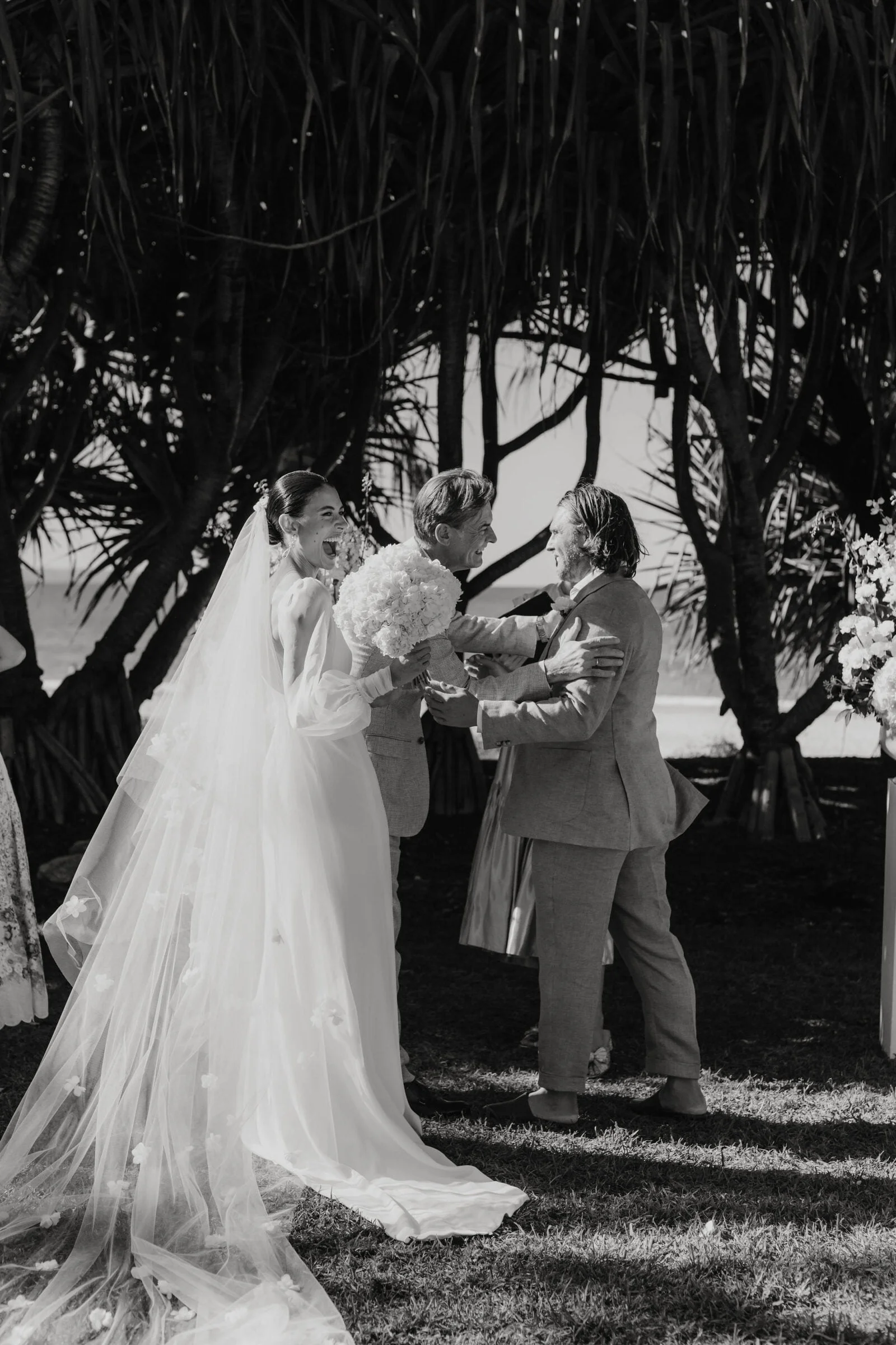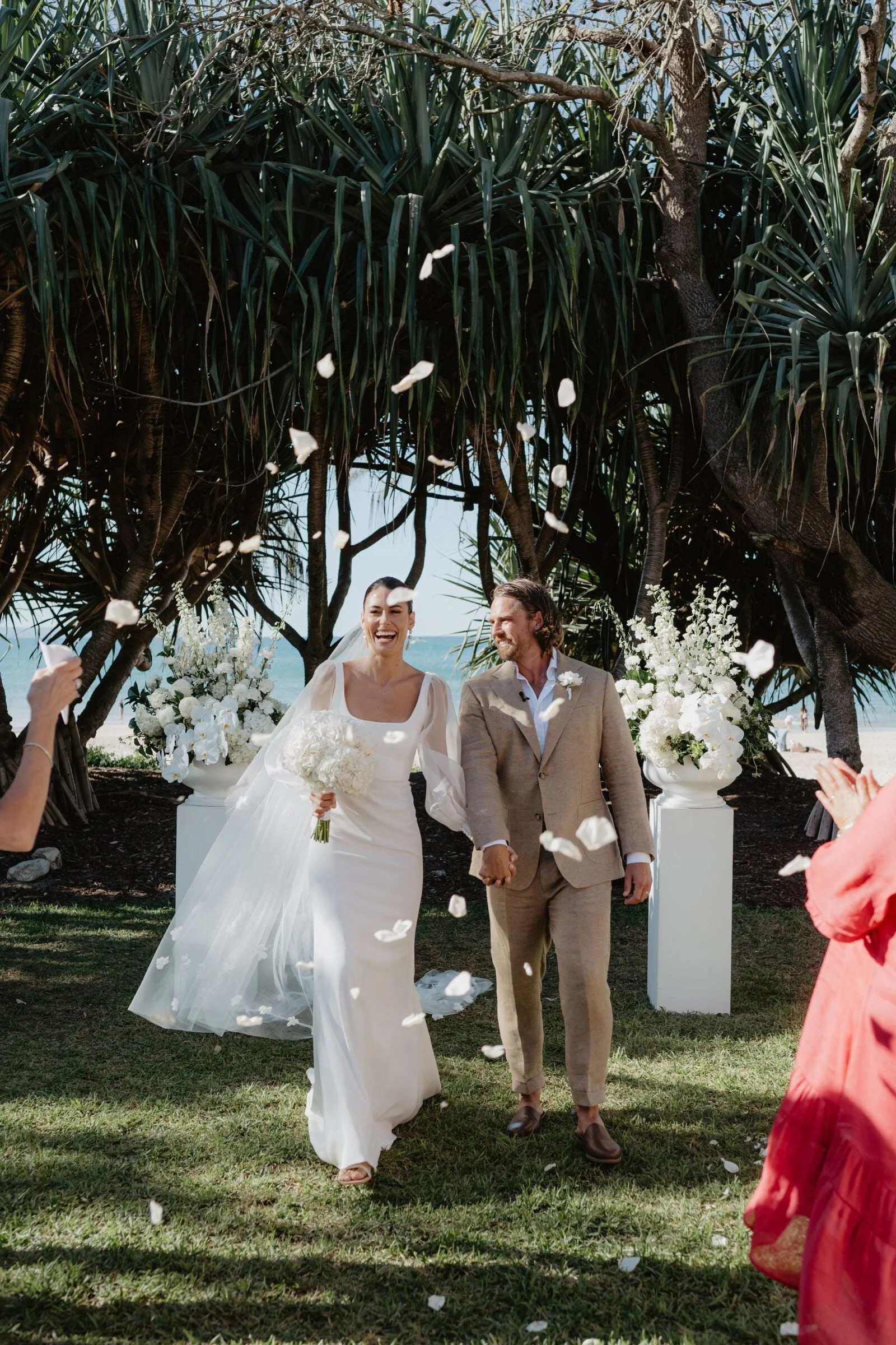 CONTRIBUTING VENDORS Photographer Taylor Kezia Photography Cinematographer Gurr Media Florist Mondo Floral Design Ceremony venue Maison La Plage Reception venue Land & Sea Cake Zoe Clark Cakes Hire Items & signage Splash Events Sound Hire & Entertainment Tony Velvet Likes To Party Celebrant Carly Slade Weddings Rings Natasha Schweitzer Transport Noosa Luxury Chauffeurs THE BRIDE Bridal gown & veil Greta Kate Shoes Wittner Shoes Accessories Christie Nicolaides Hair Amy Creten Makeup Alishia Babadimas Bridesmaid dresses Zimmermman Bridesmaid shoes Sol Sana THE GROOM Suit, shirt & groomsmen suits Institchu Shoes Aquilla