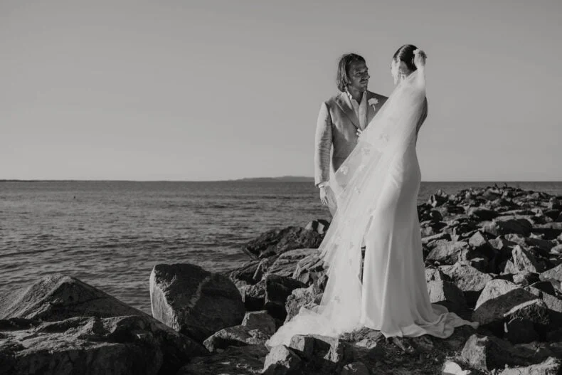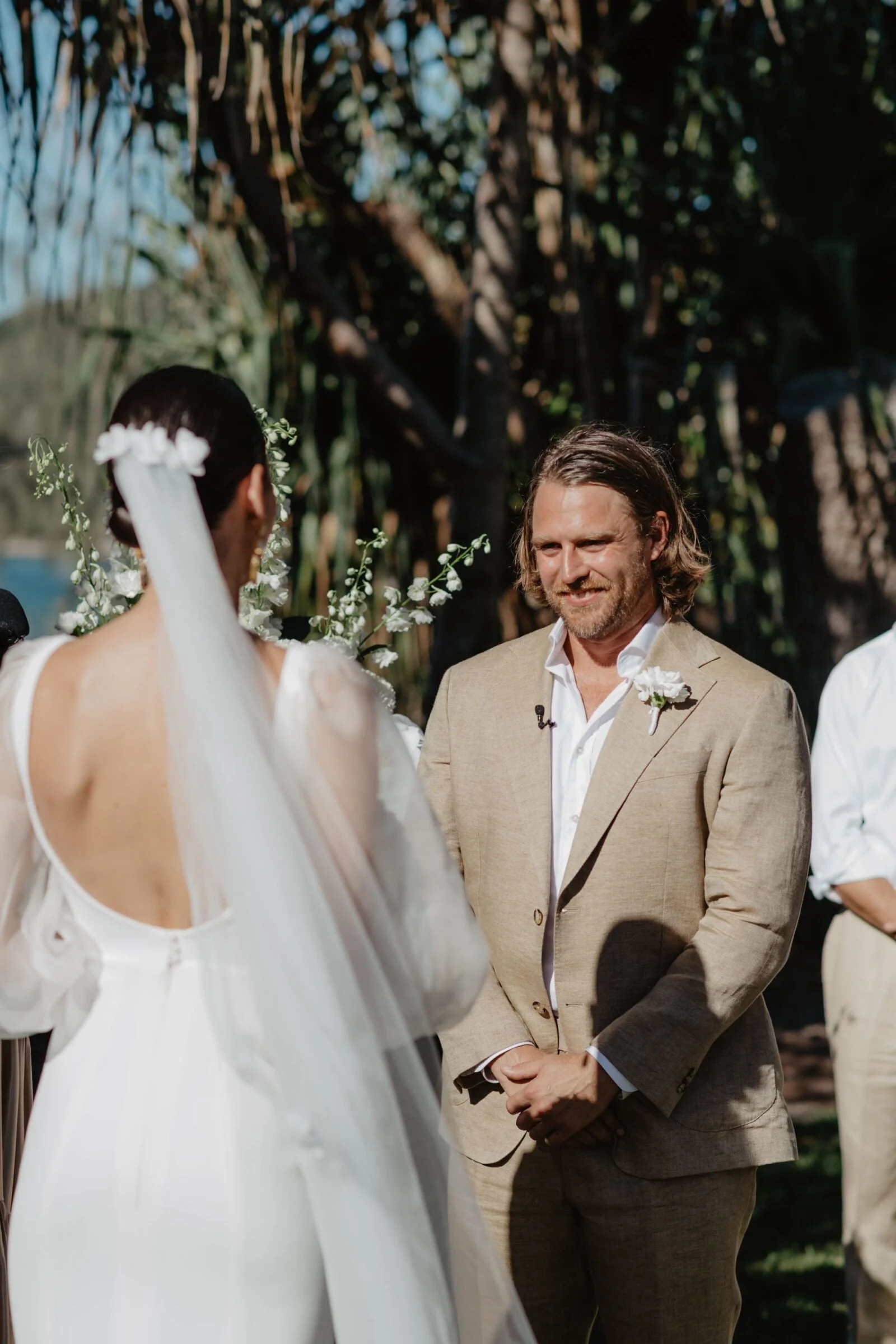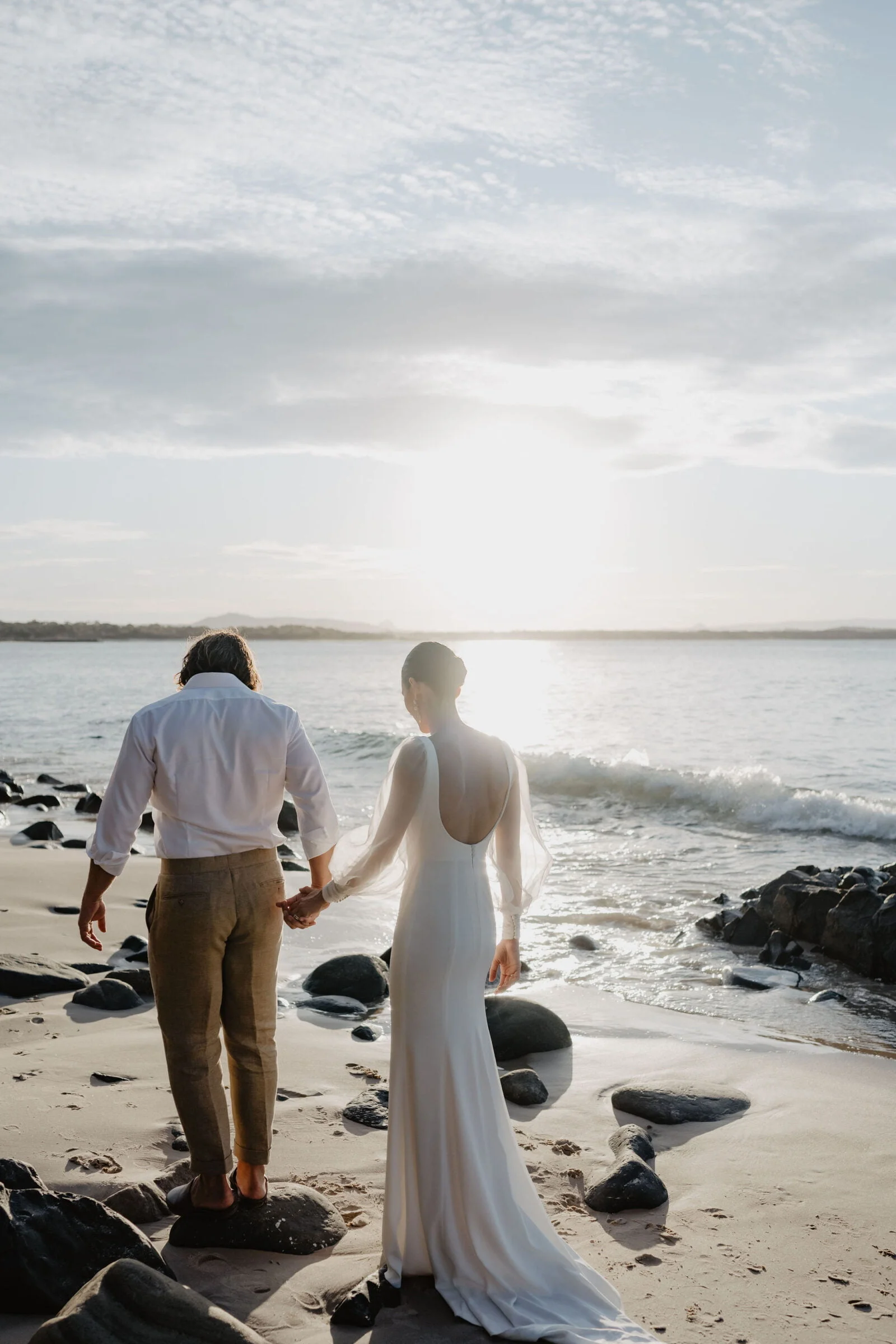 CONTRIBUTING VENDORS Photographer Taylor Kezia Photography Cinematographer Gurr Media Florist Mondo Floral Design Ceremony venue Maison La Plage Reception venue Land & Sea Cake Zoe Clark Cakes Hire Items & signage Splash Events Sound Hire & Entertainment Tony Velvet Likes To Party Celebrant Carly Slade Weddings Rings Natasha Schweitzer Transport Noosa Luxury Chauffeurs THE BRIDE Bridal gown & veil Greta Kate Shoes Wittner Shoes Accessories Christie Nicolaides Hair Amy Creten Makeup Alishia Babadimas Bridesmaid dresses Zimmermman Bridesmaid shoes Sol Sana THE GROOM Suit, shirt & groomsmen suits Institchu Shoes Aquilla