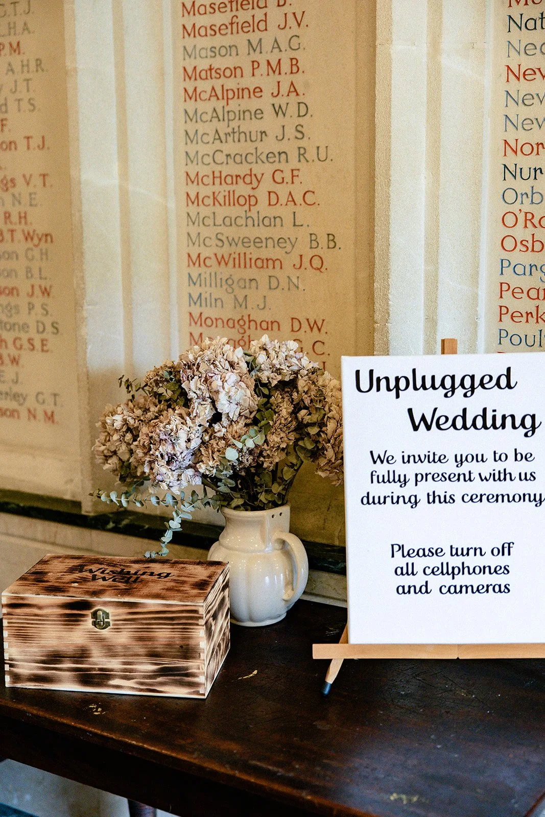 THE INSPO “We wanted to have a rustic, natural vibe to the wedding. We were thinking of lots of vines and wood, greens and browns. We knew we wanted dried flowers for the day, as this completed the rustic feel. We used A LOT of dried eucalyptus, that was locally sourced near us, as well as a fair amount of hessian in different places.”