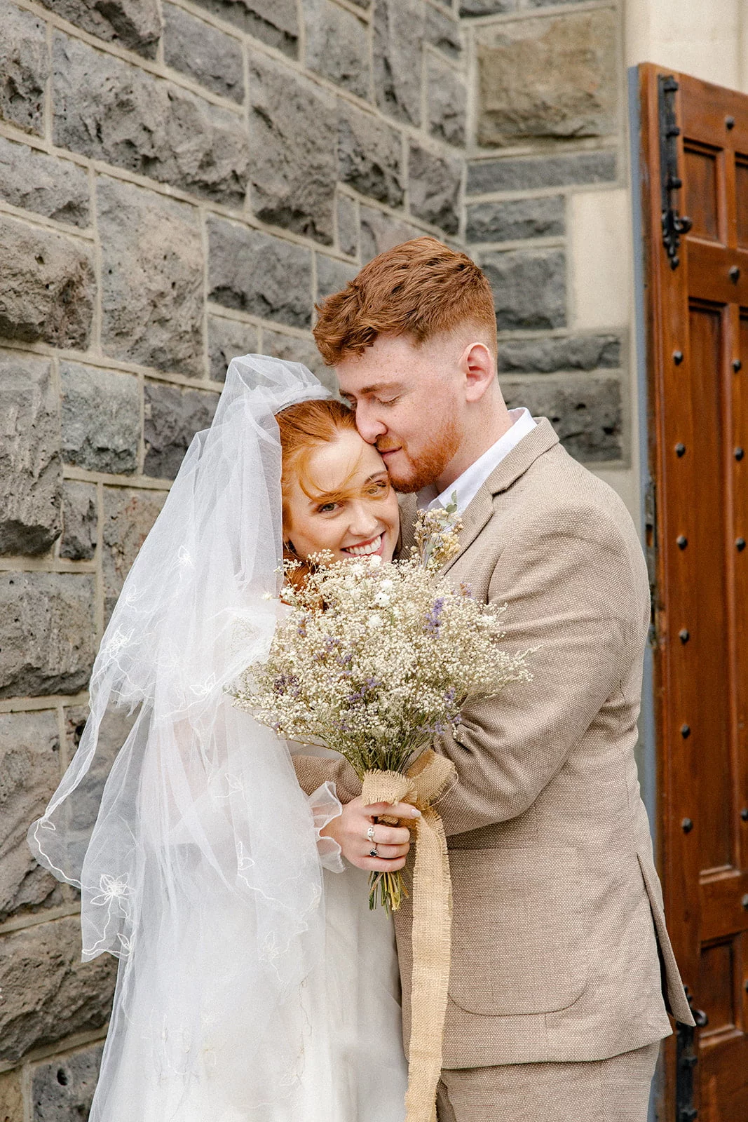 DIY DEETS “The flowers we chose for the day were all dried. My family and family friends dried a lot of beautiful flowers for us. We also got flowers from Riverstone Castle in Oamaru. The flowers were used for table decorations, signage, door decorations and of course the bouquets. My mum helped to create the vision we had for these, as well as helping me create the bouquets and Matt’s boutonniere. The last thing we used the flowers for was a huge flower and twig hoop that hung above the top table.”