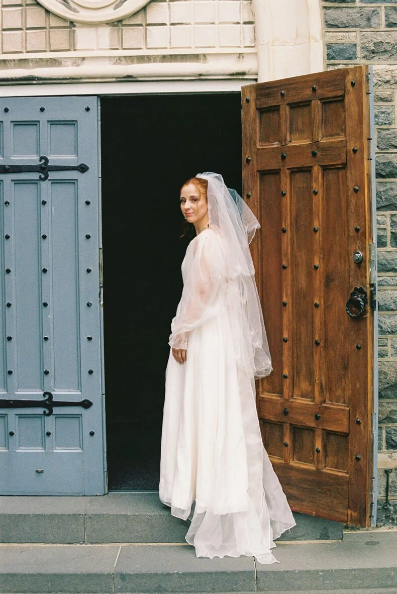 THE DRESS “My dress was designed and made by my mum. I knew I always wanted my dress to be made by her since I was a little girl. We went fabric hunting and got very lucky on the first try. Some of the fabric was also sourced online from Auckland. The dress took about six months to make, and was absolutely perfect on the day. The veil I wore was my mum’s from her wedding. We didn’t change anything about it and I wore it the same way she did.”