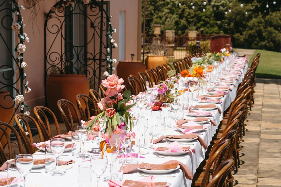 Meet today’s lovely couple, Charmaine and Brad, who brought fun Euro vibes to The Hunter Valley when they got hitched at a French provincial-style haven. And you guys… it’s pink. The venue is pink and we are loving on it hard!