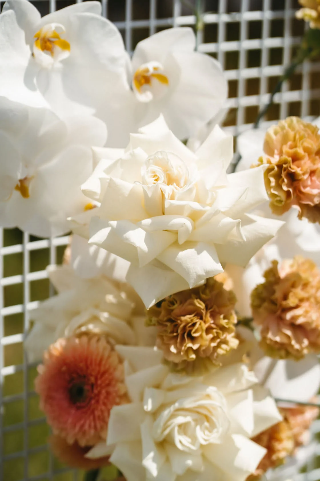 Inspiration for the day, says the bride, came from “Nadia Fairfax’s garden wedding. We had incredible colourful orchids, roses, gerberas and tulips in vases all across the table, decorated with oranges, lemons, pomegranates and tomatoes on the vine. Napkins, hand dyed, in alternating soft pink and caramel brown with terracotta-coloured menus on each plate and handwritten watercolour name tags.” What. A Dream.