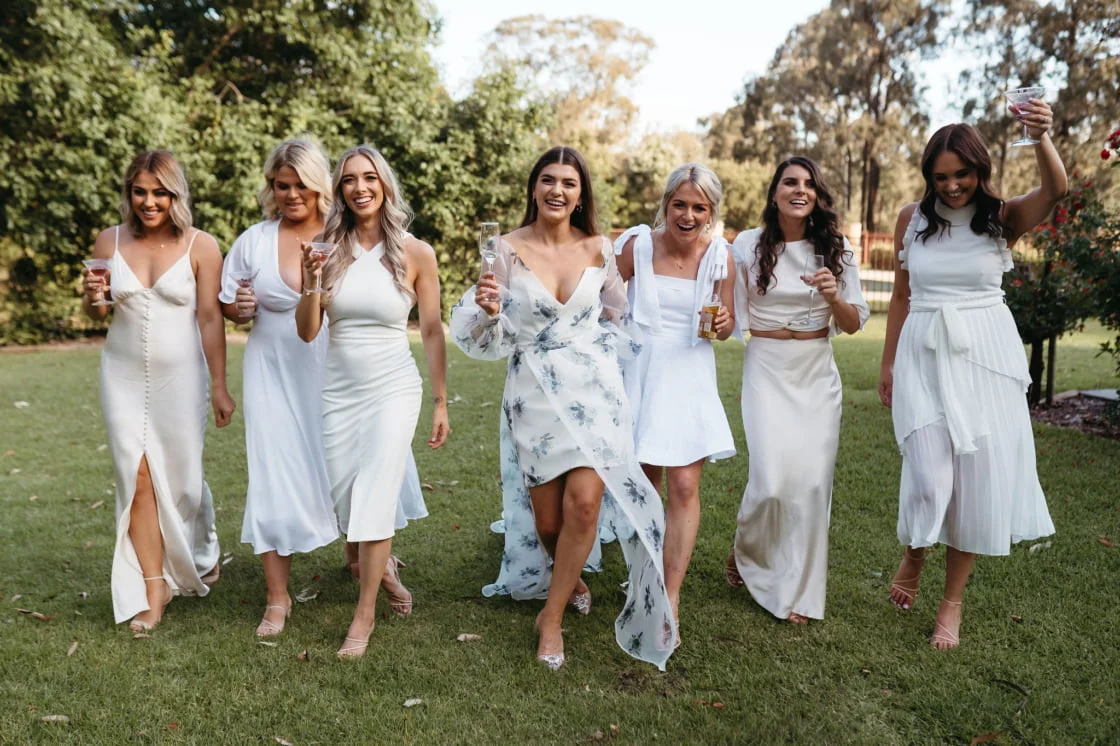 CONTRIBUTING VENDORS Photographer Brooke Art Studio Cinematographer MoreLife Films Event Planner Chameleon Directive Florist Holly Howe Stationery Formatte Design Studio (personalised name tags/menus), By Chloe Joy (place cards) Printer Genr8 Printing Ceremony & Reception Villa Provence Pokolbin Catering MEET, Sharp & Co. Caravan Bar The Roaming Eagle Cake Hunt and Graze Wedding favours Earp Distilling Co. (limoncello shots) Hire Items & Lighting Hire Beavis Entertainment & Sound Hire Komiti Duo Signage Ink & Snow Celebrant Hungry Hearts Co. Rings a. THE BRIDE Gown & Veil Saving Grace by Ashleigh Marie Shoes Billini Bangle a. Hair Mane.By Justine Makeup Lily Hampton Makeup Artist Bridesmaid dresses Shona Joy, Bec & Bridge, Rat & Boa Bridesmaid shoes Billini THE GROOM Suit & Shirt Peter Jackson Shoes R.M. Williams Watch Tommy Hilfiger Groomsmen suits Peter Jackson