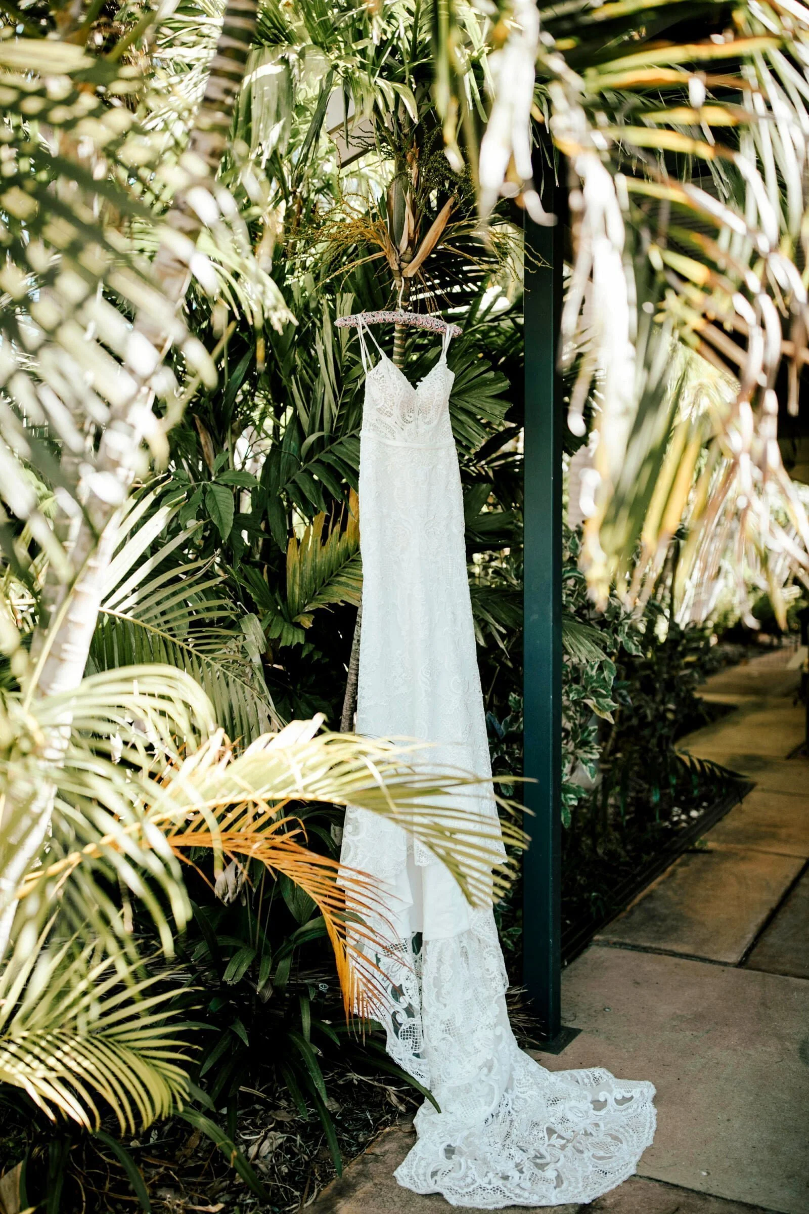 THE DRESS “As Broome is remote, I met friends and family in different cities to find my dress, ultimately deciding on one from a Queensland designer. My dress was ‘Ella’ by Made With Love Bridal. Ella is worth her weight in gold – for the stunning lace and a show stopper train!”