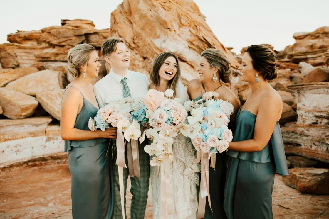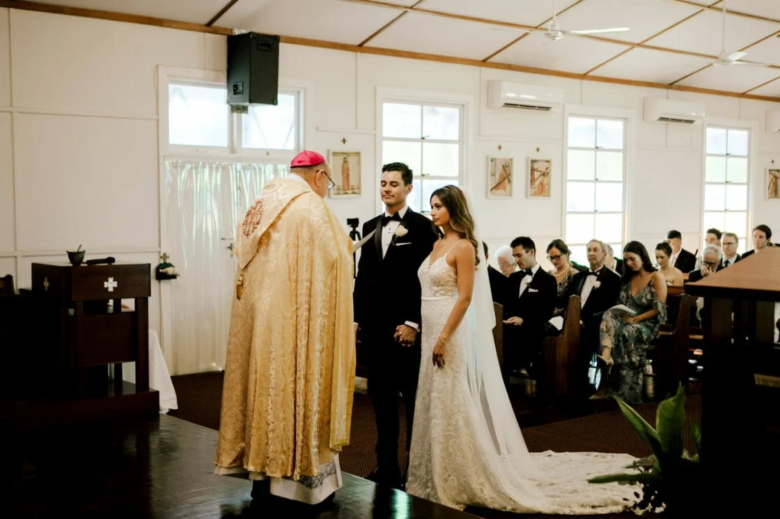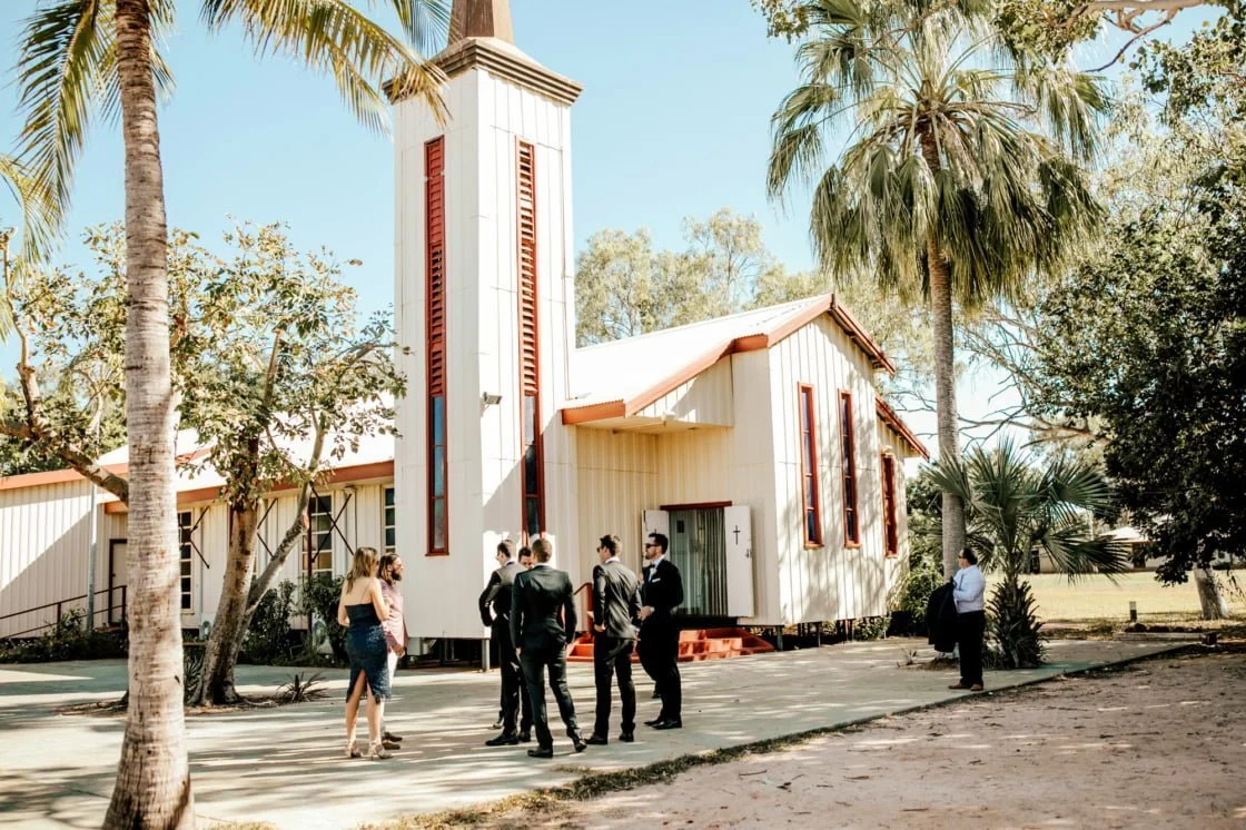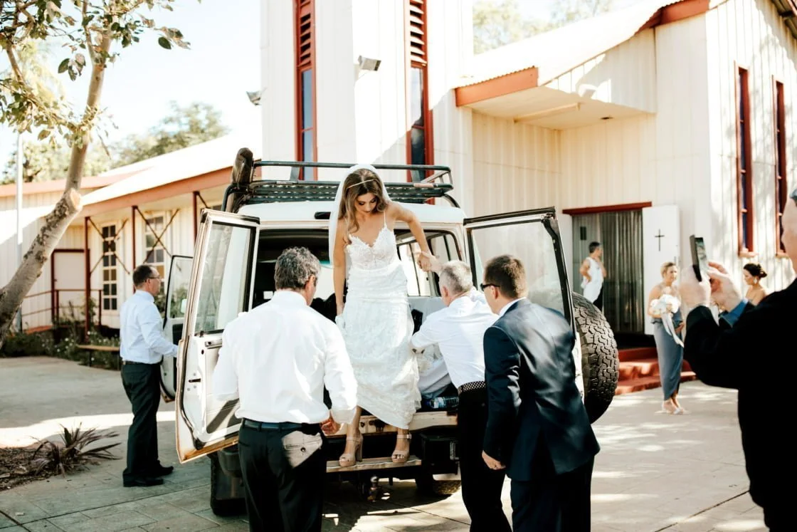 CONTRIBUTING VENDORS Photographer Madeline Kate Photography Cinematographer Anchored Cinema Florist Lecocoarchie Ceremony Broome Cathedral – Our Lady Queen of Peace Reception & Catering Mangrove Hotel Cake Little Cake Hire Items & Lighting A Plus Events Neon Sign Neon Republic Entertainment Chris Murphy, Notch 8 Entertainment Bishop Christopher Saunders Rings Fidges Fine Jewellery THE BRIDE Bridal Gown & Veil Made With Love Bridal Hair Piece Viktoria Novak Jacket Mode & Affaire Robes Homebodii Shoes Mollini Hair Lauren Rose Hair Design Makeup Bonnie Louise Styling Bridesmaid Dresses Shona Joy Bridesmaid Suit Sportscraft Bridesmaid Shoes ALDO THE GROOM Suit Peter Jackson Cufflinks Vintage Shoes RM Williams Barber Chahoya Spa & Salon Groomsmen Suits Jack London.