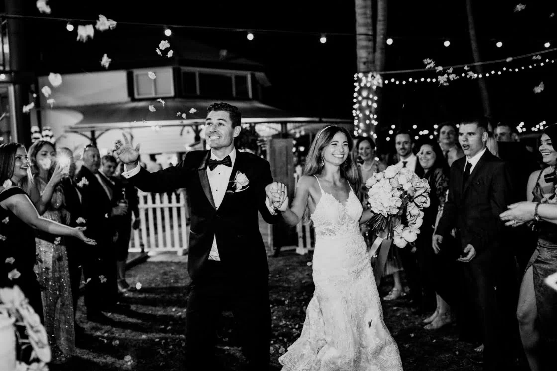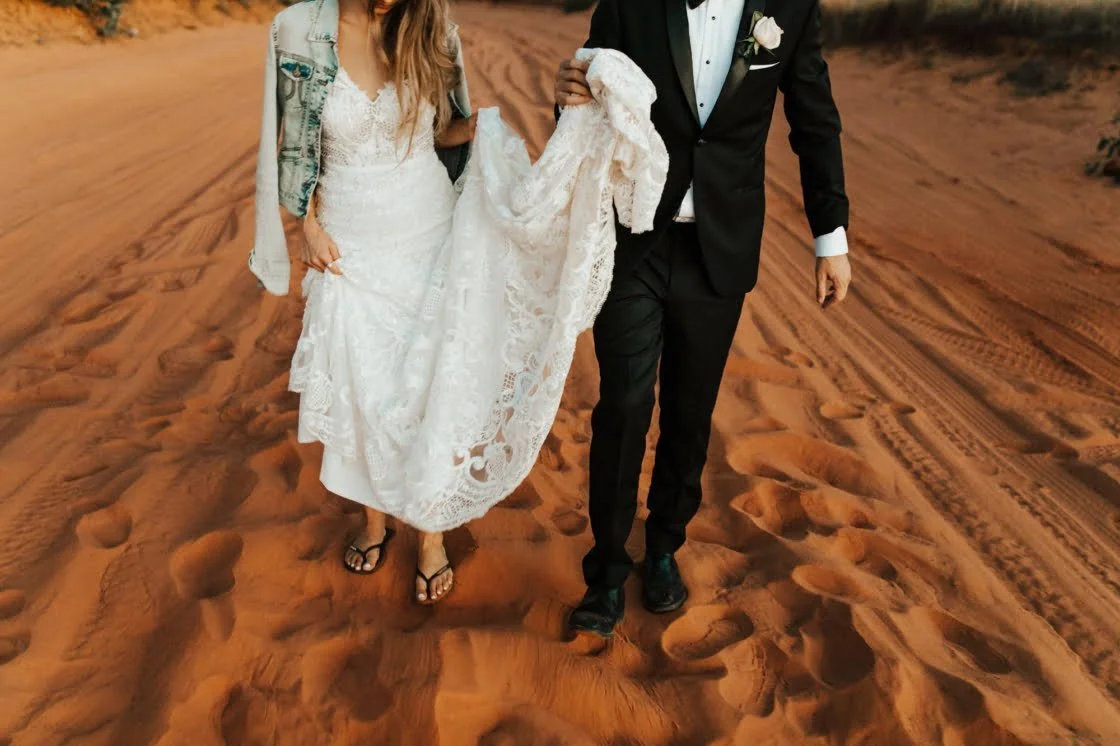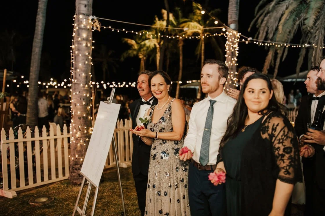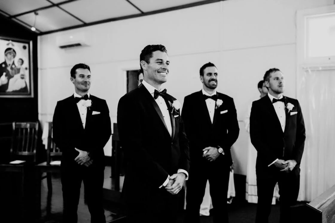 CONTRIBUTING VENDORS Photographer Madeline Kate Photography Cinematographer Anchored Cinema Florist Lecocoarchie Ceremony Broome Cathedral – Our Lady Queen of Peace Reception & Catering Mangrove Hotel Cake Little Cake Hire Items & Lighting A Plus Events Neon Sign Neon Republic Entertainment Chris Murphy, Notch 8 Entertainment Bishop Christopher Saunders Rings Fidges Fine Jewellery THE BRIDE Bridal Gown & Veil Made With Love Bridal Hair Piece Viktoria Novak Jacket Mode & Affaire Robes Homebodii Shoes Mollini Hair Lauren Rose Hair Design Makeup Bonnie Louise Styling Bridesmaid Dresses Shona Joy Bridesmaid Suit Sportscraft Bridesmaid Shoes ALDO THE GROOM Suit Peter Jackson Cufflinks Vintage Shoes RM Williams Barber Chahoya Spa & Salon Groomsmen Suits Jack London.