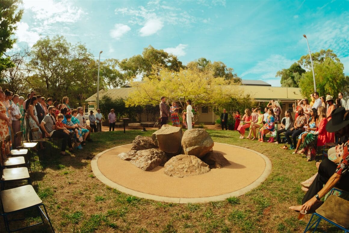 “We are not at all religious, but there were a few meaningful incorporations that we felt were important. Obviously, an acknowledgement of country was first and foremost, but another important touch was to invite anyone in the crowd to take off their shoes and socks and feel the ground beneath their feet. Connect with the earth so that they could connect with each other. This was entirely optional, but for Tom, this helped to centre himself and bring him to the moment.”
