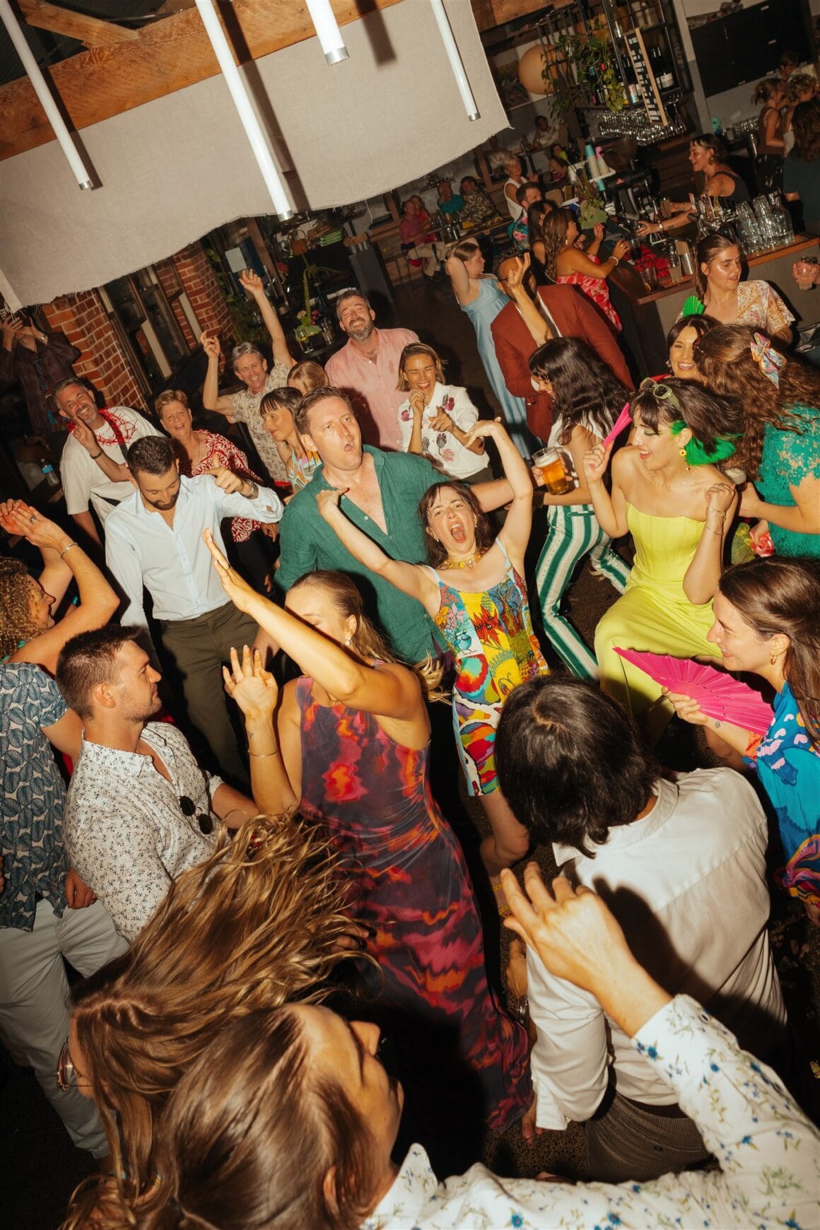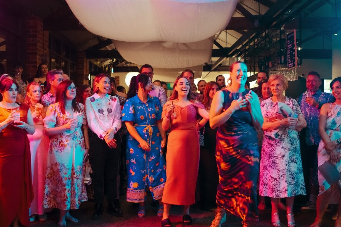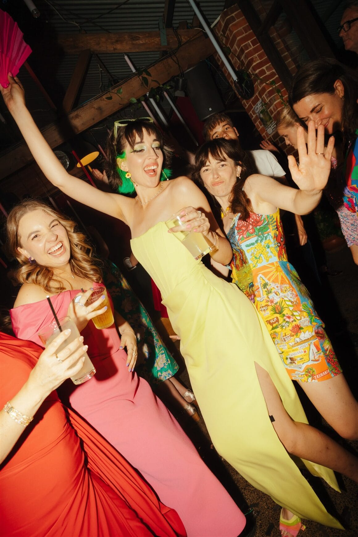 Chloe and Tom, who first locked eyes in a Sydney karaoke room, really know how to think outside the box. It’s why we’re OBSESSED with their quirky Canberra nuptials. Guests dressed in their finest ‘fresh and juicy’ attire to see their union at Bicentennial Square. The groom had always dreamt of wearing something from Joe Bananas, and his own wedding seemed “like a good time to splash out”. Meanwhile, our bride wore Van Der Kooij for the formalities before switching into a fun party frock that she actually made herself using an “eclectic collection” of secondhand textiles.