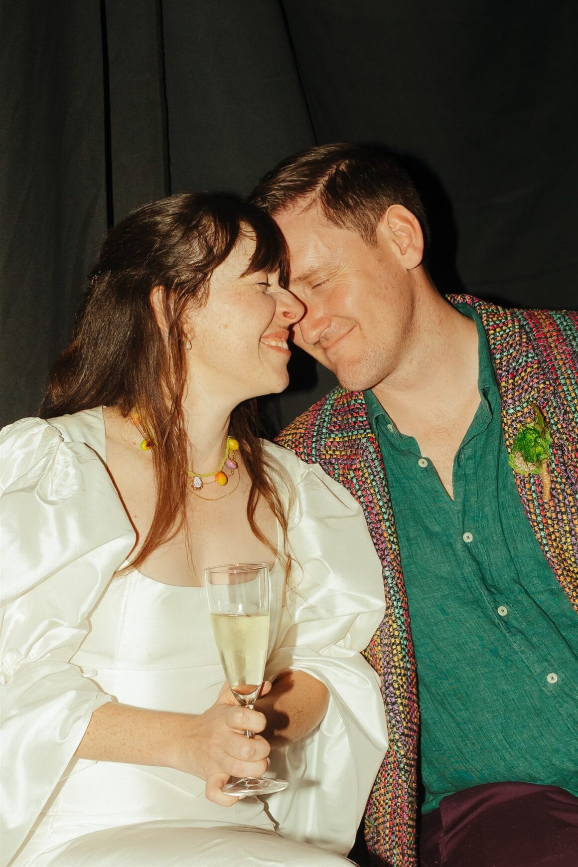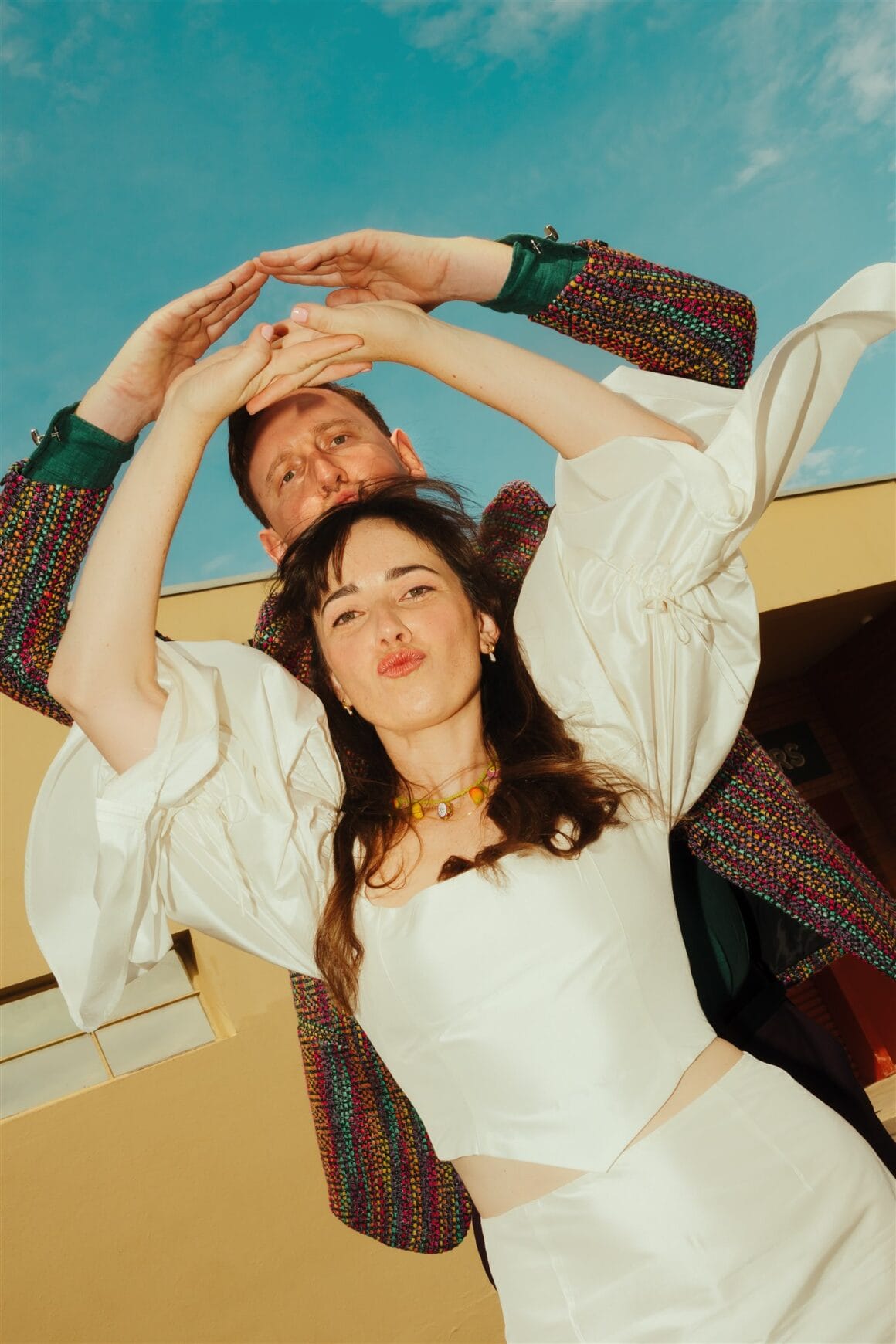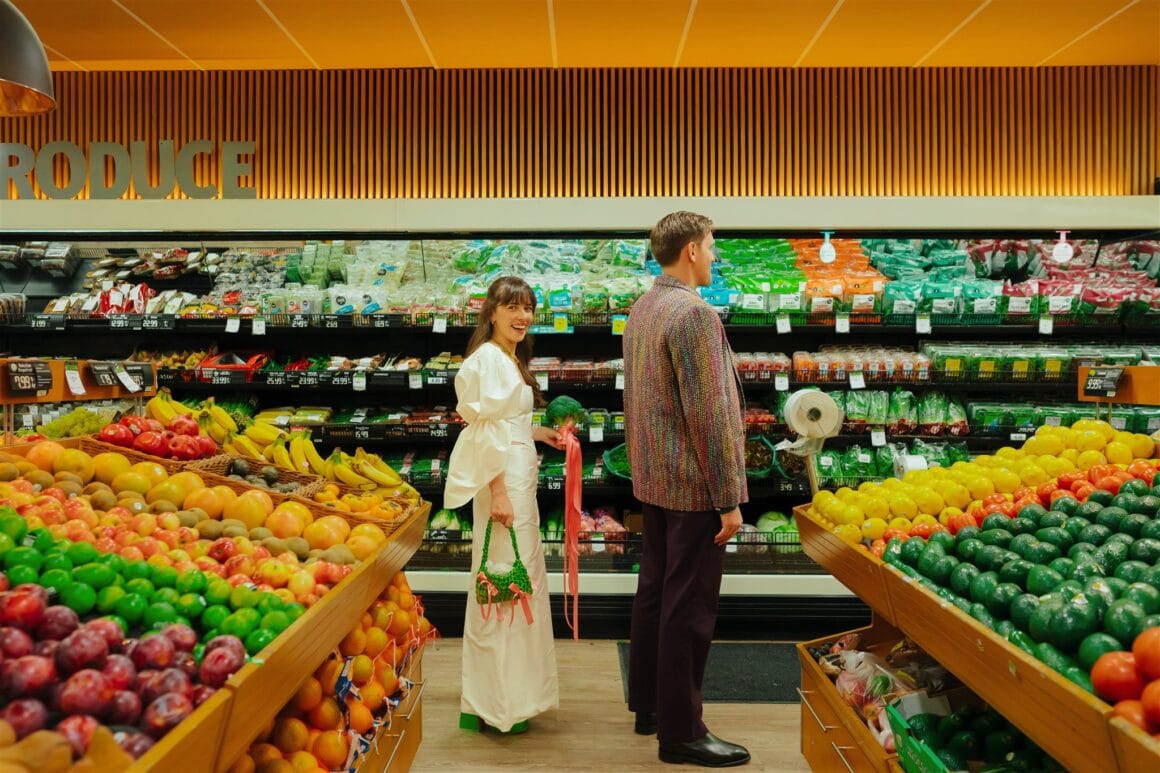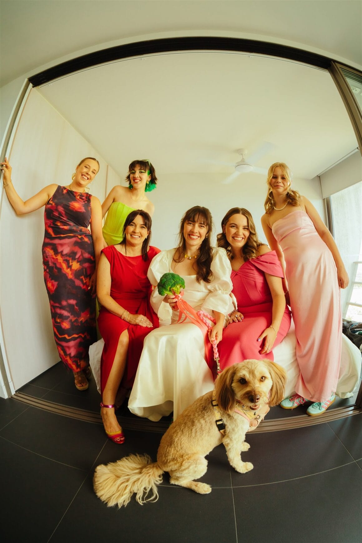 Chloe and Tom, who first locked eyes in a Sydney karaoke room, really know how to think outside the box. It’s why we’re OBSESSED with their quirky Canberra nuptials. Guests dressed in their finest ‘fresh and juicy’ attire to see their union at Bicentennial Square. The groom had always dreamt of wearing something from Joe Bananas, and his own wedding seemed “like a good time to splash out”. Meanwhile, our bride wore Van Der Kooij for the formalities before switching into a fun party frock that she actually made herself using an “eclectic collection” of secondhand textiles.