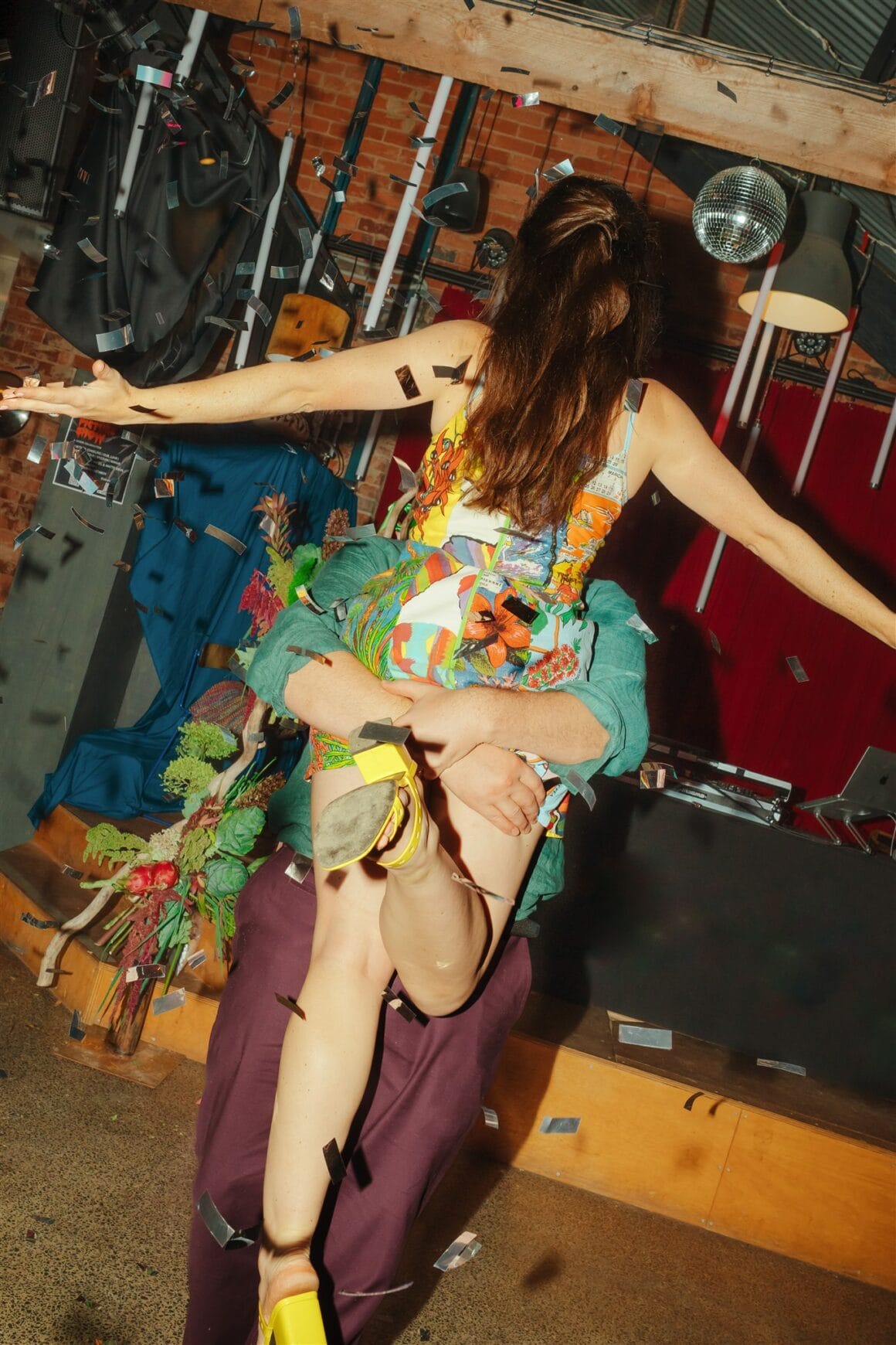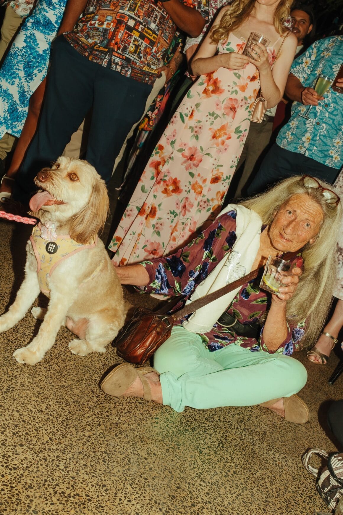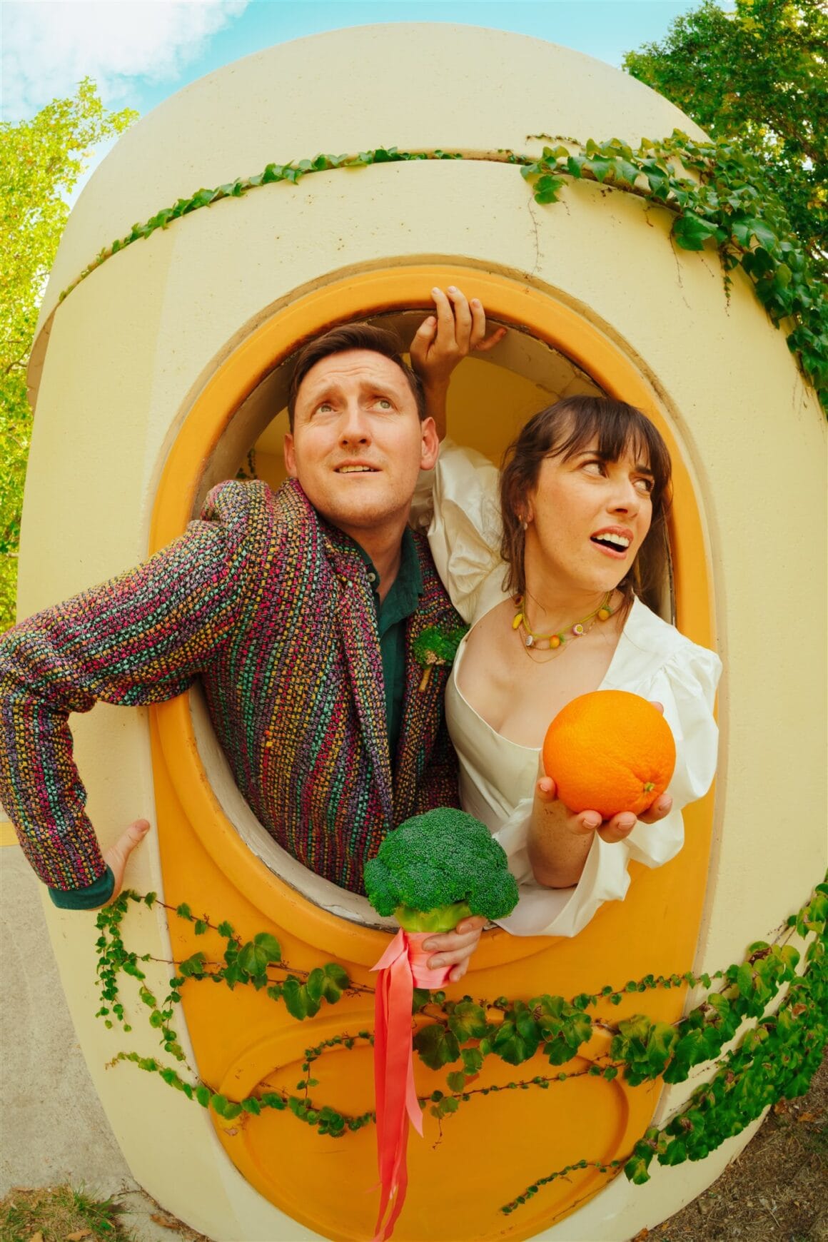 “The first night that we met in Sydney, the karaoke crew, including Chloe, came back to my house for a nightcap and a chat. It was there that I showed Chloe the odd assortment of vegetables growing in the small courtyard. I proudly displayed herbs, chillies, some carrots grown in a toaster, and a solitary broccoli named Peter Broc. We devoured poor Peter raw and, from that day, fresh fruits and vegetables became a theme of our relationship. When the topic of a dress code or theme came around, we weren’t happy with the idea of just “black tie” or “cocktail”; it all felt too restrictive. So we came upon a more artistic concept – a theme that would allow everyone to wear what they wanted, express themselves, be unfettered, and bring the colour and vibrancy that we wanted to see on the day. ‘Fresh and juicy!’ (The crowd sure did not disappoint on the day, and we loved how it was interpreted.”