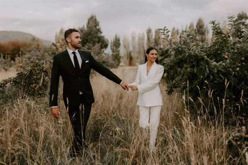 It’s our favourite time of the week – Throwback Thursday, and this magical wedding in Tassie is a highlight from our archives. After an early morning proposal on a private beach in Tassie while on holiday, Chloe and Will decided there was no other spot to tie the knot. “We had a soft spot for Tasmania as we had the most amazing holiday and proposal there and we wanted all of our family and friends to experience what we felt when we visited.” Valley Field New Norfolk was their pick of venues. “The location is absolutely amazing and a not-so-typical wedding venue, which I loved,” says the bride. “It offered everything from beautiful gardens with fruit trees to an old sand stone coach house.”