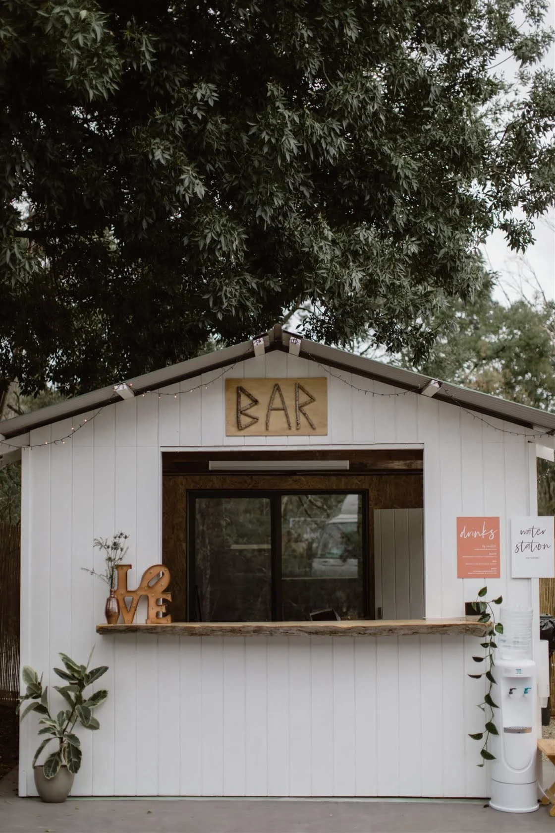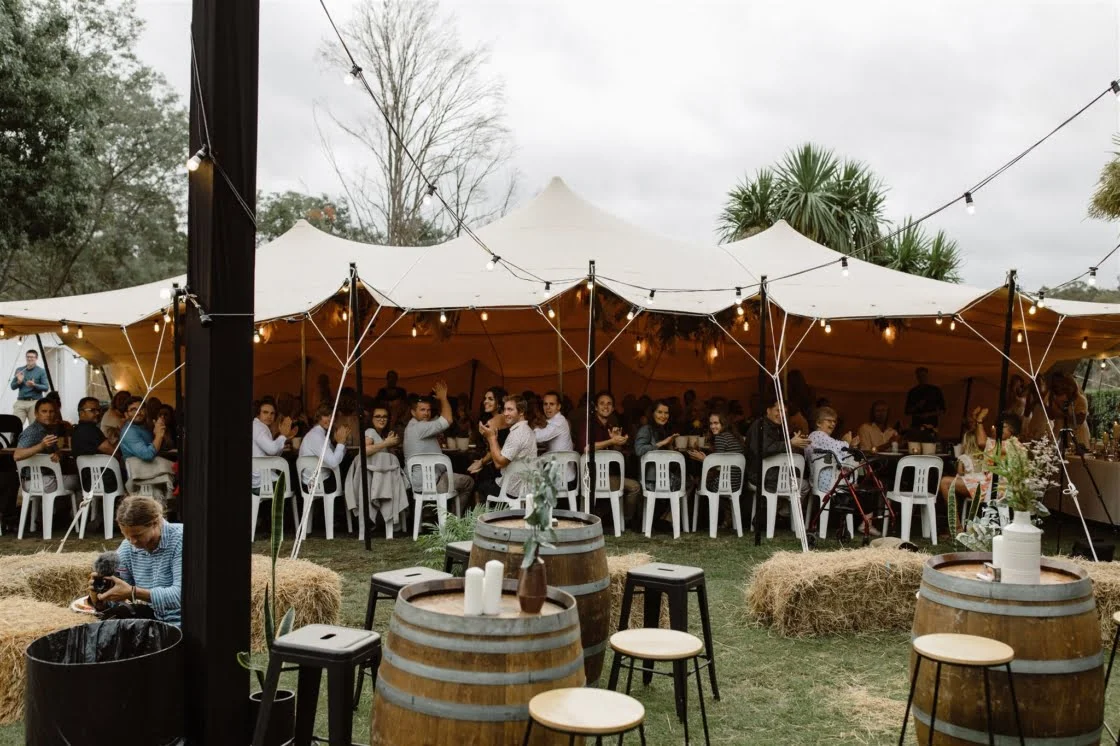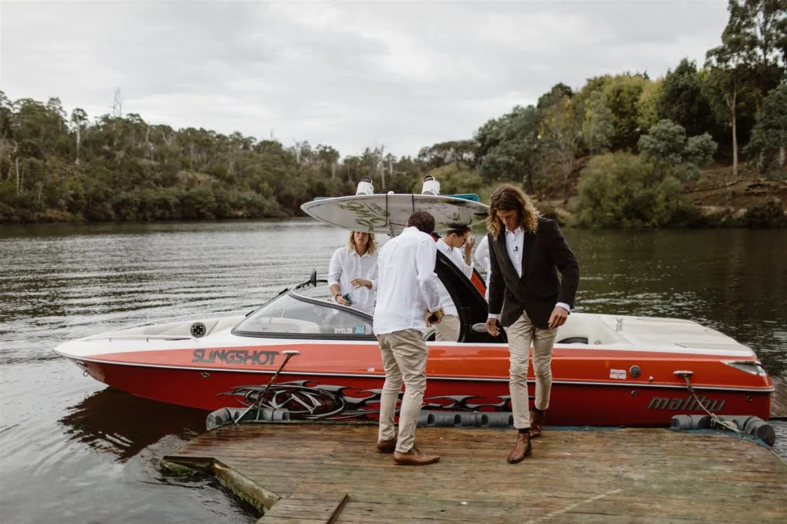 DIY “Our biggest achievement was restoring Claire’s parent’s old run-down shed into a bar. I said that it would be a weekend job but it ended up taking a couple! Other things were the invitations, signage, timber discs I’d made from some huon pine, name cards and huon pine timber holders. We also used my vintage surfboard as a guest book that everyone signed.”