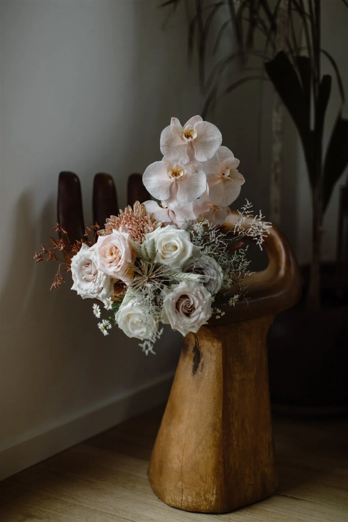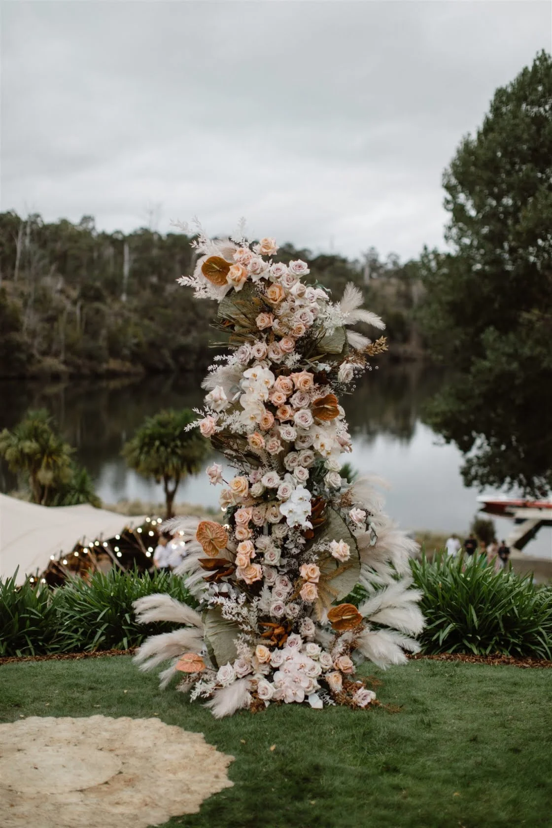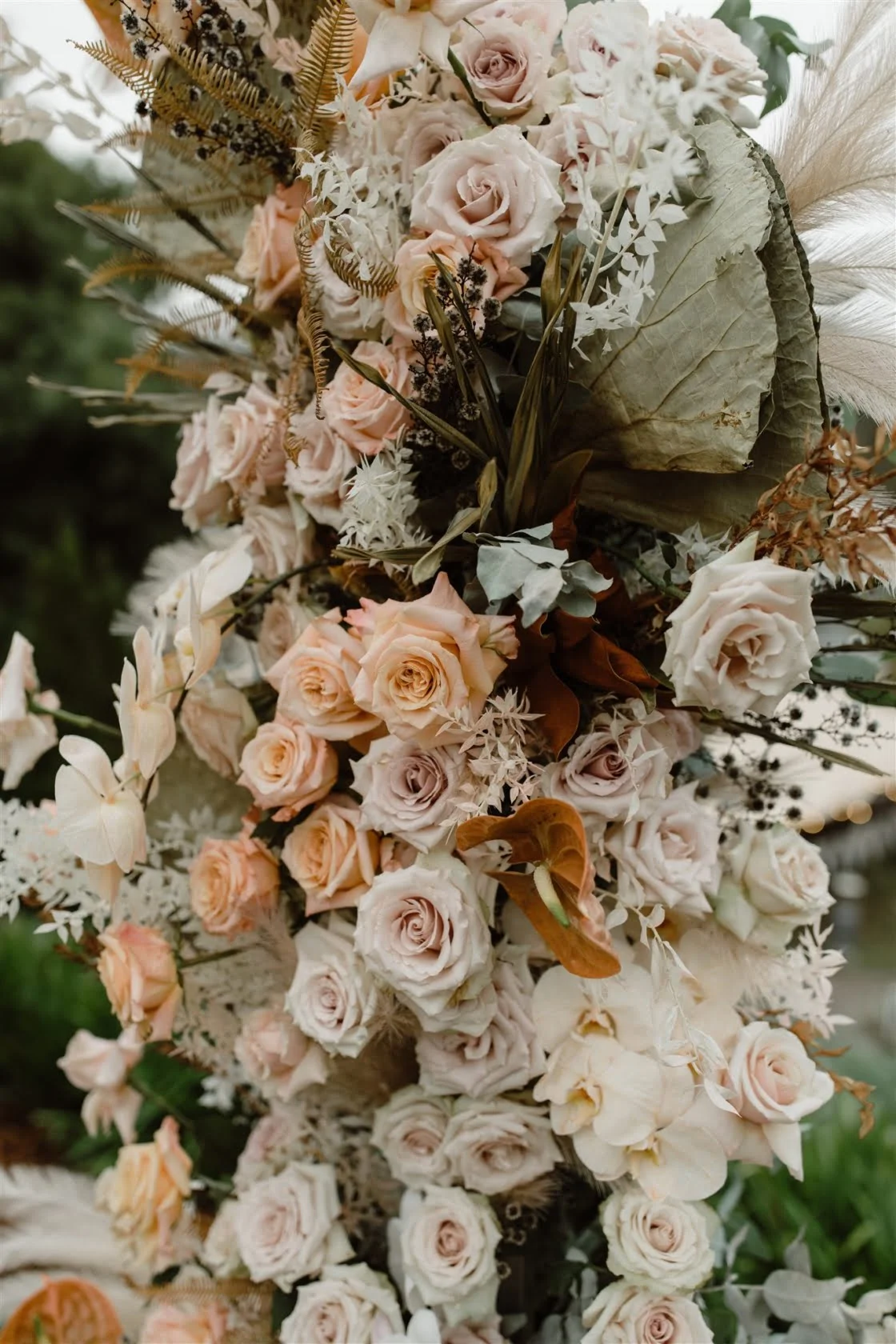 WE’RE GLAD WE “Last minute I decided I wanted a centrepiece for the altar made out of dried flowers. We were just going to gather some of our favourite house plants, but a couple of weeks out we got Event Avenue to design something up and it ended up being one of our favourite decorations in the entire wedding! Plus, it made the perfect backdrop for the family photos. I think it’s all about choosing to spend your cash in important places, not things that will just go unnoticed.”