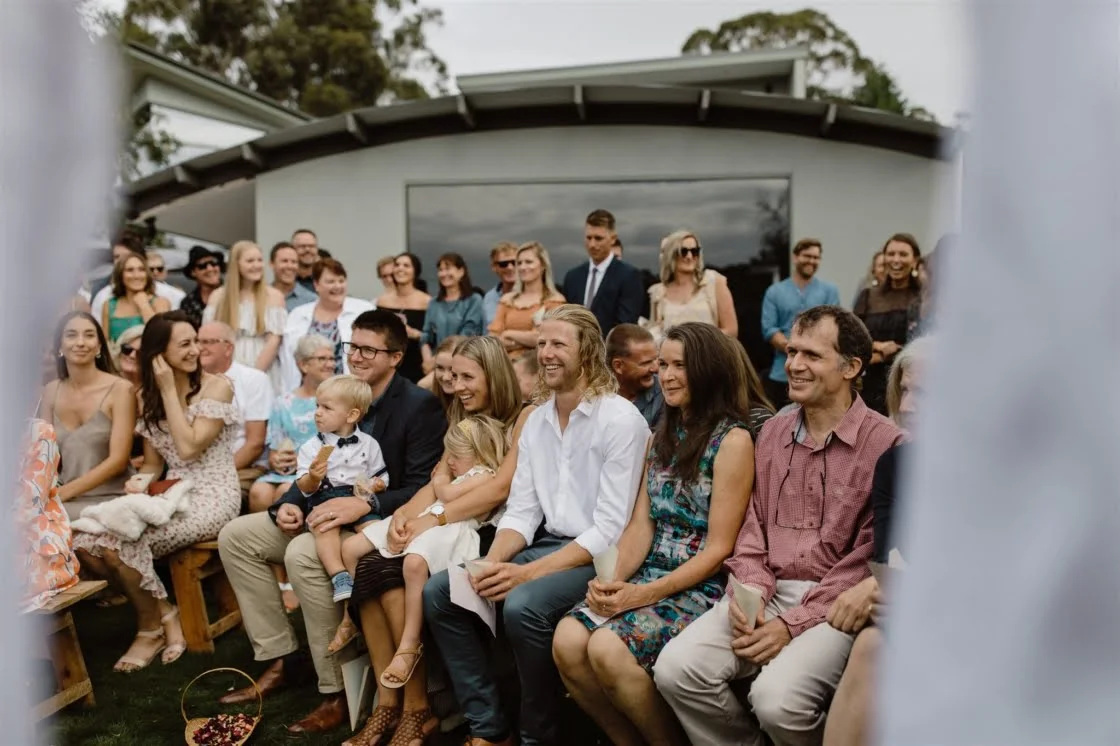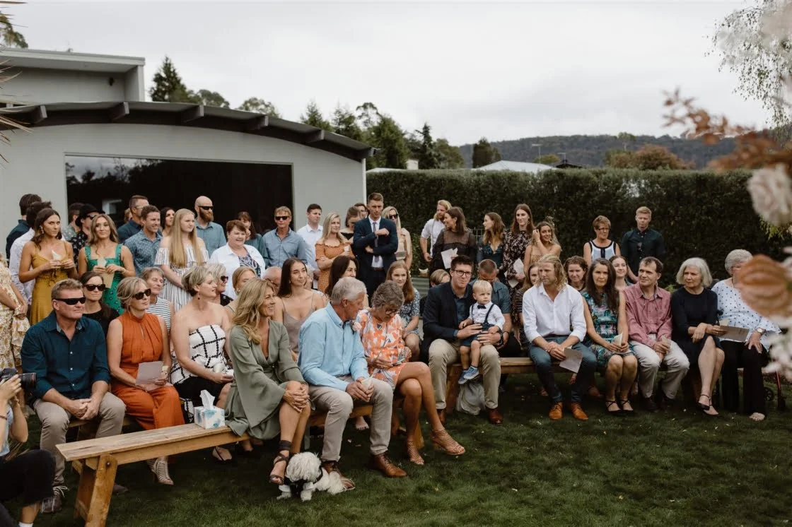 For this super-chilled couple marriage means, “Sharing everything! Your bed, every meal, your life… even thoughts! It can get weird.” Despite the impending weirdness, Claire and Aidan decided to tie the knot in the backyard of Claire’s family home. Naturally, this resulted in a great deal of input from the fam including the outrageous suggestion that guests rock up with their own chairs. Utilising their respective skills as designer and carpenter, the duo pulled off a heap of DIY, crafting their dream day in just four months. Travelling wedding photographer Vladan Gajic was in attendance snapping away. Peep his stunning, authentic captures with a simple scroll…