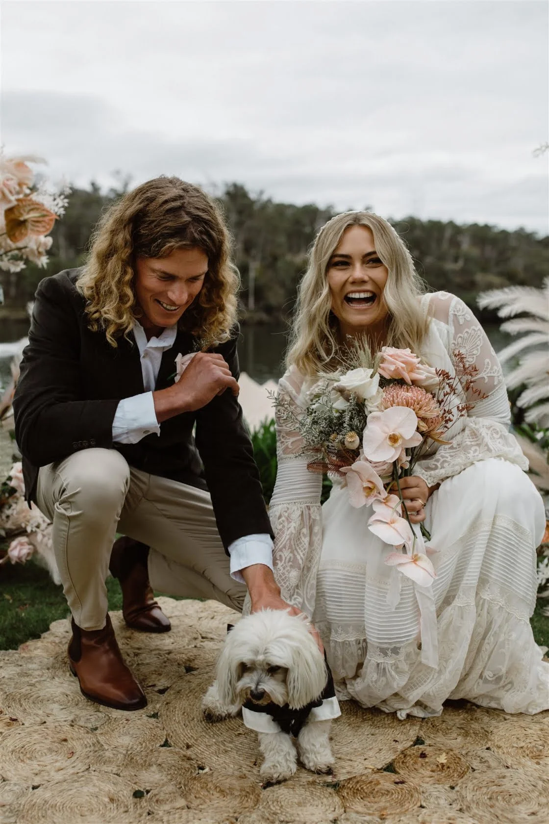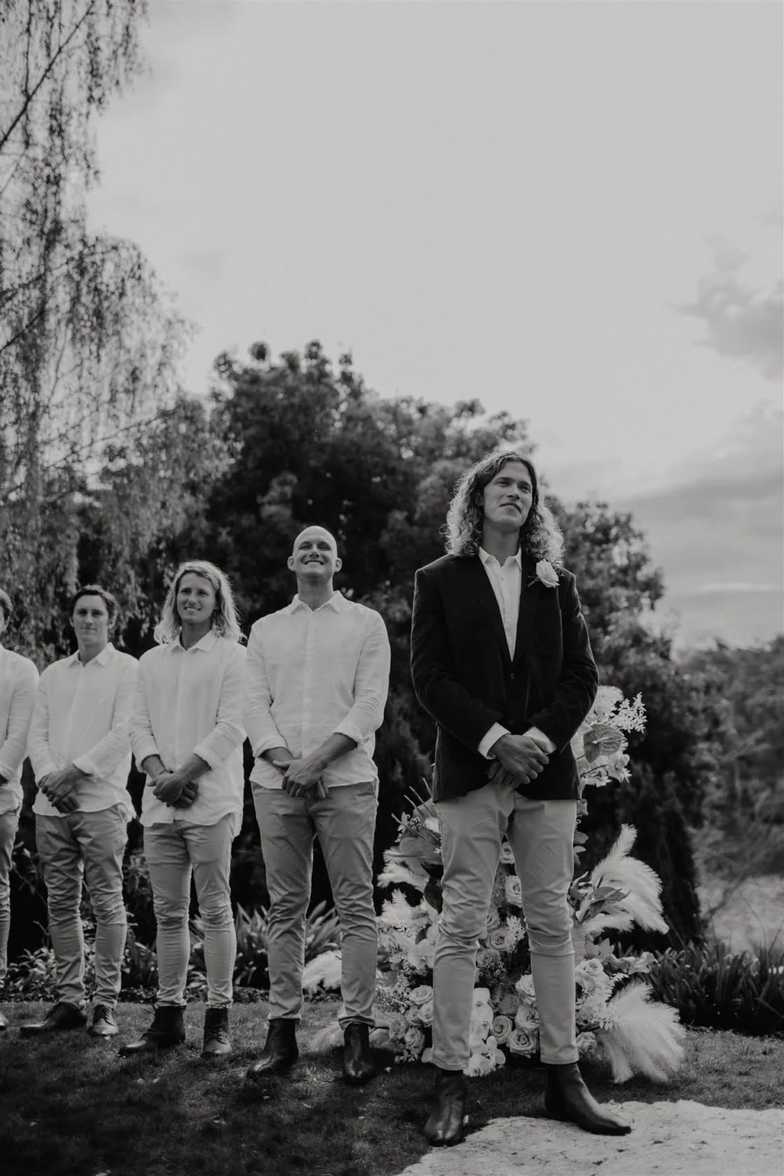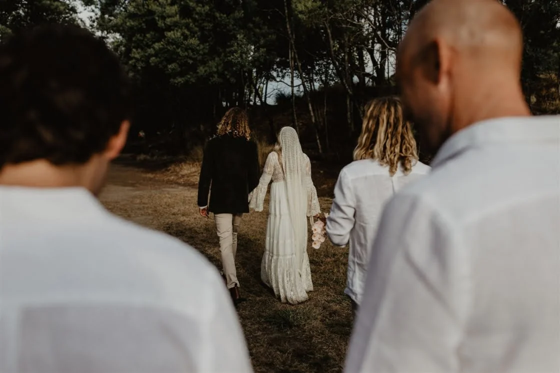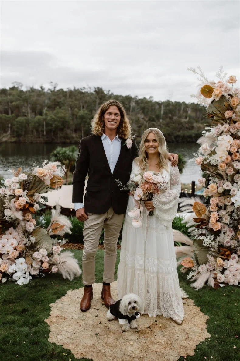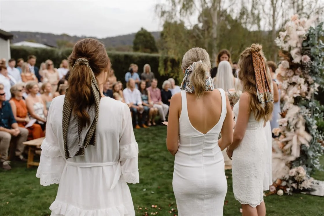 CONTRIBUTING VENDORS Photographer Vladan Gajic Photography Cinematographer Tidal Visuals Florist Murphy Bloom Stationery & Signage Studio Claire (bride) Paper Feather & Stone Venue Private Property Catering The Wild Kitchen by Sarah Glover, Amazing Grazing Marquee, Arbour Frame & Lighting Event Avenue Seating Ash + Brad Bespoke (ceremony) Entertainment Taylor Yates Celebrant Bronwyn Salter Rings Claudia Jewellers BRIDE Dress Spell & The Gypsy Collective Veil Sally Lowe Loungewear Piyama Shoes Tony Bianco Earrings Bo & Luca Hair Kate Letter Hair Makeup Adele Beechey Beauty Bridesmaid Shoes Lipstik Shoes GROOM Jacket Gazman Shirt Assembly Label Pants Industrie Shoes Slatters Groomsmen Shirts Assembly Label Groomsmen Pants Industrie