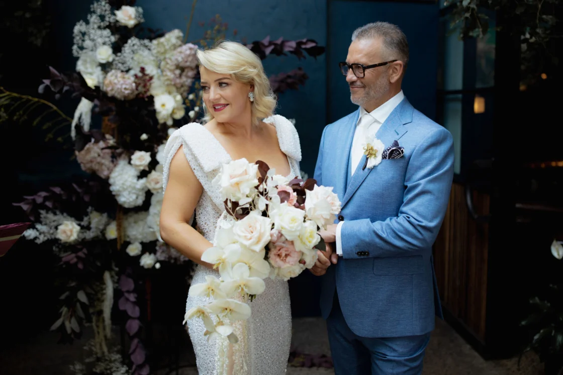 STANDOUT VENDORS “Pomp & Splendour were sensational. I gave them a colour palette as a guide and said I would love to see something ethereal, sculptural and suspended. They delivered beyond my expectations – true floral artists. Also, Chantelle Baker – she is such a delight and an amazing make up artist. I didn’t have a make up trial, we had a conversation on the phone and [just] delivered.”