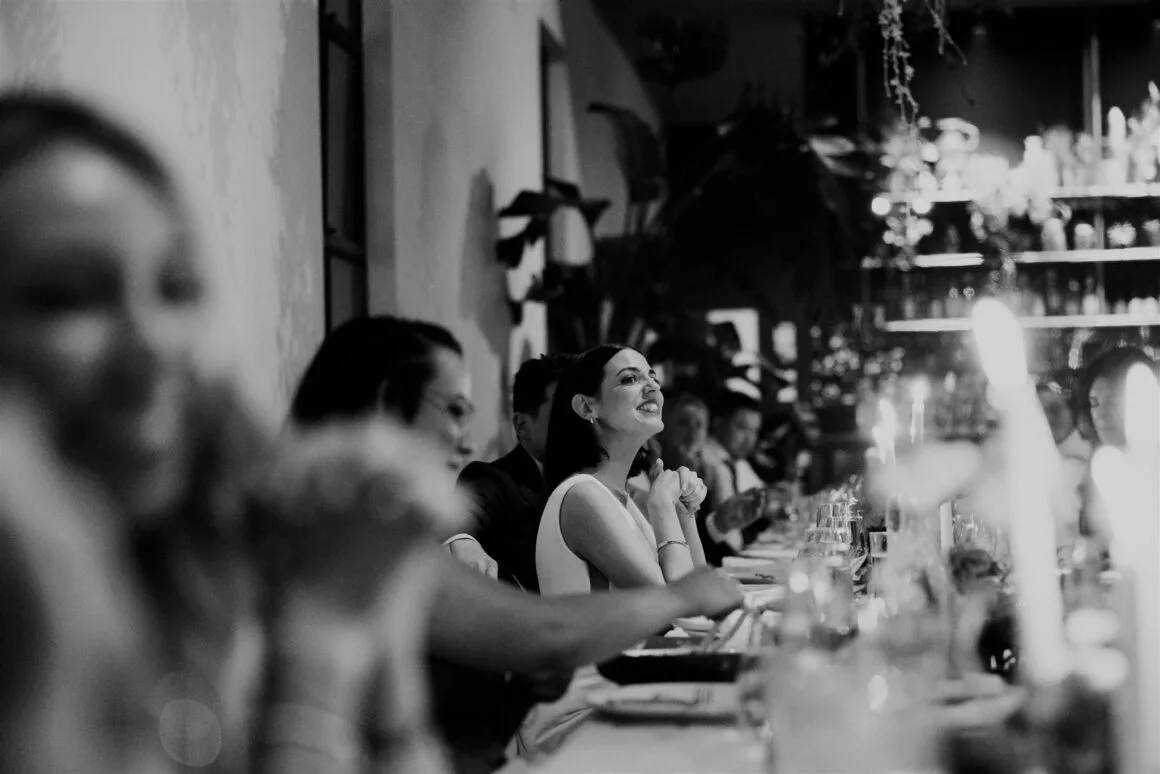 FAVE DETAILS “We had written personal letters to each of our guests. They doubled as seating cards, [thanks to Peppermint Press], and it was such a joy to secretly watch everyone discover there were letters in the envelopes with their names on them. Before we even entered the reception, our phones were buzzing with messages from our friends and family. It hit the brief in making everyone in the room feel as important as we did.”