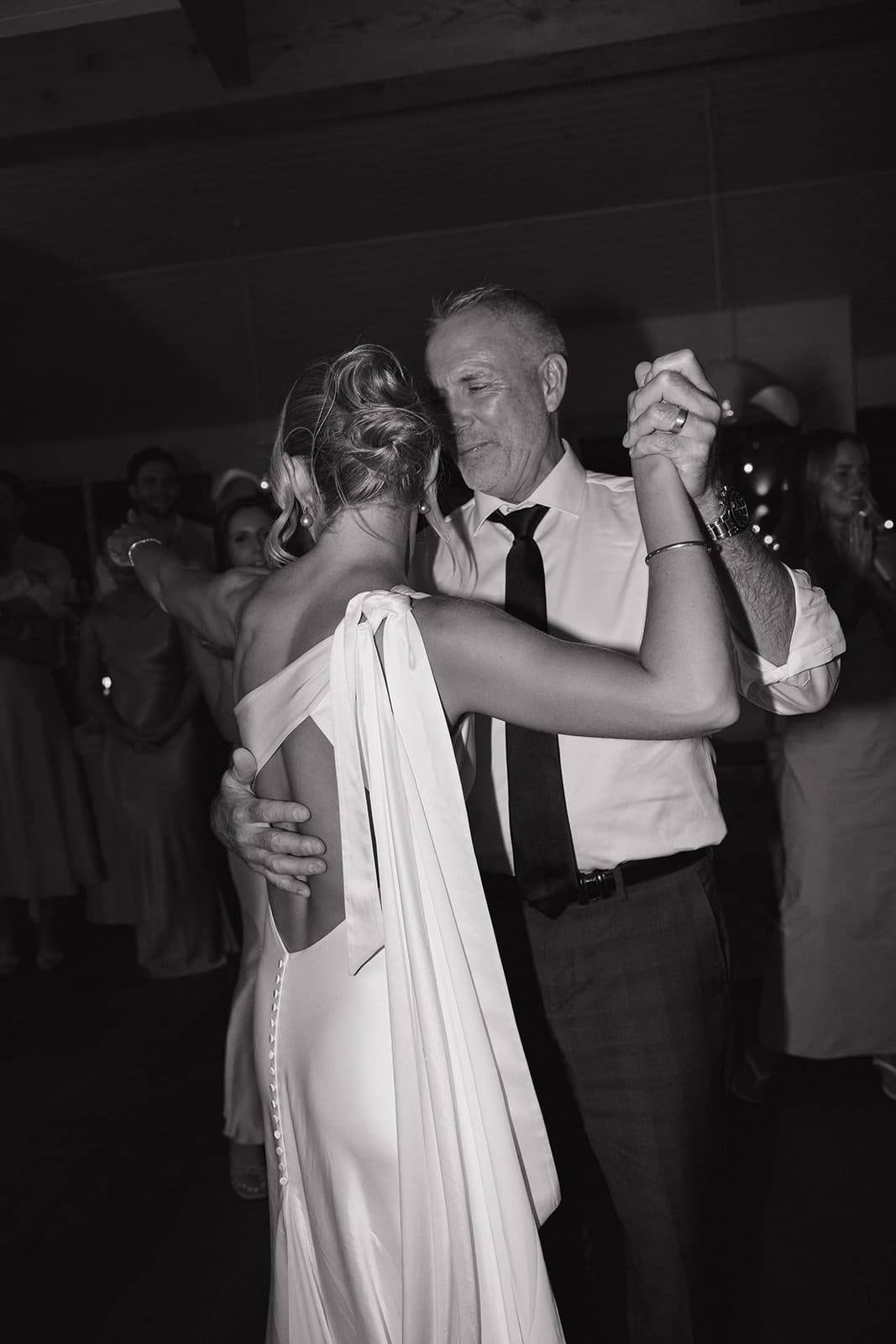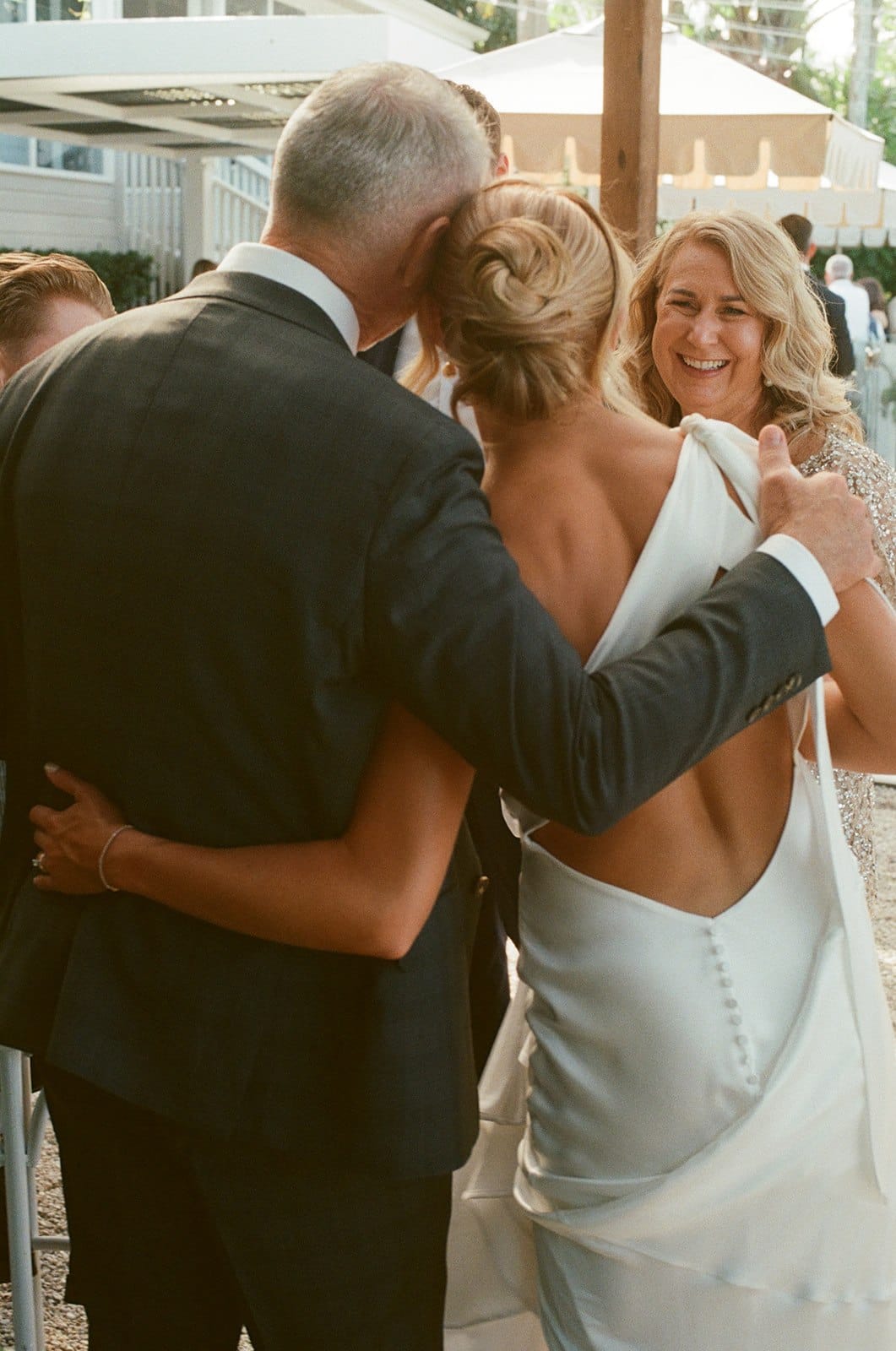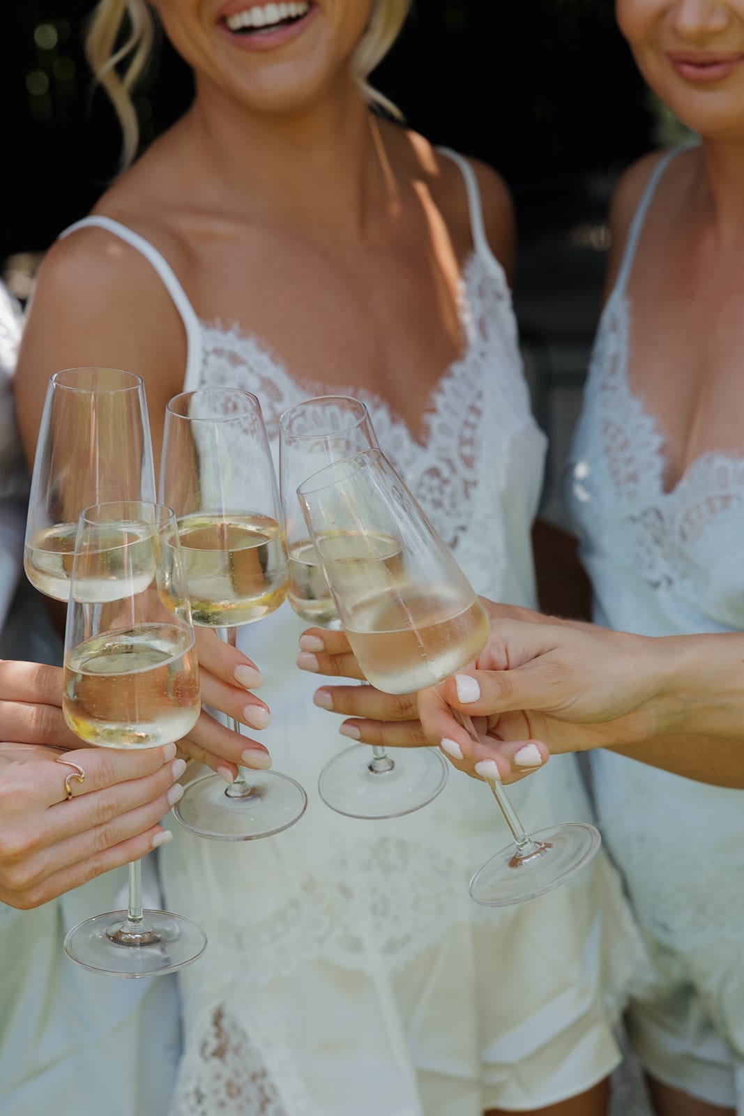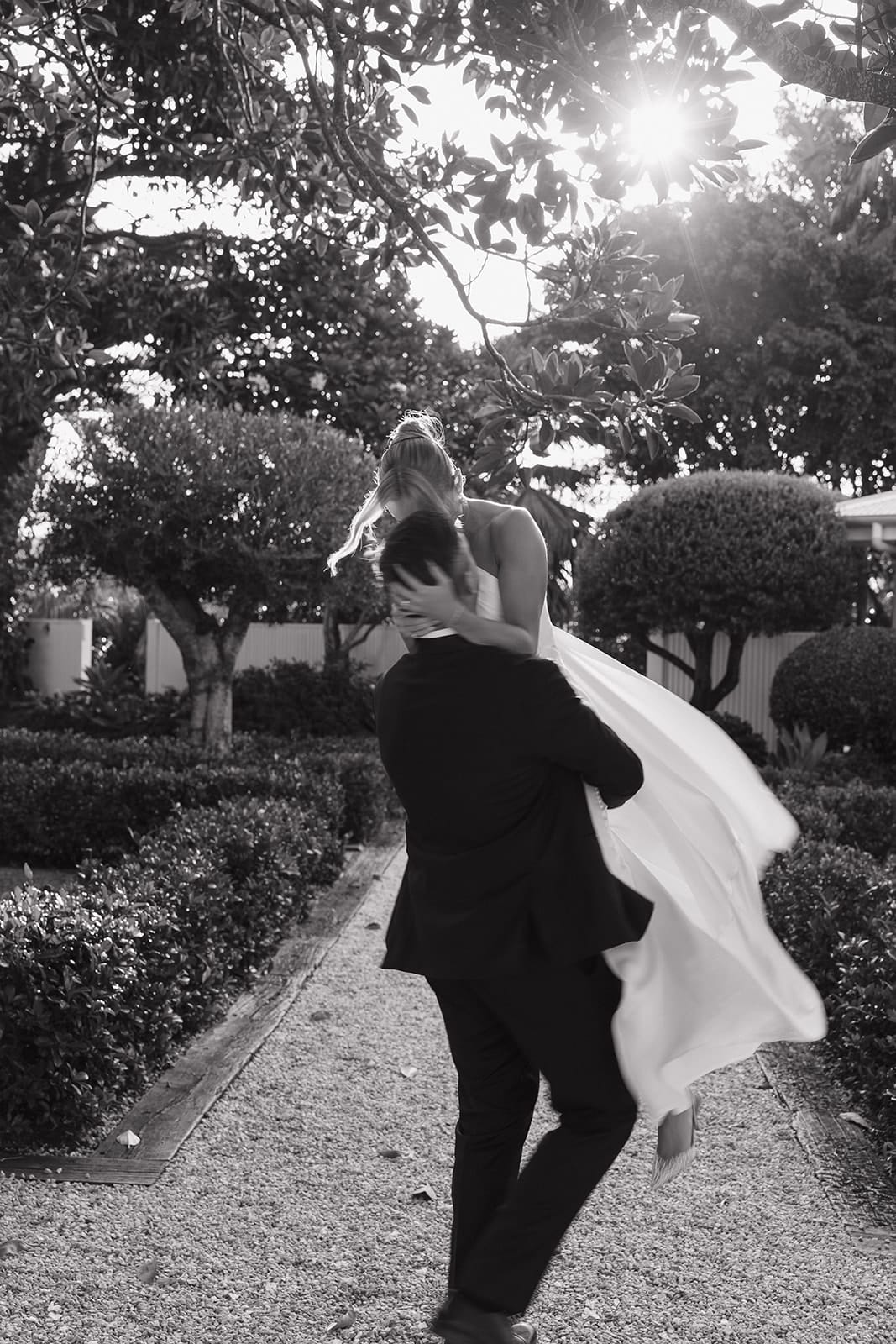 THE DRESS “My wedding dress was from Grace Loves Lace. I tried on two other dresses before finding the dress of my dreams. ‘Aire’ is a double-layered satin Grecian goddess-inspired dress with draping, button details that highlight the curve of the back, an architectural cut out and a side split to elongate the leg. It was the dress I knew I could dance all night in. When I saw Aire online, I knew I HAD to try on this dress. Mum and my sister-in-law came with me for the dress fitting, with a champagne in hand and fitting like a glove, I walked out in Aire and their smiles couldn’t be contained (neither could mine), Mum had tears in her eyes, it is a special memory etched in my brain. The experience was so positive. The Grace Loves Lace showroom was buzzing, and other brides commented on how beautiful I looked in the dress.”