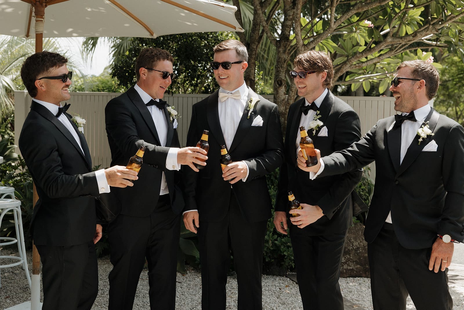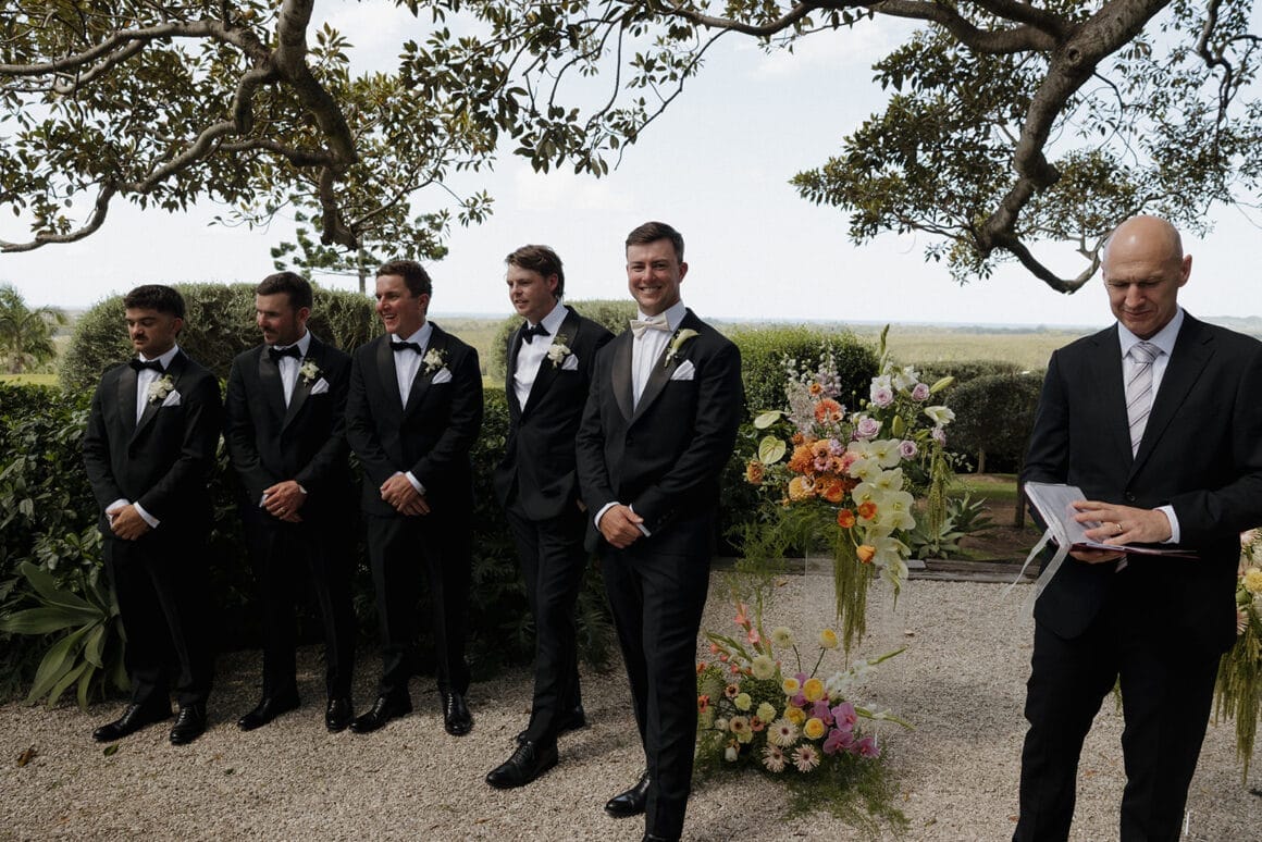 CONTRIBUTING VENDORS Photographer House Of Chapters Event Planner Byron Bay Weddings Florist Wild Jasmine Floral Studio Stationery & Signage Honey and Hive Designs Venue, Catering, Lighting & Sound Hire Fig Tree Restaurant Cake Maker Cake House By Katrina Allen Hire Items The Wedding Shed Entertainment Josh Boots via North Coast Entertainment Celebrant John Ruhle (Family) Rings Hogans Family Jewellers Transport Byron Coach Company THE BRIDE Bridal Gown & Veil Designer Grace Loves Lace Getting Ready PJs Homebodii Shoes Zara Accessories Hogans Family Jewellers, Michael Hill, Lannah Dunn Fine Jewellery Hair Gayle Green via Millennium Hair Studio (Family) Makeup Alex Ouston Beauty Co Fragrance Chanel Bridesmaid Dresses Shona Joy Bridesmaid Gifts Homebodii, Gregory Ladner via Myer THE GROOM Suit, Jacket, Shirt, Pants, Tie, Cufflinks, Shoes & Groomsmen Suits Peter Jackson Grooming Gayle Green via Millennium Hair Studio (Family)