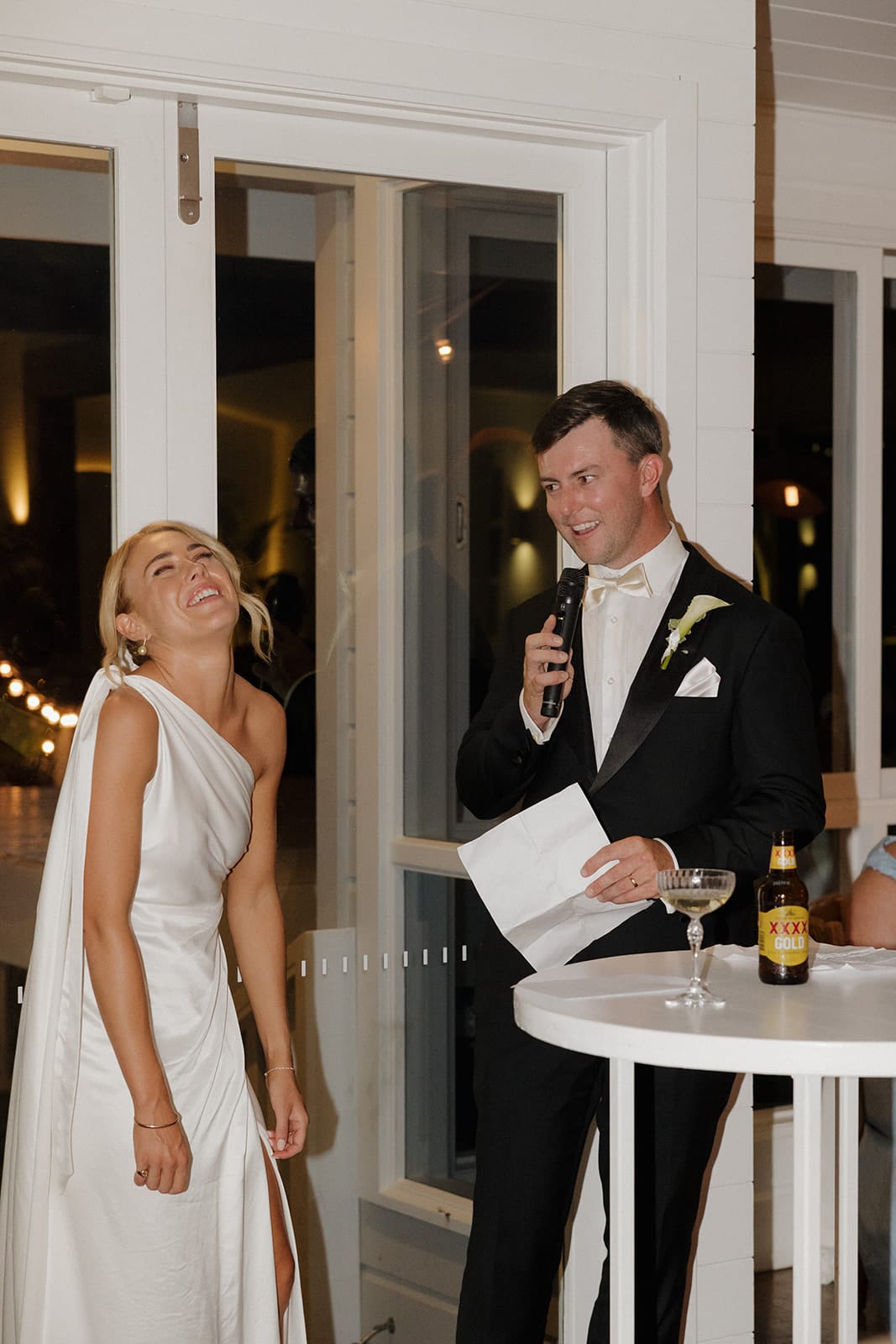 Looking equally shmick were the newlyweds. The groom, who donned Peter Jackson head-to-toe, correctly described the bride as “glowing” in Grace Loves Lace (and do we spy some jewels from our mates at Michael Hill? Yes, yes, we do!)