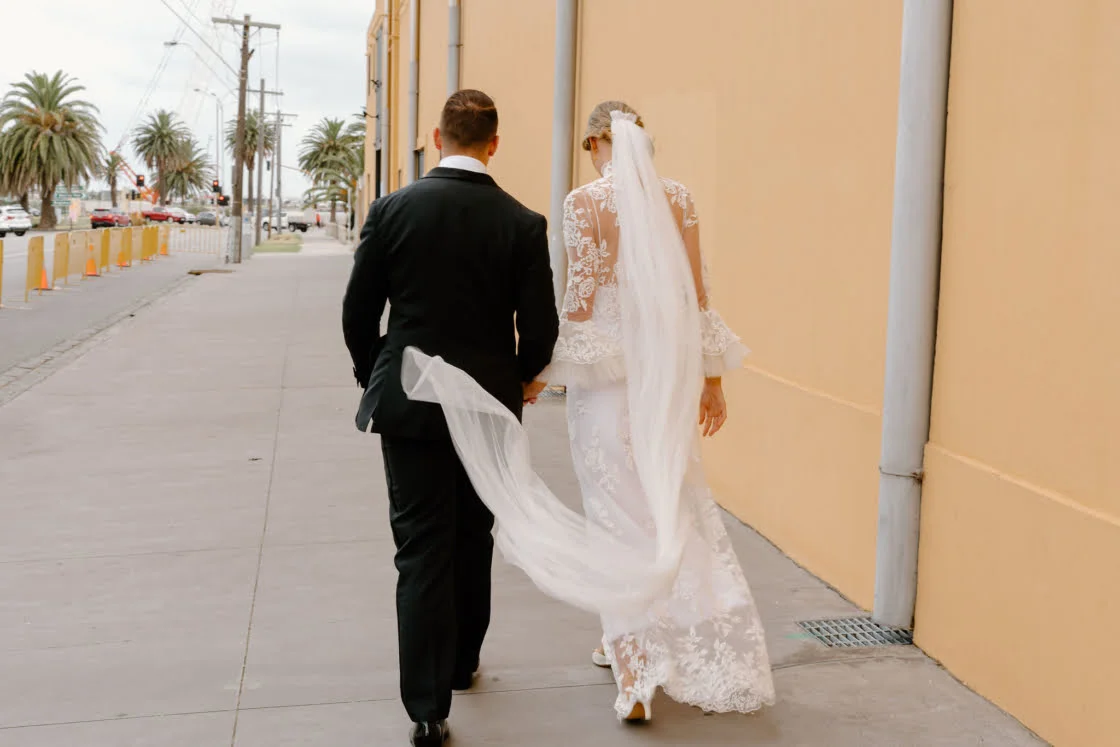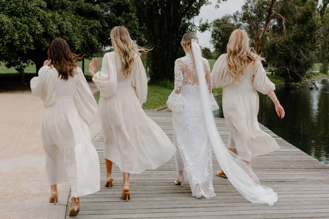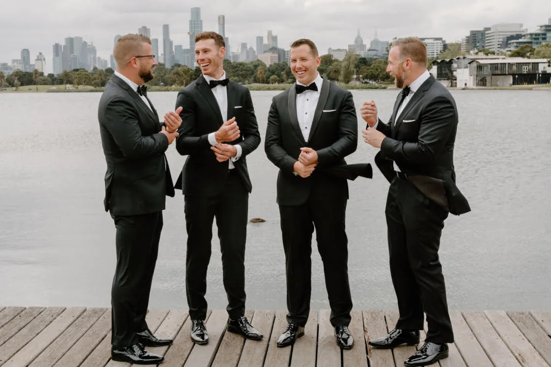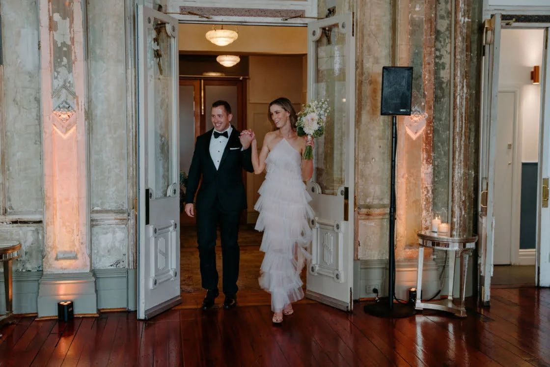 CONTRIBUTING VENDORS Photographer Laura Alyce Bell Cinematographer Luca Zarik Event Planner & Stylist Whole Lotta Love Creative Florist Salt Flower Stationery The bride Printer Paperpoint Linen Table Art Ceremony & Reception The George Ballroom Catering Damm Fine Food Co. Cake Ladybird Cakes Hire Items The Small Things Co, Quartz and Crystal Entertainment Jonno Hughes Celebrant Damon Hughes Rings All Diamonds Transport Melbourne Corporate Cars THE BRIDE Gown & Veil Nevenka Robes Piyama Shoes Louis Vuitton Accessories Amber Sceats Hair Nicole Kene Makeup Isabelle Quinn Fragrance Le Labo Santall 33 Bridesmaid dresses Shona Joy Bridesmaid shoes ASOS Bridesmaid gifts Tatcha, Maison Margiela THE GROOM Suit, Shirt & Bow tie M.J. Bale Cufflinks Cuffed Shoes Julius Marlow Fragrances Tom Ford Groomsmen suits M.J. Bale